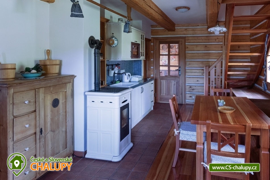 Roubenka na Rovince - Pelešany - Turnov - ubytování Český ráj. Roubená chalupa se dvěma samostatnými komfortně vybavenými apartmány na okraji Turnova v srdci Českého ráje. V letní sezóně se objekt pronajímá pouze jako celek 1 skupině klientů, mimo léto je možné pronájem obou apartmánu pro 5 a 6 osob samostatně. Chalupa se nachází v těsné blízkosti lesa, 2 km od Turnova pod hradem Valdštějn. Roubenka stojí na velkém (2000 m²) oploceném pozemku s parkováním. Apartmán č. 1: obývací kuchyň, koupelna a 2 ložnice o kapacitě 6 lůžek. Přízemí: Společná předsíň, ze které je vstup do obou apartmánů. Velká kuchyň spojená s obývacím pokojem, kde se nachází jídelní stůl s rohovou lavicí a židlemi. Kuchyň je vybavená nádobím, mikrovlnou troubou, varnou deskou se dvěma vařiči, varnou konvicí, remoskou a lednicí s mrazákem. Z kuchyně je vstup na zahradu, kde je možnost posezení, tento prostor je vybaven zahradním nábytkem a grilem. Vytápění je krbovými kamny. V přízemí se nachází koupelna se sprchovým koutem, umyvadlem a wc, zde je podlahové topení a koupelnový žebříček. 1.patro: 2 samostatné 3-lůžkové pokoje. 1.pokoj: 1x rozkládací gauč pro dvě osoby + 1x jednolůžko. 2.pokoj: 1x dvoulůžko + 1x jednolůžko. Apartmán č. 2: obývací kuchyň, koupelna a 1 ložnice o kapacitě 5 lůžek. Přízemí: Společná předsíň, ze které je vstup do obou apartmánů. Velká kuchyň spojená s obývacím pokojem, kde se nachází jídelní stůl s rohovou lavicí a židlemi, TV. Kuchyň je vybavená nádobím, mikrovlnou troubou, varnou deskou a lednicí s mrazákem, také dětskou jídelní židličkou. Z kuchyně je vstup na zahradu, kde je možnost posezení, tento prostor je vybaven zahradním nábytkem a grilem. Vytápění je krbovými kamny. Z kuchyně je vstup na zahradu. V přízemí se nachází koupelna se sprchovým koutem, umyvadlem a WC, zde je podlahové topení a koupelnový žebříček. 1.patro: 1 ložnice – 1x dvoulůžko (180 x 200 cm – pro děti lze využít jako trojlůžko), 1x dvoulůžko (160 x 200 cm), 1x přistýlka. U chalupy je k dispozici venkovní posezení, ohniště, klouzačka, houpačka, ping pong, síť na badminton a míčové hry. V okolí roubenky jsou cyklotrasy, možné houbaření, turistika, skalní město, hrady, zámky, přírodní koupaliště Sedmihorky a v Turnově koupaliště i krytý bazén. Objekt se nachází v srdci Českého ráje, nespočet možností jak turistických tak kulturních i sportovních. Necelý kilometr od hradu Valdštejn, Hruboskalské skalní město. Dominanta Českého ráje hrad Trosky. Blízká lyžařská střediska: Turnov - Struhy, Koberovy - Hamštejn, Kozákov nebo Líšný.
