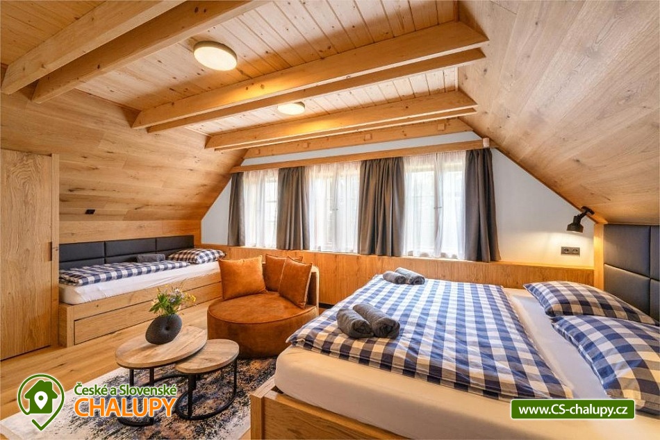 Malebná a útulná Roubenka Orlické hory se nachází na okraji obce Říčky v Orlických horách nedaleko osady Rysy a měst Rokytnice v Orlických horách a Rychnov nad Kněžnou. Součástí obce je Ski centrum, bike park, lanové centrum nebo adventure golf. Roubenka nabízí ubytování pro až 12 osob ve dvou šestilůžkových ložnicích umístěných v horním patře. K dispozici je manželská postel a dvě jednolůžkové postele a z každé ložnice vede schodiště do půdních prostor, kde je umístěné další dvoulůžko. K zapůjčení je dětská postýlka. Součástí obou ložnic je koupelna se sprchovým koutem, WC a dětským vybavením. V přízemí roubenky lze společné chvíle trávit v krásném a prostorném obývacím pokoji s krbovými kamny, sedací soupravou, TV a dětským koutkem. Na pokoj navazuje plně vybavená kuchyň (varná deska, lednička, trouba, mikrovlnná trouba, kávovar Nespresso a myčka nádobí) s jídelním stolem. Využívat lze také výčepní zařízení. Dále je k dispozici komora/špajz, vstupní chodba s úložným prostorem, sušárna včetně pračky a sušičky a úschovna pro kola a lyže s elektrickým sušákem bot. Součástí přízemí je jedno samostatné WC včetně dětského vybavení. Vytápění je automatické, přitopit si lze v krbu. V celém objektu je k dispozici WIFI připojení na internet. U roubenky lze posedět na venkovní terase nebo u ohniště. Parkovat lze přímo u objektu. V okolí roubenky možnost turistiky, cykloturistiky, koupání, houbaření, rybaření, běžkování a lyžování. V blízkosti je také jízdárna a tenisové kurty. Mezi možnosti koupání patří např.: koupaliště Rokytnice v Orlických horách, koupaliště Kunvald, koupaliště Rychnov nad Kněžnou, bazén Rychnov nad Kněžnou, bazén Deštné v Orlických horách, koupaliště Dobré, aquapark Žamberk, atd. K dispozici jsou blízká lyžařská střediska: Říčky v O.h., Ski centrum Zdobnice, Rokytnice v O.h. - Farák, Orlické Záhoří - Černá Voda a další. K výletům v okolí láká Zámek Rokytnice v Orlických horách, Kolowratský zámek Rychnov nad Kněžnou, tvrz Hanička, Kunštátská kaple, Vodní nádrž Pastviny nebo zámky Opočno a Častolovice. Těšíme se na Vás u nás.