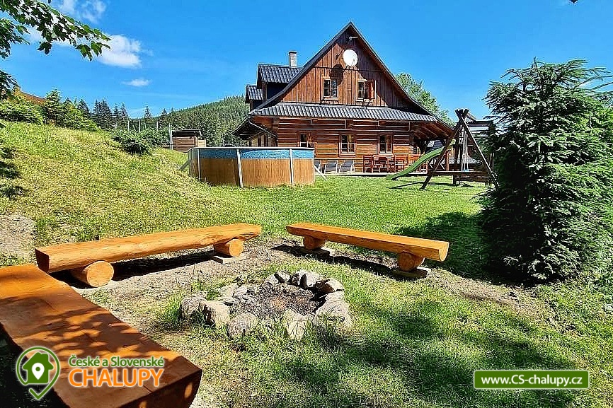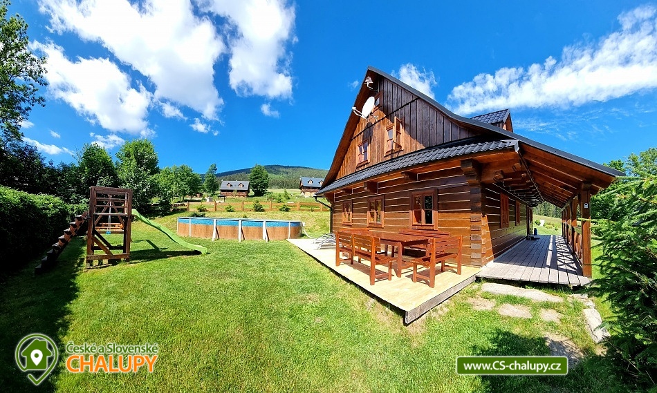 Horská roubenka s bazénem v obci Stříbrnice, poloha u Hynčice pod Sušinou - Jeseníky. Roubenka se nachází v blízkosti celoročního areálu Kraličák s nejmodernější šestisedačkovou lanovkou v ČR, v místě veškeré služby spojené s lyžováním ( lyžařská škola, půjčovna, servis, dětské kryté přepravní pásy, bobová drahá), celkem 10 km sjezdovych tratí. Uvnitř srubu je plně vybavený kuchyňský kout (indukční deska, myčka, el. trouba, lednička, mikrovlnná trouba), velká obývací místnost, krbová kamna, TV a SAT. V patře najdete celkem 3 ložnice , každá se 4 lůžky Na každém patře je koupelna se sprchovacím hydromasážním boxem, rohová vana a WC. Přízemí relaxační místnost s infrasaunou a hydromasážní rohovou vanou pro 2 osoby . V chladných dnech lze použít kachlová kamna, které bez problémů vyhřejí celou chatu. U objektu je otevřená veranda s posezením a lehátky, ohniště s posezením, gril, houpačka, zahradní nábytek, krytá terasa, velká trampolína průměr 4 m, venkovní vyhřívaný bazén (průměr 8 m x 3.6 m v provozu od začátku června do konce srpna). K dispozici místnost pro úschovu kol a lyží . Jen 3 km od našeho srubu je vzdálené Staré Město pod Sněžníkem, které leží na severu Moravy mezi oblastmi Králický Sněžník a Hrubý Jeseník. Místo je ideální jako výchozí bod pro turistické výlety a výpravy do okolních hor. Králický Sněžník je nejvyšší vrchol třetího nejvyššího pohoří v České republice, nacházejícího se na státní hranici s Polskem. Navštívit můžete i ruční papírnu Velké Losiny, kde se nachází i zámek a termální lázně, přečerpávací elektrárnu Dlouhé Straně, nebo ski-areál Paprsek, Kunčice, Branná, Ramzová. V místě určitě využijete horská kola a množství turistických tras a cyklostezek.