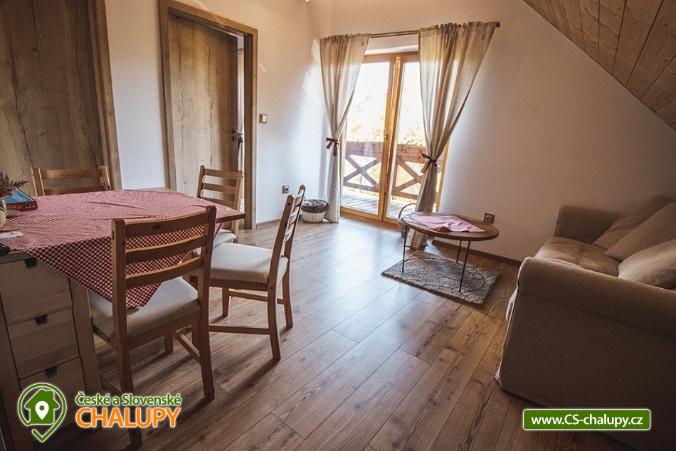 Roubenka s biotopem (jezírkem) se nachází v klidné části obce Nový Hrozenkov nedaleko Vodní nádrže Karolinka v nádherném horském prostředí v samém srdci Beskyd. Chata k pronajmutí poskytuje ubytování pro až 22 osob (max. však 16 dospělých osob + 6 dětí). Moderní roubenka Valachy celoročně nabízí 4 apartmány: Apartmán č.1 a č.2 v přízemí, každý s manželskou postelí a čtyřmi přistýlkami. Apartmán č.3 v patře se dvěma manželskými postelemi a dvěma přistýlkami. Apartmán č.4 v patře s manželskou postelí a dvěma přistýlkami. Každý apartmán má dva pokoje - bytovou místnost a jednu ložnici kromě Apartmánu č.3, který má dvě ložnice. Všechny apartmány mají totožné vybavení. Mají obývací místnost s rozkládací pohovkou, komodou, televizí se satelitním příjmem a jídelním stolem. Součástí je i kuchyňský kout vybavený keramickou varnou deskou, lednicí, mikrovlnnou troubou a rychlovarnou konvicí. V koupelně použijete sprchový kout a toaletu kromě Apartmánu č.4, kde se nachází romantická vana pro 2 osoby. Na zahradě se děti potěší na houpačce a skluzavce. Jídlo prý nejlépe chutná venku, proto si jej můžete připravit ve venkovním krbu nebo grilu a vychutnáte si ho při sezení na terase. K dispozici máme také úschovnu na kola a lyžárnu. Bezplatné parkování je zajištěno pro 5 vozidel u objektu. Okolí nabízí řadu zajímavých atrakcí. Během horkého léta se zchladíte na Koupališti Na Stanoch nebo ve Vodní nádrži Karolinka. Zajímavé informace se dozvíte v Galerii umění v Karolince, Muzeu sklářství Karolinka či v Karlovarském muzeu. Okolní příroda Vám poskytne nejeden dech - beroucí výhled, ať už navštívíte Chráněnou krajinnou oblast Beskydy, Chráněnou krajinnou oblast Bílé Karpaty, Rozhlednu na Stratenci, Vyhlídkovou věž Búřov nebo Rozhlednu Miloňová. V zimě zažijete perfektní lyžovačku v některém z mnoha okolních středisek, z nejbližších zmíníme Lyžařský areál Vranča, Skiareál Karolinka, Ski centrum Kohútka, Ski areál Synot Kyčerka, Ski areál Jezerné, Ski areál Soláň - Vrchol či Lyžařské středisko Čertov.