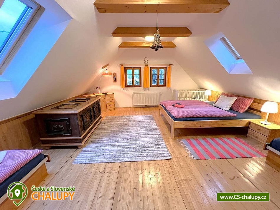 Roubenka s wellness a bazénem - útulná horská chalupa pro až 10 osob s kuchyní a jídelnou, vhodná nejen pro rodiny s dětmi. Chalupa leží v malebné vesničce Javorník u Janských Lázní a Stezky korunami stromů. K dispozici 2x 4 lůžkový pokoj, 2 přistýlky – ve světnici. Povlečení v ceně. Kuchyň: kuchyňská linka, plynový sporák, nádobí pro 10 osob, myčka nádobí, trouba, varná konvice, mikrovlnka, Pípa. Spižírna, lednice s mrazákem. Světnice s jídelnou: kachlová kamna, posezení pro 10 osob, reproduktory s připojením na jack nebo přes bluetooth. Koupelna - sprchový kout, WC zvlášť. Veškeré prostory chalupy jsou vytápěny elektrokotlem. Ve světnici jsou vedle klasických radiátorů kamna s pecí, ve kterých si můžete zatopit briketami a vyhřát si záda za pecí. Stezka korunami stromů je vzdálená pouze hodinu chůze. Vítáni jsou tedy nejen cyklisté a turisté, ale i maminky s dětmi - potřebná výbava je vždy připravena. Uvaříte si v perfektně vybavené kuchyní a budete spokojeni i s velkými společnými prostory. V létě můžete relaxovat u venkovního bazénu, nechat se hýčkat sluncem na našem zahradním posezení, nebo si užívat večery u ohniště a grilu. Děti budou nadšeny z pískoviště, houpačky a závěsného houpacího křesla, které je čekají na zahradě. V zimních měsících se pak můžete schoulit do tepla u kachlových kamen ve světnici a nechat se hýčkat teplem a pohodou. Pro milovníky wellness je k dispozici finská sauna, která vám poskytne dokonalou relaxaci po dni stráveném na čerstvém vzduchu. Okolí: Lanový park Janské lázně: dvě úrovně náročnosti, pro děti 30 překážek ve výšce 140 cm, velký okruh 40 překážek ve výšce 4 - 12 metrů, jištění ferratovým způsobem, zácvik s instruktory. Letní aktivity v Janských lázních. Labský a Pančavský vodopád a prameny Labe: krásný výlet na hřebeny Krkonoš, vhodné i pro malé děti a sjízdné s dětskými kočárky, kyvadlovou dopravou z Horních Míseček na Vrbatovu boudu, 6 - 8 km chůze s mírným stoupáním. Krkonoše z letadla: vyhlídkové lety nabízí letiště Vrchlabí. V Mladých Bukách (8 km) najdete útočiště pro své děti. V letních měsících nabízí Baldův svět zábavu v podobě prolézaček, trampolín, houpaček, brouzdališť, tobogánů apod. Těšíme se na Vás u nás.