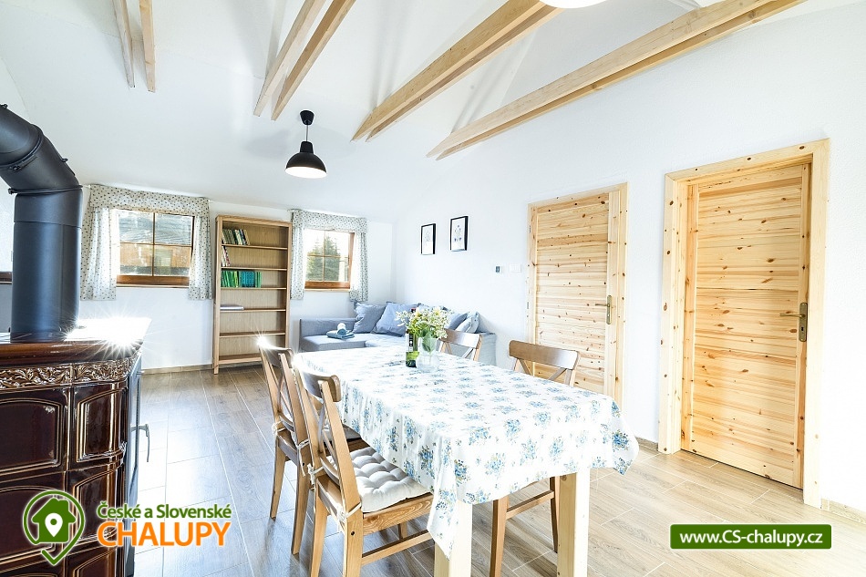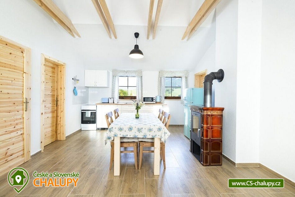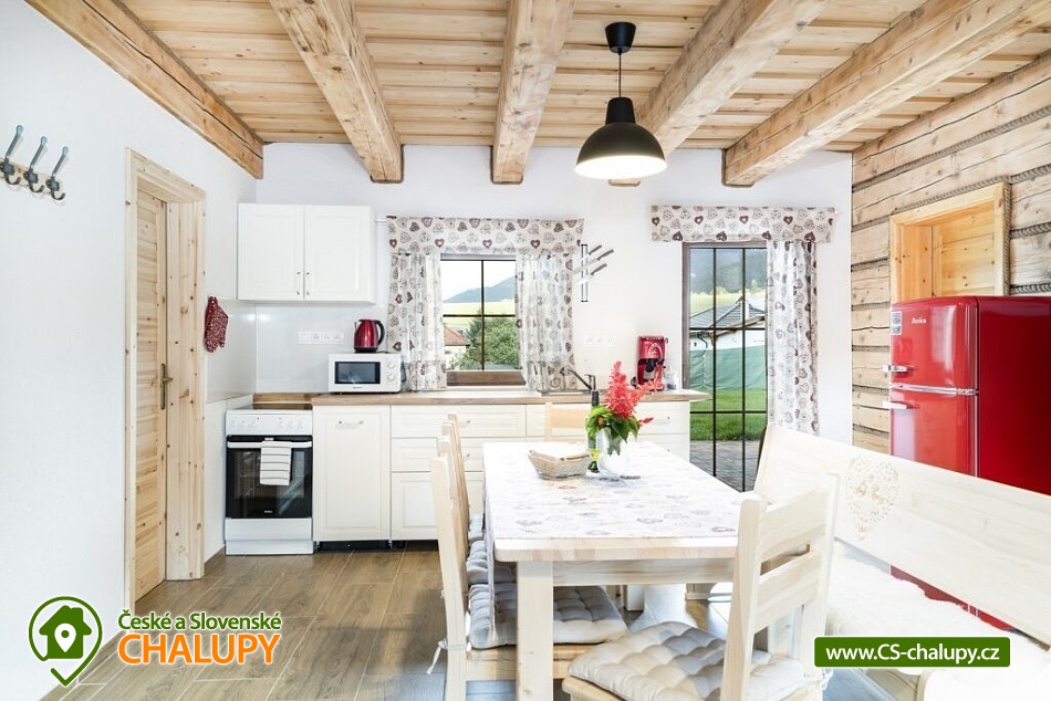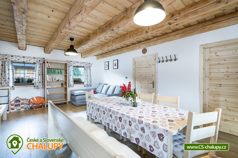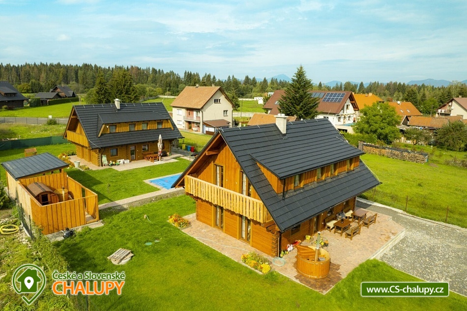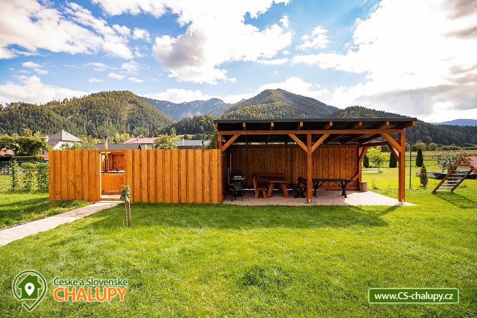 Roubenka s wellness nabízí komfortní ubytování na okraji národního parku Nízké Tatry, přímo v srdci Liptova u Demanovské doliny. Roubenka leží v klidné obci Lazisko, asi 10 km jihozápadně od Liptovského Mikuláše. Ubytovat se zde může 10 osob ve dvou apartmánech. Chalupu lze pronajmout jako celek nebo každý apartmán samostatně. Zároveň je možné chalupu pronajmout naráz i se sousední chalupou (objekt 3S-104) pro skupinu až 20 osob. Apartmán Bôr pro 5 osob se nachází v přízemí, druhý apartmán Poľana pro 5 osob je v patře. Oba apartmány jsou stejně vybavené. Každý má svůj uzamykatelný vchod, obývací místnost s pohovkou (1x přistýlka), TV, krbovými kamny, jídelním stolem a plně vybavenou kuchyň (nádobí, lednice, mrazák, varná deska, rychlovarná konvice, mikrovlnná trouba, myčka a kávovar). Dále pak dvě dvoulůžkové ložnice s možností zapůjčení dětské postýlky a sociální zařízení, které zahrnuje umyvadlo, sprchový kout a WC. V celé chalupě je Wi-Fi připojení a je vytápěna podlahovým topením a krbovými kamny. Parkování je možné přímo u objektu. U chalupy je k dispozici ke společnému užívání obou apartmánů venkovní posezení, koupací sud a bazén. Dále je v areálu k dispozici společně se sousedící chalupou finská sauna s kádí, altán s posezením, grilem a dětské hřiště se skluzavkou a houpačkou. Chalupa se nachází na úpatí Nízkých Tater a je tak ideálním výchozím bodem pro turistiku a cykloturistiku. Tipy na výlety: rohledna Pavčina Lehota, rozhledna na Ostredku, Vajskovský vodopád, Magurský zlatý chodník, Prosiecka dolina, Čerenová skala, Liptovský hrad, Ráztocká dolina, Brankovský vodopád, Demänovská hora 1304 m n.m., Poludnica 1549 m n.m., Poľana 1889 m n.m. a Chopok 2024 m n.m. V létě se můžete vydat k Liptovské Maře a vychutnat si různé vodní sporty. Pro milovníky lyžování je v okolí několik ski areálů: ski centrum Demänová, ski areál Jasná, Chopok a ski Žiar. Těšíme se na Vás u nás.