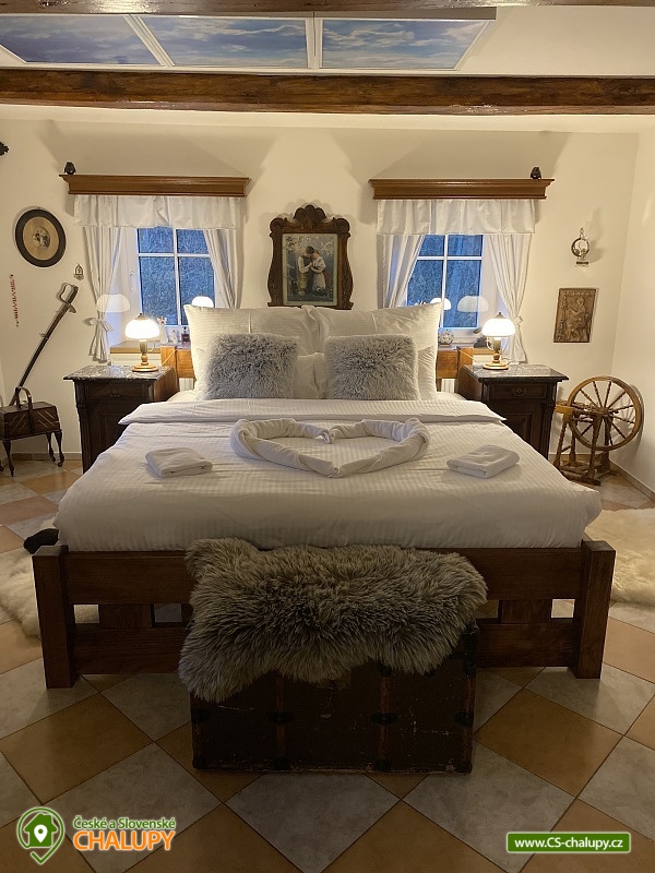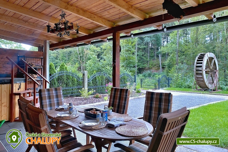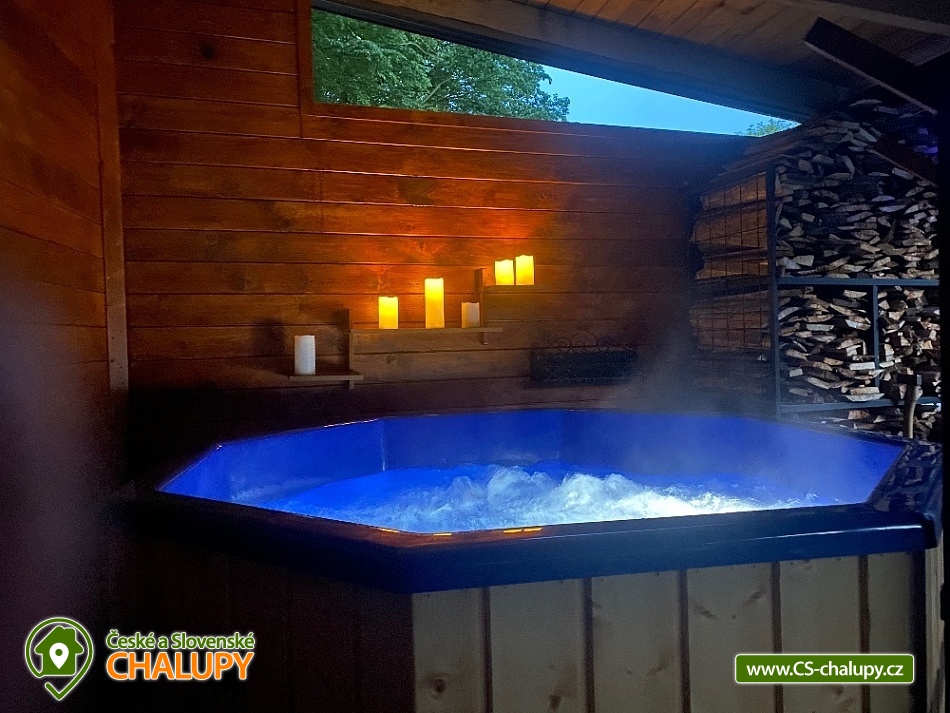 Roubenka Dolní mlýn s wellness (finská sauna , hydromasážní vana a venkovní vířivka) nedaleko vrchu Zvičina a ZOO Dvůr Králové nad Labem. kapacita chalupy je až 5 osob ve 2 ložnicích. Chaloupka sousedi se starým vodním mlýnem a na pozemku protéká Hartský potok, proto je částečně oplocený pozemek. Chalupa zahrnuje plně vybavenou kuchyň: myčka, vinotéka, kávovar, rychlovarná konvice, indukční varná deska, vestavěná trouba, mikrovlnná trouba, lednička s mrazákem, rádio, pračka se sušičkou a 2xTV. Chalupa má jednu hlavní místnost, ve které je velká postel 180x200 cm vyrobená z masivní borovice. Matrace je v celku, hotelový luxusní typ a povlečení je z egyptské bavlny. Ve druhé menší místnosti je patrová postel 90x180 cm a dětská postel 120x180 cm. Dále v předsíni možnost přistýlky na lůžku 120x200 cm. Všechny postele mají kvalitní matrace. V koupelně stojí hydromasážní vana, ve které si můžete pustit perličkovou koupel, proudovou koupel a vodní ozón. To vše v doprovodu hudby a světel. Ve vaně se krásně odpočívá. Chalupa je vytápěna tepelným čerpadlem a v chladných dnech jistě oceníte podlahové topení. K dispozici je venkovní kuchyň s plynovým grilem a koupací sud s vířivkou, dále finská sauna, která je součástí chaloupky. Pro vlastníky elektromobilu je k dispozici přípojka pro elektromobil. Chalupa je z části oplocená kovaným plotem, vstupní brána je otevírána na dálkové ovládání. Pozemek sousedí se starým mlýnem. Tato lokalita je výjimečná tím, že patří k tišším lokalitám, slyšíte proudit potok a zpěv ptáků. Nedaleko chalupy je naučná stezka pro pěší. Touto cestou se dá krásně dojít do města Dvora Králové nad Labem, vzdálenost je asi 3km. Cestu lemuje Hartský potok. Zde mohou jezdit i cyklisté, cesta vede do města či blízké hospůdky na občerstvení a ty zdatnější na Zvičinu, do Miletína nebo do Kuksu. Ve Dvoře Králové nad Labem je krásné koupaliště, kino, nákupní zóny a hlavně vyhlášená ZOO. Doporučujeme navštívit také Přehradu Les království - je považovaná za jednu z nejkrásnějších v České republice. Těšíme se na Vás u nás.