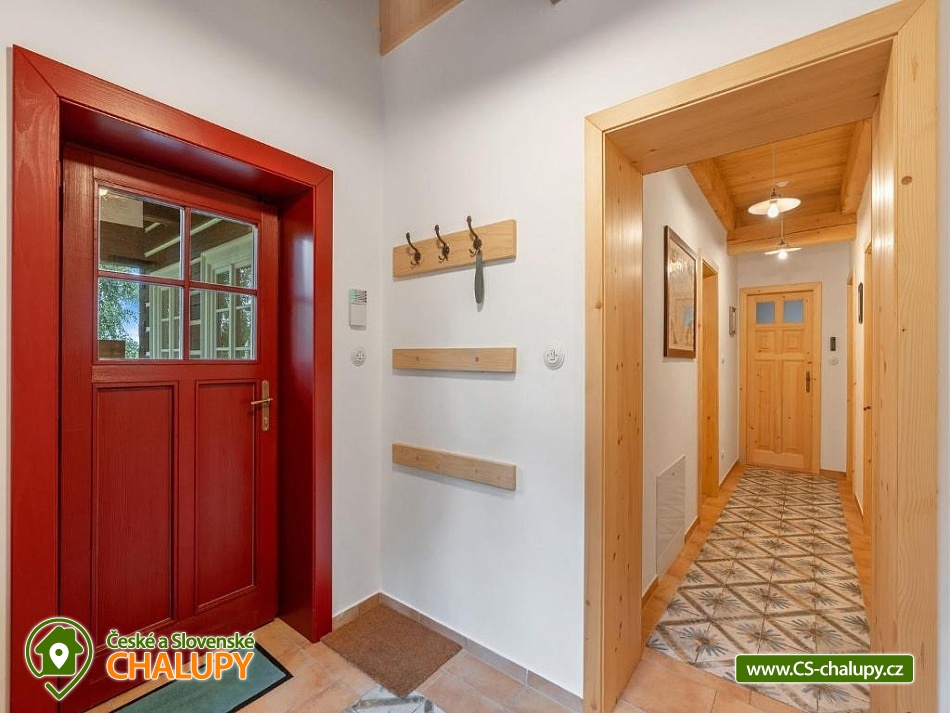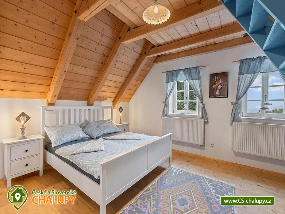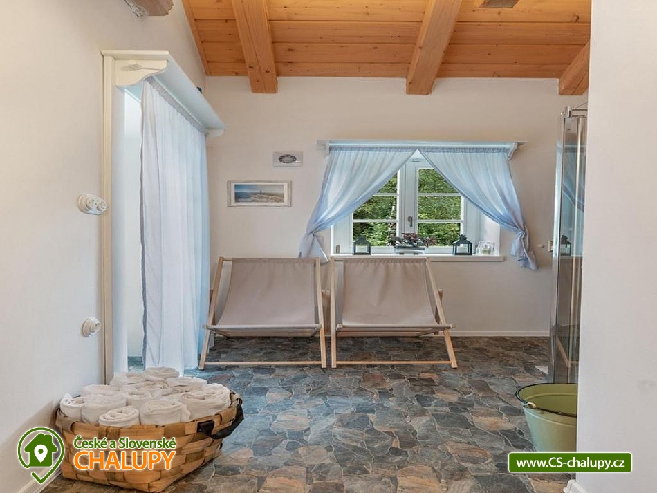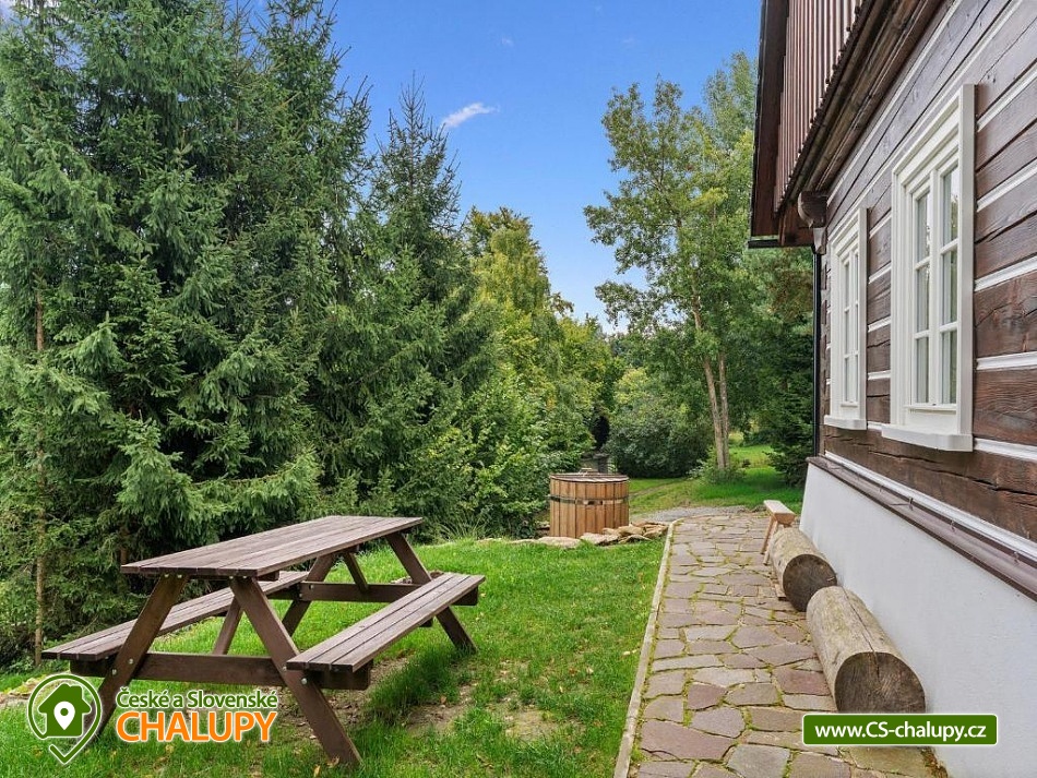 Stylová roubenka s wellness (wellness s finskou saunou, ochlazovací sprchou a ochlazovacím venkovním bazénkem) a kachlovými kamny nedaleko lokality Kašperské Hory, poloha u obce Strašín a Nezdice na Šumavě. Chalupa u lesa s pozemkem 1600 m2 poskytuje ubytování pro až 14 osob ve 4 ložnicích. POPIS: 1. ložnice v přízemí (1x manželská postel), 2. Ložnice v patře (1x manželská postel + spaní pro 2 na hambálkách nad ložnicí), 3. Ložnice (2+2 rozkládací postele), 4. Ložnice (2x samostatná postel + 2x spaní na hambálkách nad ložnicí). Světnice v přízemí s plně vybavenou kuchyní (varná deska, trouba, mikrovlnka, kávovar, rychlovarná konvice, myčka, lednice, mrazák) a kachlovými kamny. K dispozici 2x koupena a 2x WC. Wifi internet. U chalupy zahradní domek na uložení kol, lyží apod. a venkovní ohniště. Parkování: 3 auta na pozemku, popř. také parkování u silnice nad chalupou. V okolí doporučujeme: přírodní koupaliště Nezdice na Šumavě, koupaliště Žihobce, Aquapark Sušice a Aquapark Horažďovice. Lanový park a Dětský lanový park Sušice. Půjčovna koloběžek na šumavském Javorníku. Strašínská jeskyně - jeskyně s jezírkem a pozoruhodnými mísovitými a hrncovitými prohlubněmi ve stropu je jediná větší krasová jeskyně v systému Sušicko - Strakonických vápenců. Hrad Kašperk a Stezka lesních her Kašperské Hory. Hrad Rabí, Prášilské jezero - ledovcové jezero. Lyžařské areály: Nezdice na Šumavě, Kašperské Hory, Javorník a Zadov - Churáňov. Těšíme se na Vás u nás.