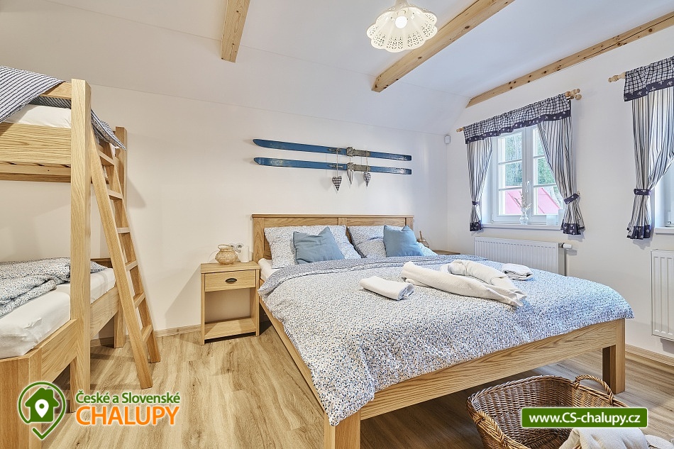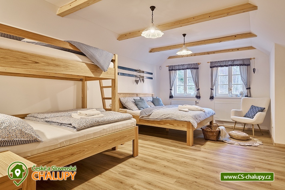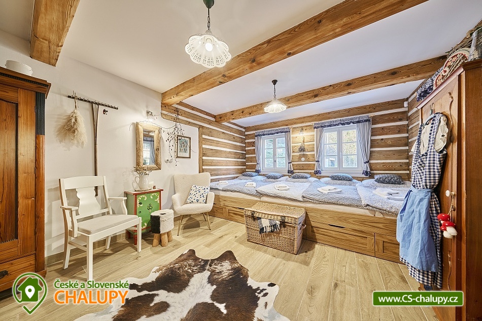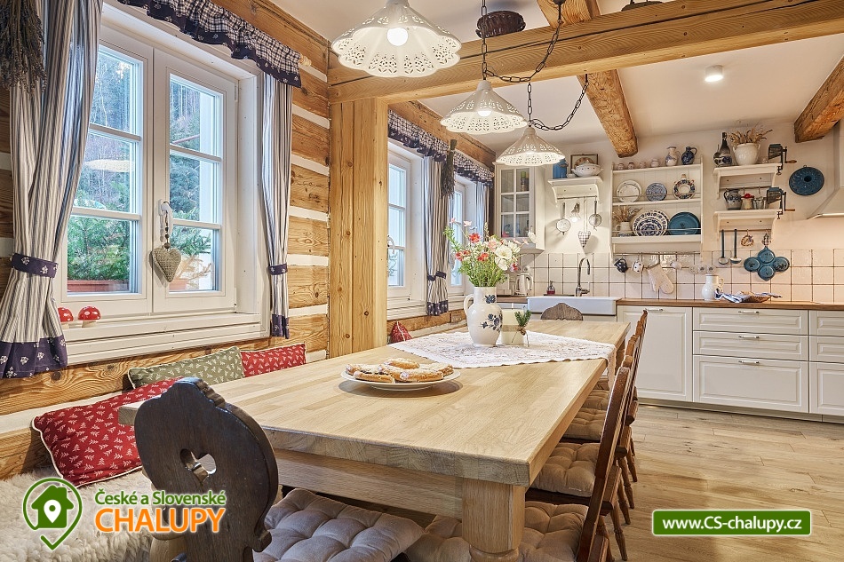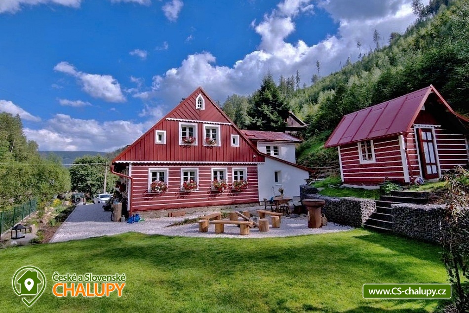 Komfortní roubenka Krkonoše se saunou a kachlovými kamny u řeky Úpa v lokalitě u střediska Velká Úpa, osada Temný Důl - Horní Maršov. Pronájem mimořádně komfortní chalupy pro až 18 osob. V chalupě je plně vybavená kuchyně: trouba, myčka, 4-plotýnková sklokeramická varná deska, toustovač, topinkovač, varná konvice, mikrovlnná trouba, mraznička a elektrický kávovar. V obývacím pokoji je TV s kachlovými kamny a jídelní (společenský) stůl. V přízemí je dále pokoj s 5x lůžkem a pokoj s 1x dvoulůžkem a 1x rozkládacím lůžkem. V horním patře je otevřený obývací pokoj s TV, pokoj s 2 lůžky nad sebou, 1x francouzským lůžkem a 1x dvoulůžkem. Dále pokoj s 2 lůžky nad sebou, 1x francouzským lůžkem a 1x dvoulůžkem. K dispozici je navíc i pračka, sušička, vysoká židlička pro děti, dětská postýlka a Wi-Fi internet. V roubence je celkem 4x WC a 2 koupelny. U chalupy je k dispozici sauna s ochlazovacím bazénkem, venkovní posezení a ohniště. V okolí doporučujeme: LÉTO - Lanová dráha Sněžka - Pec pod Sněžkou, Lanová dráha Černá hora – Janské Lázně (turistika, koloběžky, dětský zábavní park), Relaxpark - Pec pod Sněžkou (bobová dráha, Monkey park, skluzavky, trampolíny, jízda na kladce), Stezka korunami stromů v Janských lázních, Mladé Buky - rodinný areál pro rodiny s dětmi, ZOO Dvůr Králové nad Labem, Adršpašské a Teplické skály. ZIMA - Největší lyžařský areál v ČR: Černá hora (+ sáňkářská cesta) - Pec pod Sněžkou (+ bobová dráha) - Velká Úpa - Černý důl - Svoboda n. Úpou. Horní Malá Úpa (kluziště), Mladé Buky (bobová dráha) a Krkonošská lyžařská magistrála pro milovníky běžek. Těšíme se na Vás u nás.