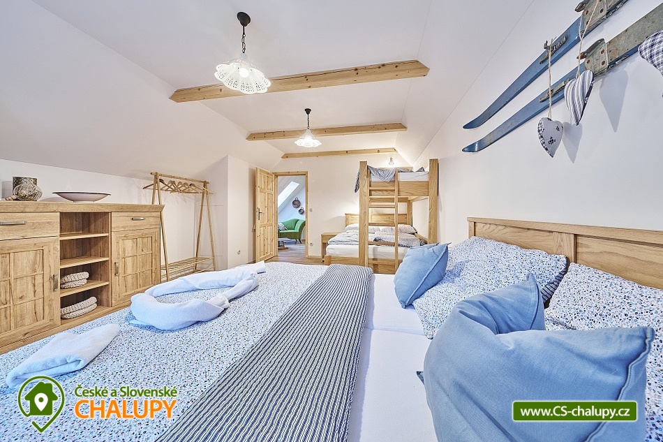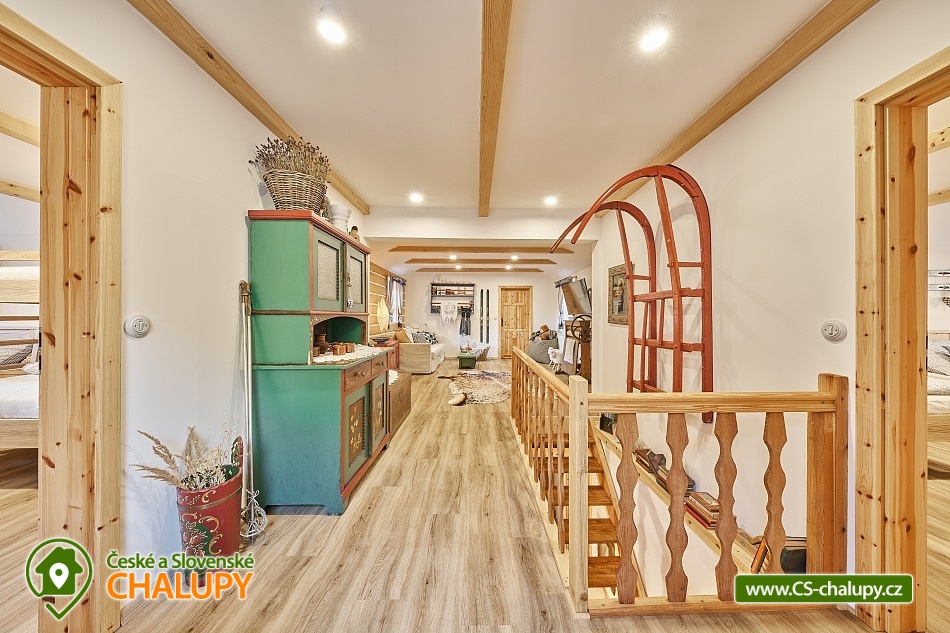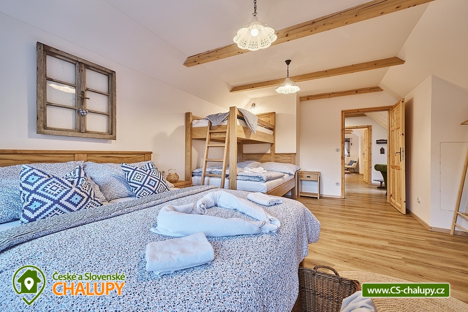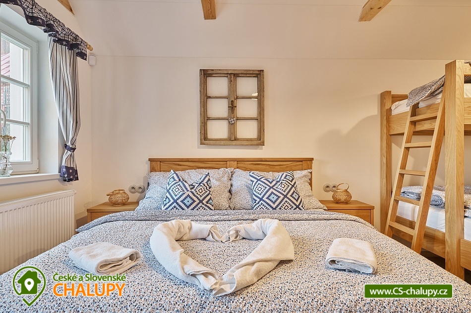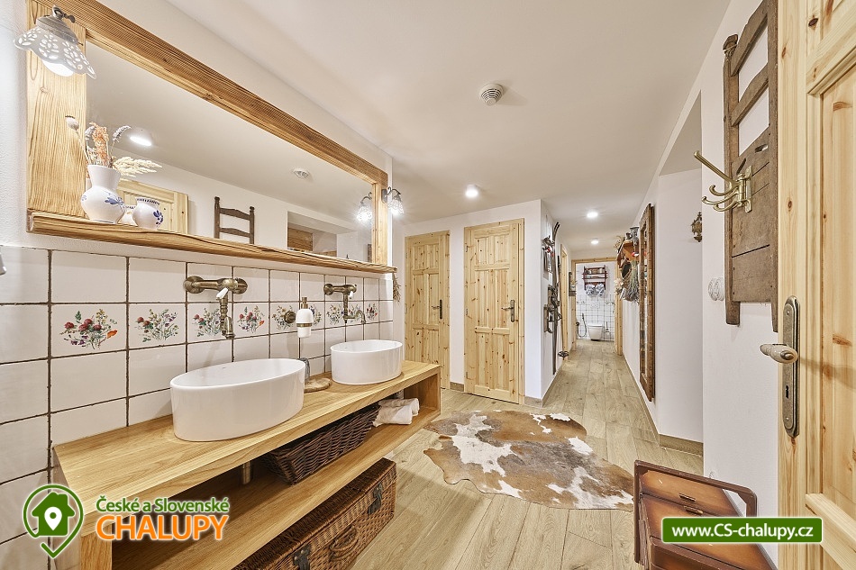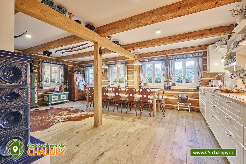 Komfortní roubenka Krkonoše se saunou a kachlovými kamny u řeky Úpa v lokalitě u střediska Velká Úpa, osada Temný Důl - Horní Maršov. Pronájem mimořádně komfortní chalupy pro až 18 osob. V chalupě je plně vybavená kuchyně: trouba, myčka, 4-plotýnková sklokeramická varná deska, toustovač, topinkovač, varná konvice, mikrovlnná trouba, mraznička a elektrický kávovar. V obývacím pokoji je TV s kachlovými kamny a jídelní (společenský) stůl. V přízemí je dále pokoj s 5x lůžkem a pokoj s 1x dvoulůžkem a 1x rozkládacím lůžkem. V horním patře je otevřený obývací pokoj s TV, pokoj s 2 lůžky nad sebou, 1x francouzským lůžkem a 1x dvoulůžkem. Dále pokoj s 2 lůžky nad sebou, 1x francouzským lůžkem a 1x dvoulůžkem. K dispozici je navíc i pračka, sušička, vysoká židlička pro děti, dětská postýlka a Wi-Fi internet. V roubence je celkem 4x WC a 2 koupelny. U chalupy je k dispozici sauna s ochlazovacím bazénkem, venkovní posezení a ohniště. V okolí doporučujeme: LÉTO - Lanová dráha Sněžka - Pec pod Sněžkou, Lanová dráha Černá hora – Janské Lázně (turistika, koloběžky, dětský zábavní park), Relaxpark - Pec pod Sněžkou (bobová dráha, Monkey park, skluzavky, trampolíny, jízda na kladce), Stezka korunami stromů v Janských lázních, Mladé Buky - rodinný areál pro rodiny s dětmi, ZOO Dvůr Králové nad Labem, Adršpašské a Teplické skály. ZIMA - Největší lyžařský areál v ČR: Černá hora (+ sáňkářská cesta) - Pec pod Sněžkou (+ bobová dráha) - Velká Úpa - Černý důl - Svoboda n. Úpou. Horní Malá Úpa (kluziště), Mladé Buky (bobová dráha) a Krkonošská lyžařská magistrála pro milovníky běžek. Těšíme se na Vás u nás.