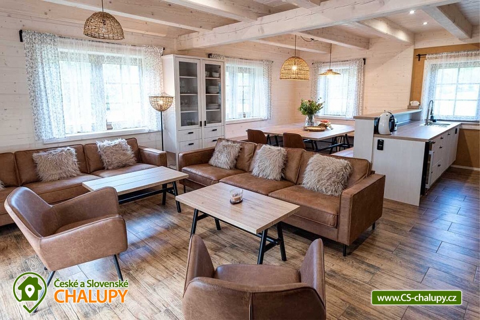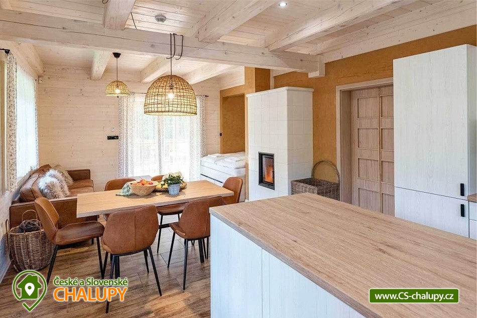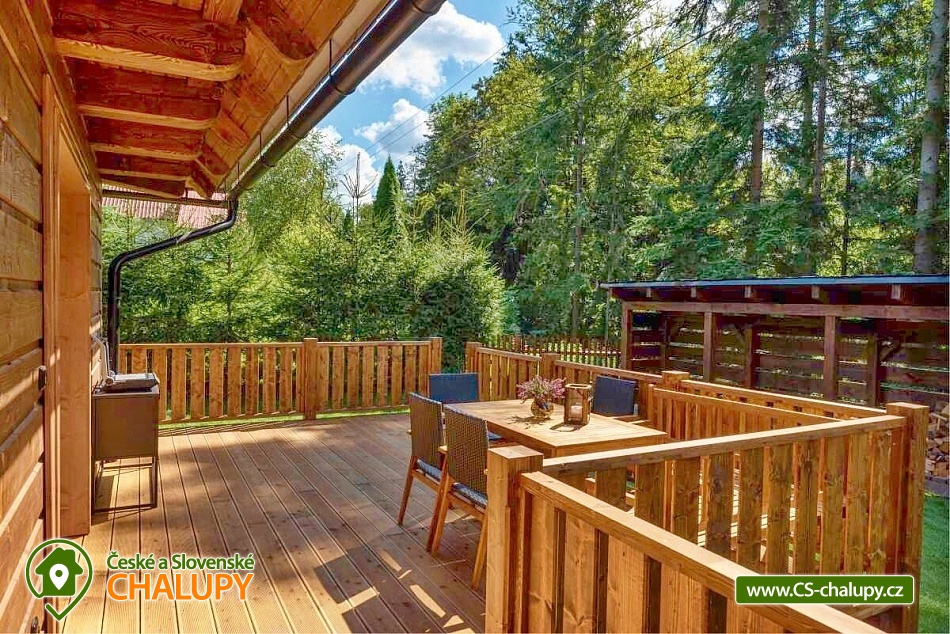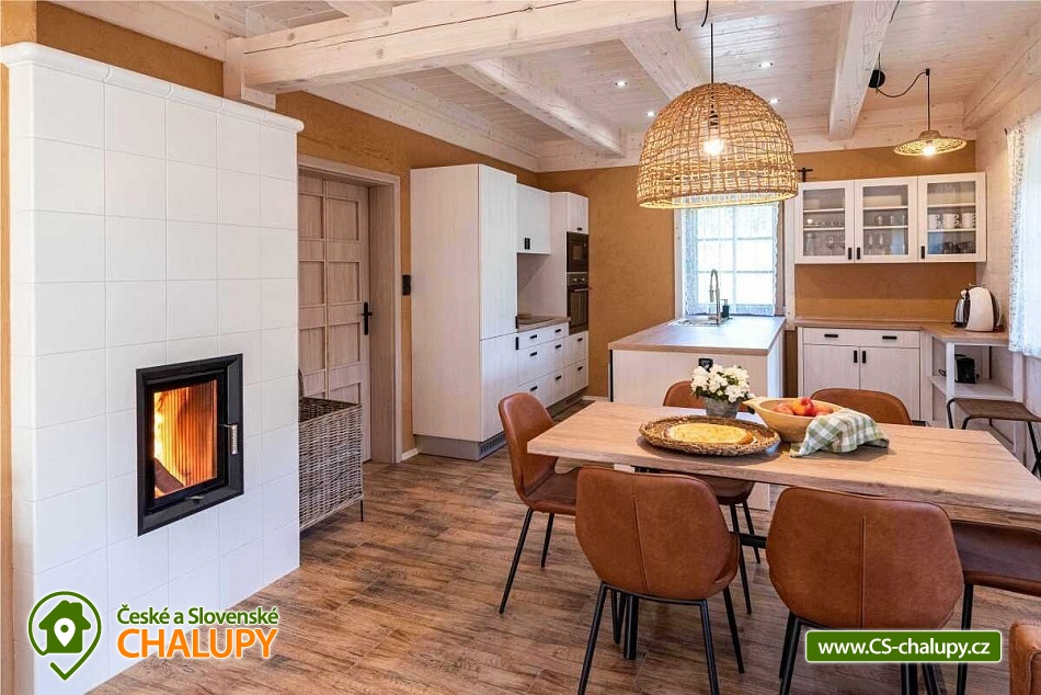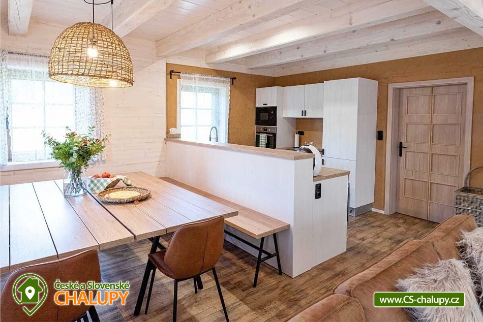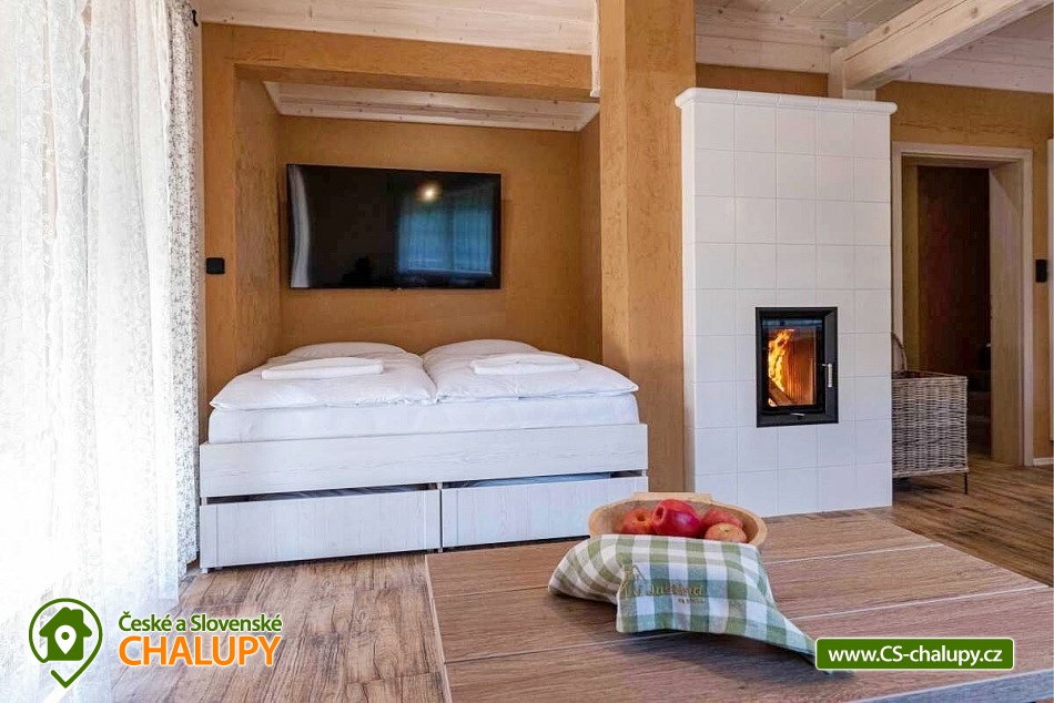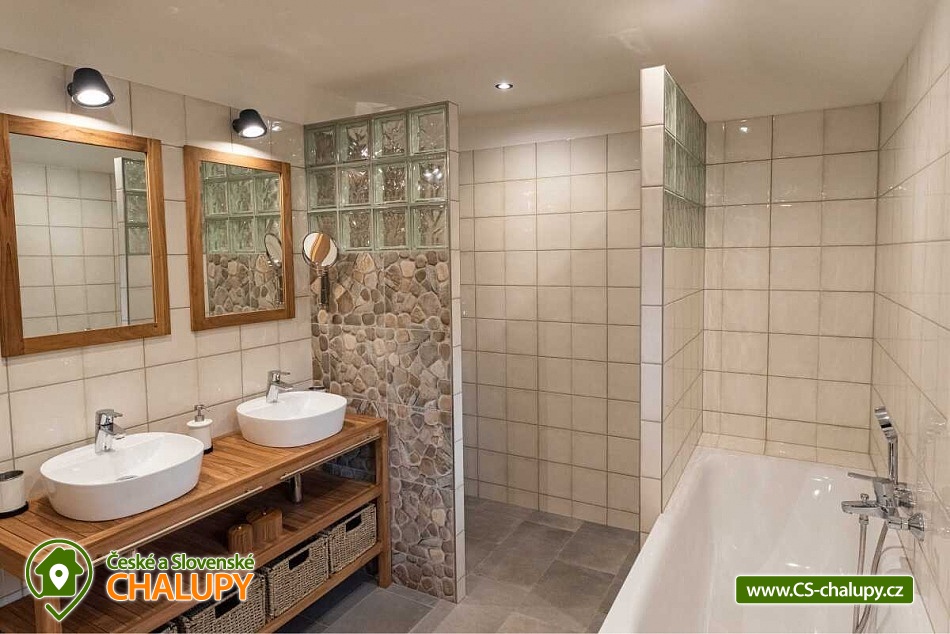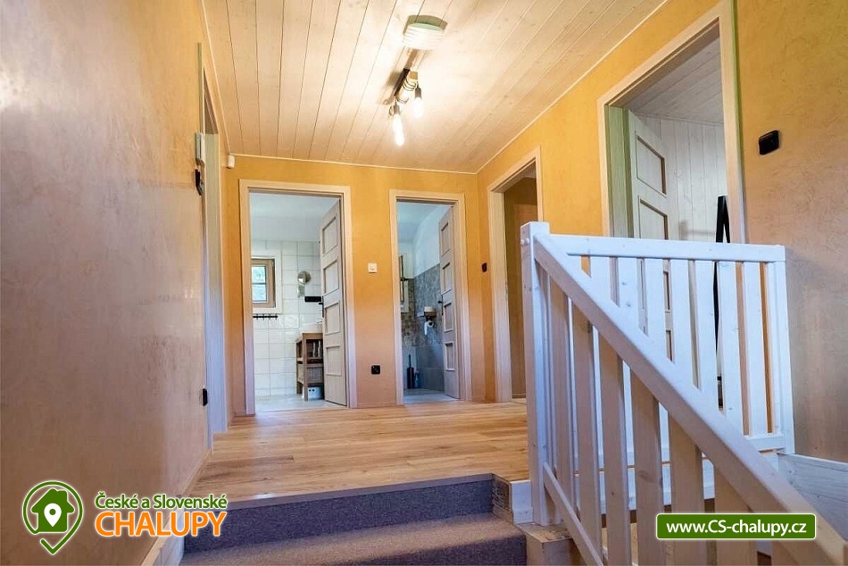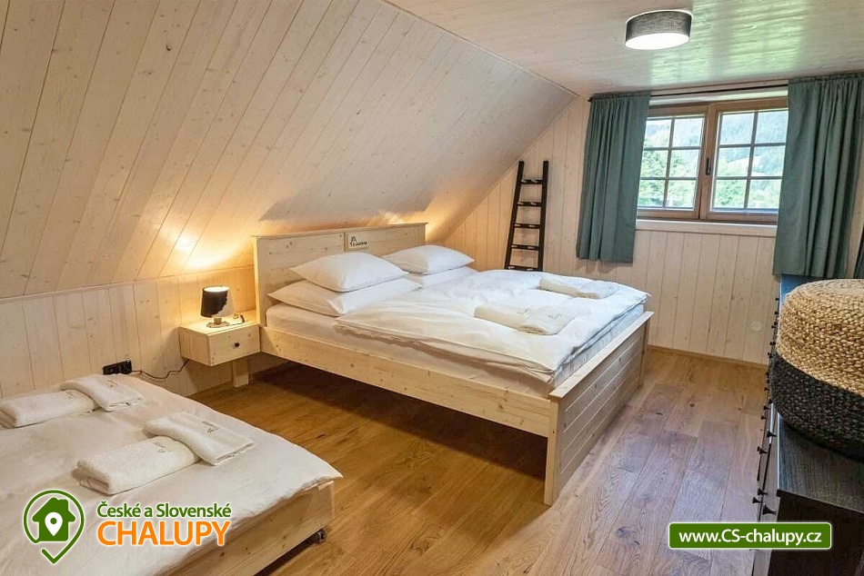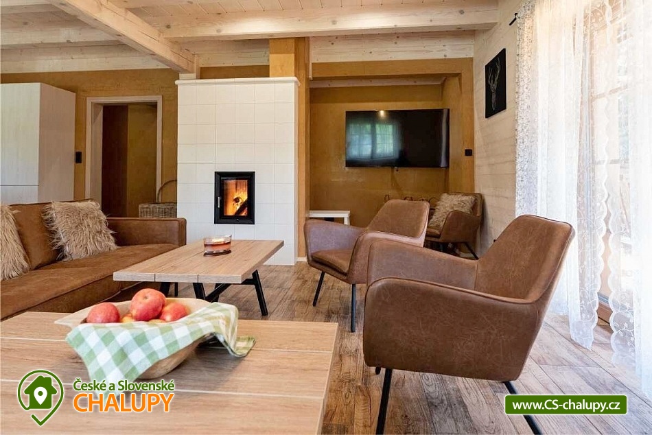 Roubená chalupa s finskou saunou v Beskydech u Vsetínské Bečvy je obklopena nádhernými loukami a lesy. Okolí je vyhledávané díky nádherné horské krajině a spousty možnostem pro lyžování, turistiku, cykloturistiku a koupání. Chalupa s výhledem na pasoucí srny a vrcholky kopců zalité sluncem nabízí relax ve finské sauně s vůni dřeva. Můžete se podívat také na naše dvě další chalupy v okolí (3M-207 a 3M-208). Stylová chalupa nabízí ubytování pro až 20 osob ve dvou samostatně pronajímaných apartmánech s vlastní kuchyní, koupelnou s WC, terasou a grilovací kotou. Do apartmánů se vstupuje přes společnou chodbu v zádveří, kde je také vstup do společné prádelny se zadním východem na terasu a zahradu a do technické místnosti. Popis: MALÝ APARTMÁN má kapacitu pro 6 osob. V patře jsou umístěné 2 samostatné ložnice s manželskou postelí (180×200 cm) a s TV. V přízemí v obývací místnosti jsou k dispozici další dvě přistýlky umístěné u kamen. Dále je součástí místnosti TV, sedací souprava, jídelní stůl, kuchyň a vstup na terasu. VELKÝ APARTMÁN má kapacitu pro 14 osob. V patře apartmánu jsou umístěné 3 ložnice. První dvě jsou čtyřlůžkové a mají k dispozici manželskou postel (180×200 cm) a dvě přistýlky řešené dvoulůžkem (160×200 cm). Třetí ložnice je šestilůžková a krom manželské postele (180x200 cm) má k dispozici dvě pevná lůžka (90×200 cm) z toho jedno je palandové a dvě přistýlky též řešené dvoulůžkem (160×200 cm). V přízemí je prostorný obývací pokoj s kachlovými kamny, sedací soupravou, velikým jídelním stolem, kuchyň a vstup na terasu. Do obou apartmánů se vstupuje přes zádveří, kde lze odložit své oblečení. Součástí apartmánů je plně vybavená kuchyň - lednice s mrazákem, myčka na nádobí, indukční varná deska, trouba s parním čištěním, mikrovlnná trouba, integrovaná malá vinotéka, kávovar Nespresso, varná konvice, toustovač, mixér, ruční mixér, atd. V obou apartmánech je k dispozici WIFI připojení na internet. Sociální zařízení zahrnuje v Malém apartmánu jednu koupelnu se sprchovým koutem a WC v přízemí a druhou koupelnu v patře s malou vanou a sprchovým koutem a jedno samostatné WC. Velký apartmán má k dispozici 3 koupelny. V přízemí jednu koupelnu se sprchovým koutem a WC. V patře jednu společnou koupelnu s velkou vanou, sprchovým koutem a samostatným WC a druhou samostatnou koupelnu patřící ke třetí ložnici se sprchovým koutem a WC. Vytápění je řešeno kachlovými kamny na dřevo, ve velkém apartmánu se vzduchovým rozvodem. Koupelny a přízemí jsou vytápěny elektrickými podlahovými rošty, v ložnicích jsou k dispozici pro přitápění sálavé infra radiátory. Ve všech oknech jsou sítě proti hmyzu v ložnicích a obývacích pokojích kouřové hlásiče. Oba apartmány jsou oplocené a mají k dispozici terasu s dřevěným posezením a malý grilovací domeček a ohniště s posezením. Každý apartmán má vlastní úschovnu pro uchovávání kol, lyží, kočárků a dalších potřebných věcí. Vstupy do těchto místností jsou před hlavním vchodem do budovy po levé a pravé straně. Pro děti je na zahradě připravené velké, společné, dětské hřiště s klouzačkami a houpačkami. Pro všechny ubytované je také k dispozici společná, pravá finská sauna Kota na dřevo s mnohaletou tradicí. Parkovat lze přímo u objektu. Malý apartmán má k dispozici stání pro 2 auta a velký apartmán pro 4 auta. K chalupě je příjezd do většího břehu, proto je v zimním období vhodná výbava sněhovými řetězy. Pozemek je ze zadní strany zabezpečen oplocením z důvodu velkého srázu. V okolí chalupy možnost turistiky, cykloturistiky, koupání, houbaření, běžkování, in -line bruslení a lyžování. V blízkosti jsou také tenisové kurty a golfové hřiště. Mezi možnosti koupání patří např.: koupaliště Velké Karlovice, Vodní svět Velké Karlovice, bazén Velké Karlovice, přehrada Horní Bečva, koupaliště Balaton, koupaliště biotop Bečva, koupaliště Hutisko-Solanec, koupaliště Vigantice, koupaliště Rožnov pod Radhoštěm, bazén Rožnov pod Radhoštěm, atd. V zimním období jsou k dispozici blízká lyžařská střediska: Velké Karlovice - Machůzky, Razula, Velké Karlovice - Bambucha, Synot - Kyčerka, LS zona snow Makov - Kasárne, Soláň - Bzové, Třeštík – Celnica, Karolínka a další. K výletům v okolí láká Valašské muzeum v přírodě - Rožnov pod Radhoštěm, Pustevny s vycházkou na Radhošť, Kopřivnice - muzeum Tatrovky, Čeladná - bobová dráha, ZOO Lešná nebo Valašské Meziříčí. Těšíme se na Vás u nás.