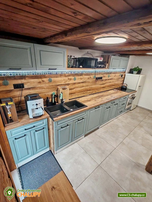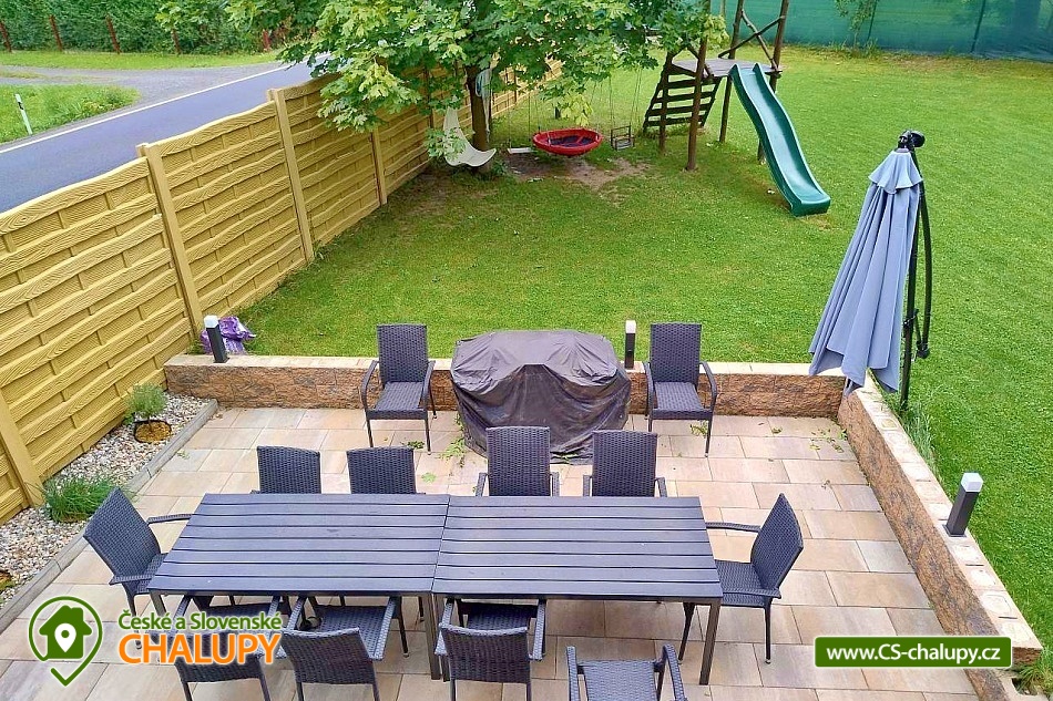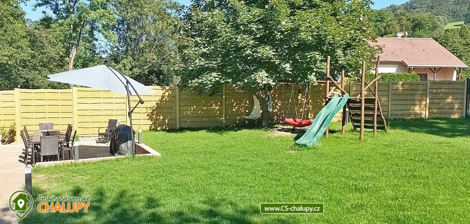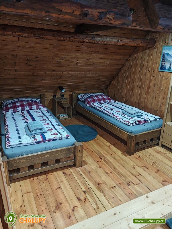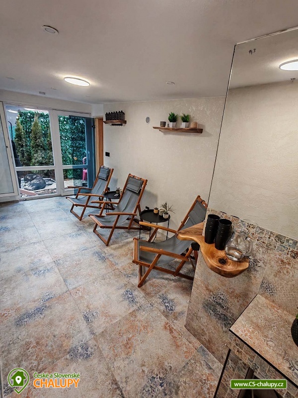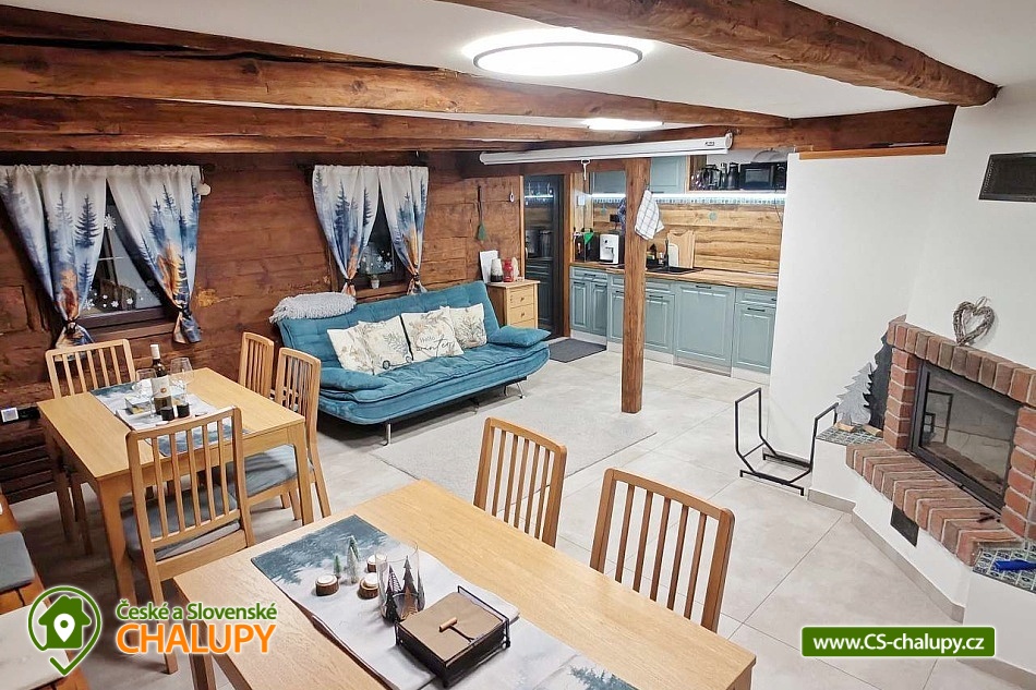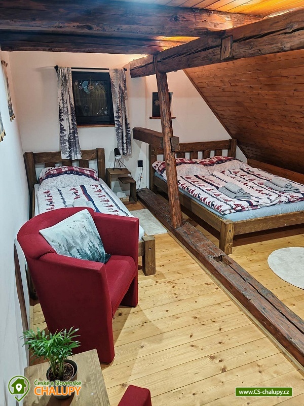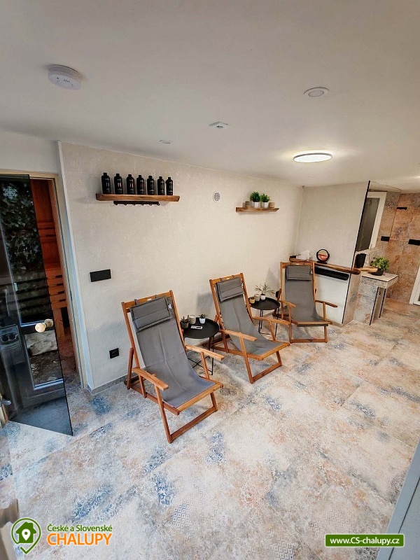Roubenka se saunou u Rychlebských stezek v Jeseníkách. Během ubytování se můžete těšit na relaxování ve finské sauně s odpočinkovou zónou nebo na posezení na prostorné terase s grilem či na hraní společenských her přímo u krbu. Roubenka nabízí ubytování pro až 15 osob v 5 ložnicích. V přízemí je umístěná 2x dvoulůžková ložnice s rozkládací postelí, která může sloužit jako jednolůžko (90x200) nebo po rozložení jako dvoulůžko s plnohodnotnými matracemi (180x200). Tyto ložnice jsou propojené dveřmi. Součástí jedné z nich jsou také hračky pro děti různých věkových kategorií. Další tři samostatné ložnice jsou umístěné v patře. K dispozici je 2x čtyřlůžková ložnice, jedna s dvěma dvoulůžky (140×200) a druhá s jedním dvoulůžkem (180x200) a dvěma jednolůžky (90x200), a 1x třílůžková ložnice s dvoulůžkem (140x200) a jednolůžkem (90x200) a s přenosnou dětskou postýlkou. Součástí ložnic jsou noční stolky, skříně a u některých ložnic také stůl a křesílka. Pro všechny ubytované jsou k dispozici lůžkoviny, povlečení, ručníky a osušky. Interiér roubenky je velmi útulný a je potřeba v něm zohlednit zachované velmi autentické nízké stropy a průchody. V přízemí se z hlavního vchodu vejde na chodbu, ze které je možné vejít do obývacího pokoje s krbem, posezením pro cca 12 osob, sedací soupravou, TV a Bluetooth repráčkem. Součástí pokoje je plně vybavená velká kuchyň s indukční deskou, lednicí s mrazákem, troubou, kávovarem, příklopným grilem, mikrovlnnou troubou, atd. K dispozici je také sadu hrnců a dva tlakové hrnce, pekáče, misky různých velikostí, vařečky, příbory, talíře, hrnky, sklenice (voda, víno, pivo), džbány, termo konvice i základní koření, olej, ocet, čaj a cukr. Zapůjčit lze výčepní zařízení s chlazením. Dále se v zadní části chalupy nachází relaxační místnost s finskou saunou, sprchou a přístupem na zahradu. Místnost lze v v letním období využít jako další společenskou místnost. K dispozici je zde projektor a plátno. Pro chvíle zábavy v roubence slouží spoustu společenských her pro nejmenší až po zkušené hráče (Krycí jména, šachy, 100+ her do každé domácnosti, KrisKros, karty, kostky atd.) a multifunkční stůl 15 v 1, na kterém je možné hrát např. kulečník, stolní fotbálek, ping - pong, shuffleboard, kuželky a spoustu dalších her. Součástí domu je také úschovna pro kola, lyže, běžky, snowboardy a kočárky. V celém objektu je k dispozici WIFI připojení na internet. Sociální zařízení zahrnuje dvě koupelny s WC. V jedné koupelně je umístěná rohová vana a ve druhé velký sprchový kout s multifunkční sprchou. K dispozici je také koupelnová předsíňka, kde se nachází umyvadlo se skříňkou a zrcadlem. Vytápění je řešeno radiátory s inteligentní thermohlavicí, napojenými na kondenzační kotel, který zajišťuje vytopení celého domu. Dále krbovými kamny s rozvodem teplého vzduchu do koupelen a patra. K dispozici je také elektrický teplovzdušný ventilátor. Venku lze trávit příjemné chvíle na oplocené travnaté zahradě. K dispozici je posezení na terase s grilem nebo u ohniště. Děti ocení dětské hřiště s houpačkou a skluzavkou. K zapůjčení jsou dětská kola, odrážedla a koloběžky. Parkovat lze přímo u objektu. V okolí roubenky možnost turistiky, cykloturistiky, koupání, houbaření, lyžování a běžkování. Přímo v obci také možnost volejbalu, nohejbalu, fotbálku, dětského hřiště venkovního i vnitřního herního světa. V blízkosti jsou také tenisové kurty. Mezi možnosti koupání patří např.: bazén Jeseník - Priessnitz, bazén Domašov - Bělá pod Pradědem, koupaliště Jeseník, bazén Česká Ves, lom Žulová - Brankopy, lom Rampa, lom Žulová, Bazén Karlova Studánka, atd. K dispozici jsou blízká lyžařská střediska: Filipovice, Lyžařský areál Na Smrťáku, Lázeňský vrch, Jeseník - Lázně, Miroslav - Lipová Lázně, Červenohorské sedlo a další. K výletům v okolí lákají Rychlebské stezky, Jeskyně na Pomezí, Praděd, Karlova Studánka, Termální lázně Velké Losiny nebo přečerpávací vodní elektrárna Dlouhé Stráně. Těšíme se na Vás u nás.