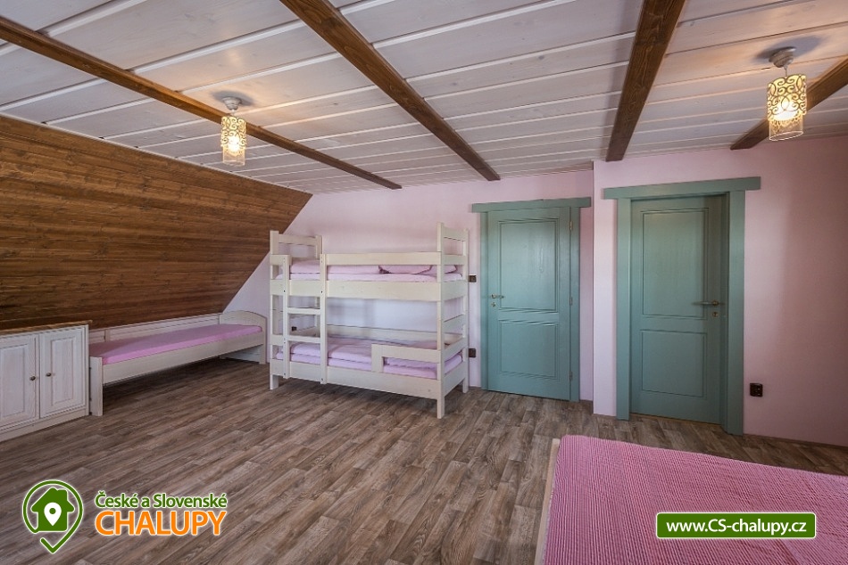 Roubená chalupa Toulovcovy Maštale se saunou a kachlovými kamny se nachází na okraji obce Martinice v krajinné oblasti Železných hor, v severní části Vysočiny obklopena krásami přírody. Chalupa je vzdálena 5 km od přírodní rezervace Maštale - tato přírodní rezervace chrání pískovcové skalní město Toulovcovy Maštale. Chalupa k pronájmu poskytuje ubytování pro až 18 osob ve 3 ložnicích. POPIS: Ložnice: přízemí (manželská postel a dvoupatrová postel), podkroví - 7 lůžek (dvoulůžko, dvoupatrová postel, 1x samostatné lůžko, 2x samostatné výsuvné lůžko), podkroví - 7 lůžek (dvoulůžko, dvoupatrová postel, 1x samostatné lůžko, 2x samostatné výsuvné lůžko) a možnost zajistit dětskou postýlku. Sociální zařízení - Koupelny: přízemí (vana, toaletní stolek s umyvadlem a sauna), patro (sprchový kout + WC v pokoji), patro (sprchový kout + WC v druhém pokoji). Vytápění: elektrokotel + krbová vložka. Součástí roubenky je plně vybavená kuchyň s rychlovarnou konvicí, ledničkou s mrazákem, nádobím, myčkou, sklokeramickou varnou deskou, elektrickou a mikrovlnnou troubou. Světnice je vybavená televizí, krbem a posezením. V létě je možné využít posezení na terase se zahradním nábytkem, ohniště a gril. Pro nejmenší je připravena houpačka, pískoviště, trampolína. V letním období je chalupa jako ideální výchozí bod pro pěší turistiku či cykloturistiku. Na své si přijdou i houbaři. V letním období je chalupa jako ideální výchozí bod pro pěší turistiku či cykloturistiku. Můžete vyšplhat na jednu z blíže situovaných rozhleden, která nese název Terezka. Nedaleko obce se nacházejí 4 lyžařské areály, nabízí lyžařské vleky dětské vleky (tzv. lanové), lyžařskou školu, půjčovnu lyžařského vybavení, občerstvení s útulným posezením. Okolí Martinic nabízí spousty sportovního vyžití. Na kole či pěšky můžete nahlédnou do skalního městečka Toulovcovy Maštale či navštívit celosvětový unikát Peklo čertovina. Zkrátka v našem kraji se nudit nebudete! Těšíme se na Vás u nás.