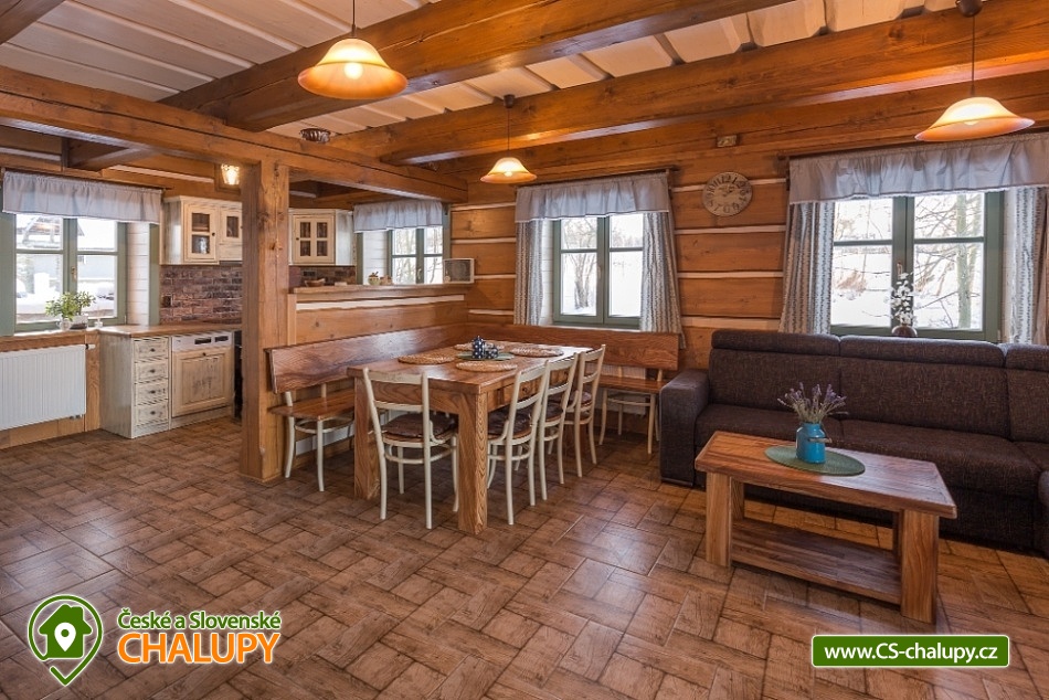 Roubená chalupa Toulovcovy Maštale se saunou a kachlovými kamny se nachází na okraji obce Martinice v krajinné oblasti Železných hor, v severní části Vysočiny obklopena krásami přírody. Chalupa je vzdálena 5 km od přírodní rezervace Maštale - tato přírodní rezervace chrání pískovcové skalní město Toulovcovy Maštale. Chalupa k pronájmu poskytuje ubytování pro až 18 osob ve 3 ložnicích. POPIS: Ložnice: přízemí (manželská postel a dvoupatrová postel), podkroví - 7 lůžek (dvoulůžko, dvoupatrová postel, 1x samostatné lůžko, 2x samostatné výsuvné lůžko), podkroví - 7 lůžek (dvoulůžko, dvoupatrová postel, 1x samostatné lůžko, 2x samostatné výsuvné lůžko) a možnost zajistit dětskou postýlku. Sociální zařízení - Koupelny: přízemí (vana, toaletní stolek s umyvadlem a sauna), patro (sprchový kout + WC v pokoji), patro (sprchový kout + WC v druhém pokoji). Vytápění: elektrokotel + krbová vložka. Součástí roubenky je plně vybavená kuchyň s rychlovarnou konvicí, ledničkou s mrazákem, nádobím, myčkou, sklokeramickou varnou deskou, elektrickou a mikrovlnnou troubou. Světnice je vybavená televizí, krbem a posezením. V létě je možné využít posezení na terase se zahradním nábytkem, ohniště a gril. Pro nejmenší je připravena houpačka, pískoviště, trampolína. V letním období je chalupa jako ideální výchozí bod pro pěší turistiku či cykloturistiku. Na své si přijdou i houbaři. V letním období je chalupa jako ideální výchozí bod pro pěší turistiku či cykloturistiku. Můžete vyšplhat na jednu z blíže situovaných rozhleden, která nese název Terezka. Nedaleko obce se nacházejí 4 lyžařské areály, nabízí lyžařské vleky dětské vleky (tzv. lanové), lyžařskou školu, půjčovnu lyžařského vybavení, občerstvení s útulným posezením. Okolí Martinic nabízí spousty sportovního vyžití. Na kole či pěšky můžete nahlédnou do skalního městečka Toulovcovy Maštale či navštívit celosvětový unikát Peklo čertovina. Zkrátka v našem kraji se nudit nebudete! Těšíme se na Vás u nás.