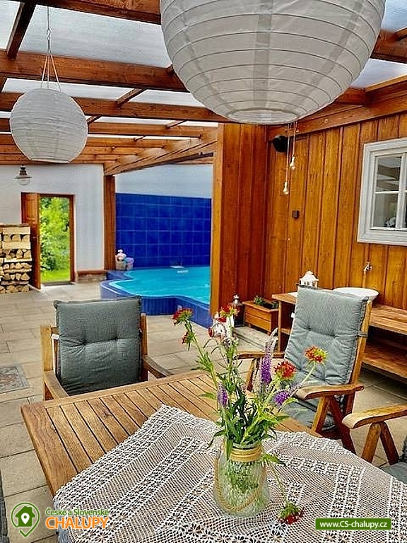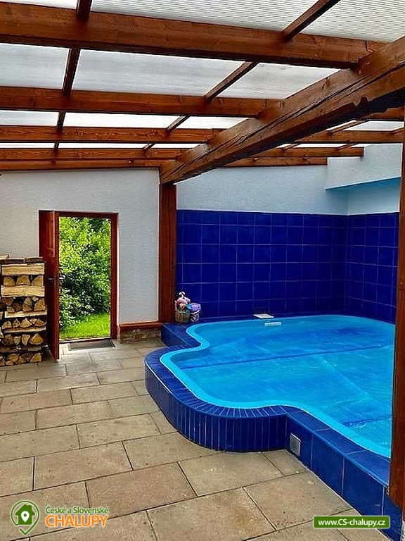 Roubenka s vnitřním bazénem, saunou a koupacím sudem v CHKO Broumovsko u Skalního města Adršpach. Chalupa má krásnou zastřešenou terasu s bazénem, je umístěná nedaleko luk a lesů, kde najdete klid a pohodu. Hlavní vchod chalupy vede chodbičkou do kuchyňky, která je propojená s halou a krbem. Po levé straně je pokoj s pecí na přespání pro 2 osoby, v pokoji je velký jídelní stůl. Druhý pokoj v přízemí je také s pecí a postelí, vyspí se zde 3 osoby. V přízemí je koupelna se sprchou a WC. V patře po levé straně je pokoj pro 3 osoby s koupelnou a WC a po pravé straně pokoj pro 4 osoby. Mezi pokoji je kulečníkový stůl. V objektu je tak celkem 3x koupelna se sprchou a WC. Mezi vybavení patří TV, kulečník, fotbálek, lednice a myčka. Hostům je k dispozici i koupací sud a sauna. Chalupa má krásnou zastřešenou terasu s bazénkem pro děti a zahradu. Malý pejsek je povolen, jen je nutné hlídat koberce v horním patře, kde je nutné zamezit přístup. K dispozici jsou 3 parkovací místa před chalupou. Dlouhé procházky a krásné výhledy na zdejší krajinu Vás ohromí. Usedněte na lavičku pod les a jen naslouchejte. Skalní město Adršpach, nedaleký Broumov s klášterem, cyklotrasa kousek od chalupy. Centrum Walzel v Meziměstí - střelnice, bowling, solná jeskyně, výborná kuchyně. Broumovské stěny - krásná vyhlídka na Hvězdě na celé Broumovsko. Pro pěší nádherná trasa na Hřiby, nebo Kamennou bránu s krásnou vyhlídkou a Korunu v Božanově. Možnosti koupání v okolí: koupaliště Meziměstí, koupaliště Koupálo Janovičky, koupaliště Teplice nad Metují, koupaliště Police nad Metují nebo např. rybník Buchťák.