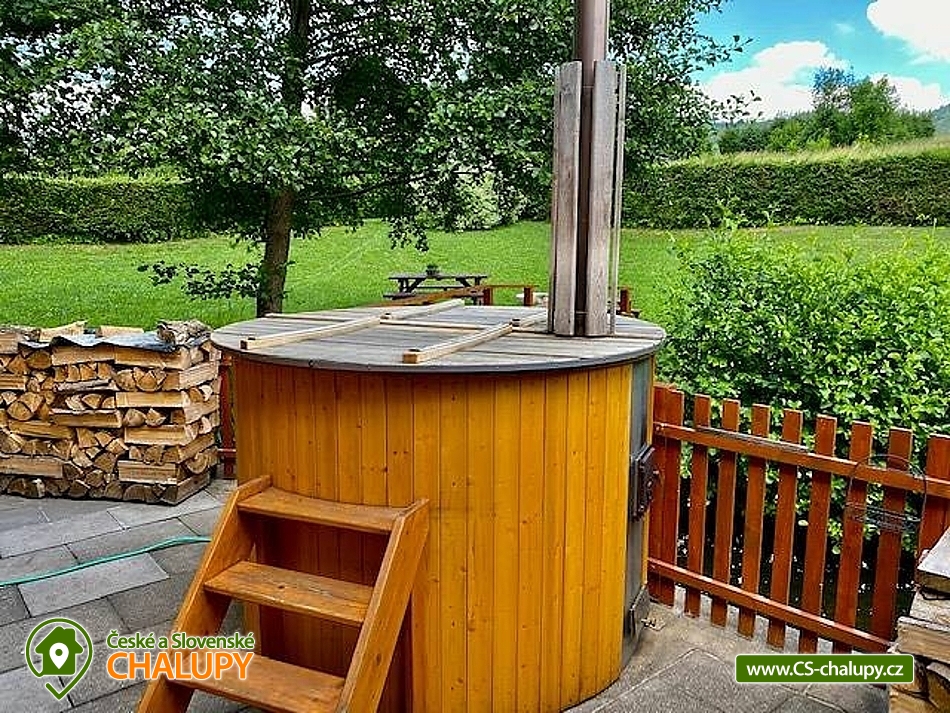 „Roubenka s vnitřním bazénem, saunou a koupacím sudem - Adršpach“