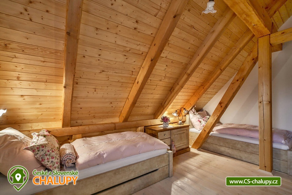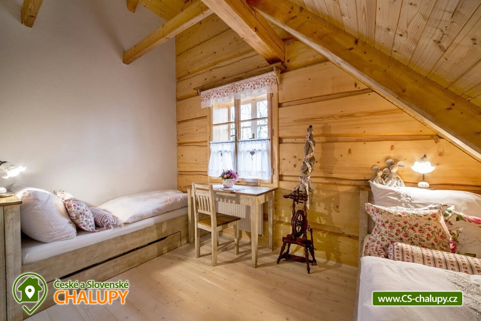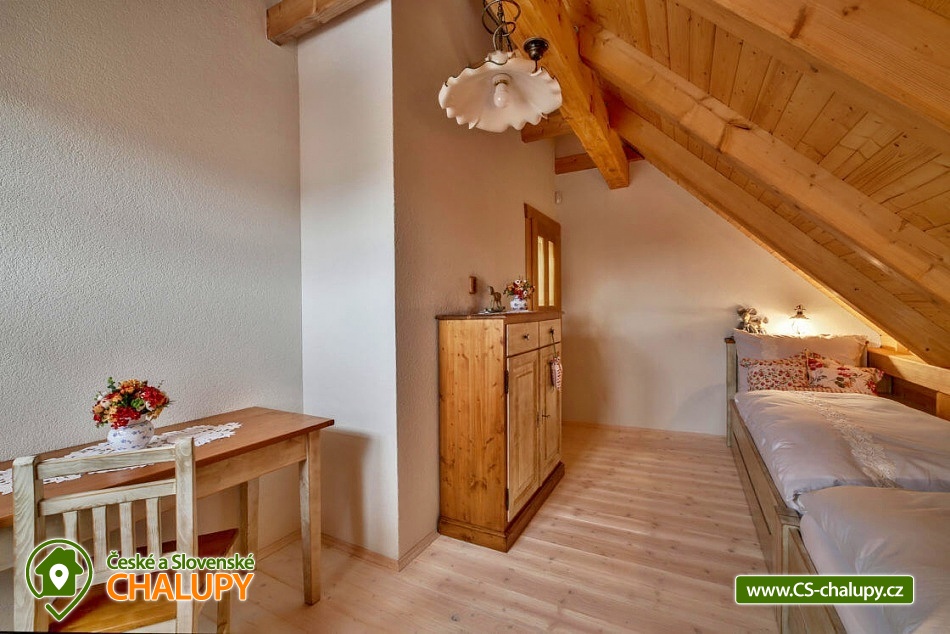 • 3 -lůžková ložnice + 2 přistýlky v obývací části (gauč + lůžko u pece)