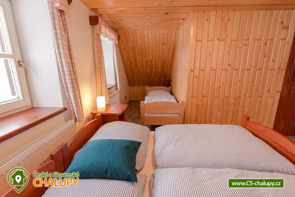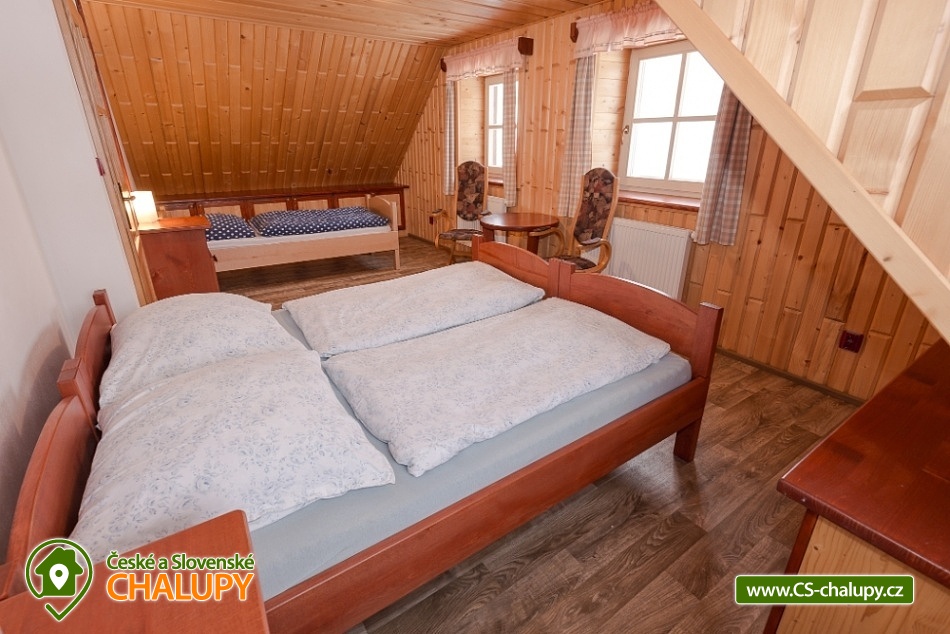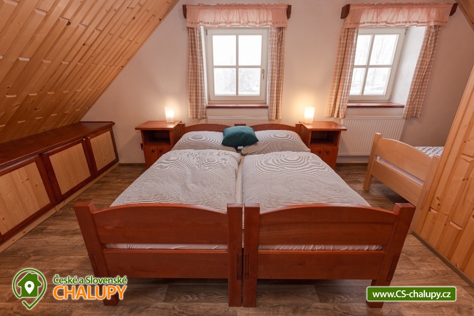 Roubená chalupa se saunou a vlastním rybníkem se nachází v krajinné oblasti Železných hor, v severní části Vysočiny obklopena krásami přírody. Chalupa je vzdálena 5 km od přírodní rezervace Maštale - tato přírodní rezervace chrání pískovcové skalní město Toulovcovy Maštale. Chalupa k pronájmu poskytuje ubytování pro až 14 osob ve 4 ložnicích. POPIS: Ložnice - 1x přízemí (manželská postel + patrová postel), 1x v podkroví (manželská postel + 2x jednolůžko + dětská postýlka), 2x v podkroví (manželská postel + jednolůžko). Sociální zařízení - koupelna: přízemí (sprchový kout, toaletní stolek s umyvadlem, pračka), patro (vana, toaletní stolek s umyvadlem a sauna s možností osvěžení v nově vybudovaném rybníku). Plně vybavená kuchyň (sklokeramická varná deska, horkovzdušná i mikrovlnná trouba, lednice s mrazákem, myčka, rychlovarná konvice, nádobí a veškeré kuchyňské vybavení). Veškerý KOMFORT MODERNÍ DOMÁCNOSTI ve spojení s atmosférou starých časů a venkovským stylem. Vytápění chalupy - ústřední topení elektrokotlem, je možné topit také v krbové vložce dřevem s rozvodem do ústředního topení. V chalupě je TV a wifi internet. U chalupy k dispozici rozlehlý pozemek s travnatou plochou např. pro hraní míčových her, skotačení dětí a možností opékání či grilování. Pro děti - houpačky, pískoviště, dětská židlička a postýlka. Celý objekt je NEKUŘÁCKÝ! U chalupy je Vám k dispozici vlastní rybník ke koupání nebo rybaření (rybník s nasazenými siveny, amury, candáty a kapry) - loďka k dispozici. Parkování přímo u chalupy. V okolí se nachází velké množství značených turistických tras a cyklotras. K oblíbeným výletním cílům patří rozhledna Terezka, skalní město Toulcovy Maštale a Peklo čertovina. Okolí skýtá mnoho možností ke koupání například na koupalištích Skuteč, Dolní Újezd, Bor u Skutče či v rybníku Krejcar. Lyžaři jistě ocení blízkost lyžařského střediska Hlinsko. Nedaleko obce se nacházejí celkem 4 lyžařské areály, nabízí lyžařské vleky dětské vleky (tzv. lanové), lyžařskou školu, půjčovnu lyžařského vybavení, občerstvení s útulným posezením. Těšíme se na Vás u nás.