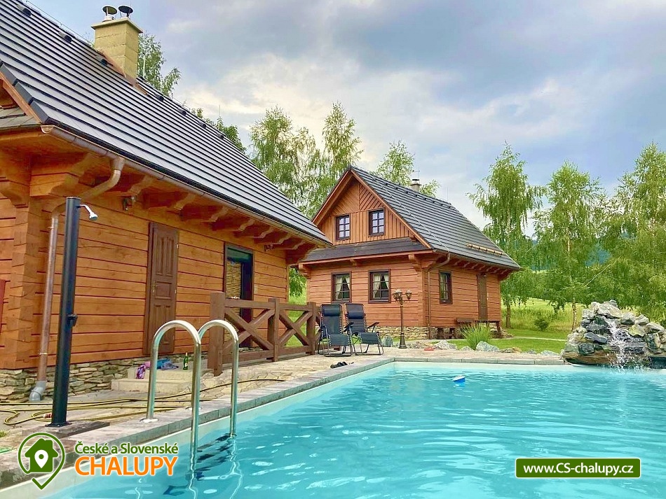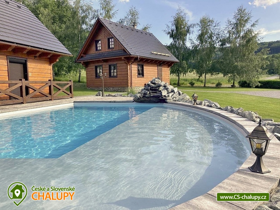 „Dvě roubenky (7 + 7 osob) s bazénem a saunou - Velké Losiny - Jeseníky“