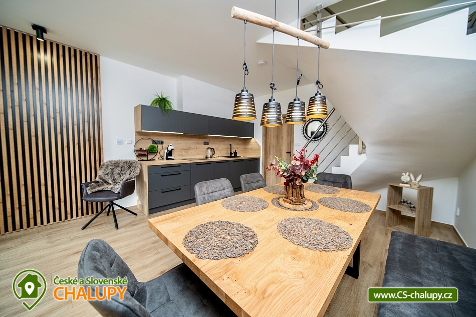 Apartmánová chata (2 apartmány 6 + 6 osob) na úpatí Lysé hory je ideálním místem pro váš odpočinkový pobyt. Chata se nachází 450 m od Satinských vodopádů, ubytování je na přímé trase na nejvyšší vrchol Moravskoslezských Beskyd Lysou Horu. Nabízíme dvě moderně vybavené jednotky, které jsou připraveny ubytovat celkem až 12 hostů. Každý apartmán má svou vlastní terasu s posezením, kde si můžete odpočinout po výletě v Beskydech. Komplex obsahuje dva téměř identické apartmány, které jsou vzájemně zrcadlově otočené. Nesmí chybět ani zahrada s ohništěm a houpačkou nebo koupacím sudem. Vybavení: každý apartmán zahrnuje ložnice: Ložnice č.1 (velká manželská postel), Ložnice č.2 (2 x jednolůžková postel), Obývací pokoj (rozkládací pohovka - 2 přistýlky). Každý apartmán má dvě koupelny se sprchovým koutem, záchodem a umyvadlem. Obývací části v prvním podlaží jsou vybaveny prostornou rozkládací pohovkou, televizí, úložným prostorem, kuchyňskou linkou, myčkou, lednicí a velkým jídelním stolem. Součástí vstupní haly jsou prostorné skříně a první koupelna. V druhém podlaží najdeme dva pokoje. První pokoj je vybaven komodou, nočními stolky s lampičkami a velkou manželskou postelí. Druhý pokoj je vybaven křeslem, komodou, nočním stolkem s lampičkou, televizí a dvě samostatné postele. V patře nalezneme také větší koupelnu, která navíc obsahuje komodu a úložný prostor pod umyvadlem. Okolí: Satinské vodopády - Hluboká skalní soutěska s malebnými kaskádami a vodopády. Jedna z nejkrásnějších přírodních památek v Beskydech (450 m). Lyžařský a turistický areál Ski Malenovice (500 m). Lysá hora - Nejvyšší hora Moravskoslezských Beskyd. Chladná voda - Ikonické horské jezírko v zalesněném terénu - 1,9 km a Malenovická vyhlídka.
