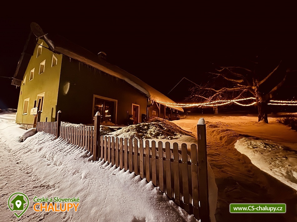 Chalupa s bazénem se slanou vodou, saunou a vyhřívaným koupacím sudem s vířivkou se nachází v těsné blízkosti Národní přírodní rezervace Kralický Sněžník v osadě Sklené u obce Malá Morava a pouze 5 km od střediska Dolní Morava. Těšit se můžete na blízkost lesa, velkou zahradu a odpočinek v koupacím sudu nebo v sauně. Chalupa nabízí ubytování pro až 11 osob ve čtyřech ložnicích. Celkem jsou k dispozici 3 dvoulůžkové ložnice s manželskou postelí a jedna čtyřlůžková ložnice s přistýlkou (rozkládací křeslo). Dětská postýlka je k zapůjčení. Chalupa má dvě nadzemní podlaží. V přízemí se nachází vstupní chodba s úložnými prostory. Dále je zde společenská místnost se sedací soupravou, pohodlnými křesly, s jídelním stolem pro 10 osob, TV s Netflix či YouTube a stolními hry. Součástí místnosti je plně vybavená kuchyň (lednice, mikrovlnná trouba, varná deska, horkovzdušná trouba, rychlovarná konvice, kávovar na zrnkovou kávu a dostatečné množství nádobí). Na místnost navazuje ložnice s kontinentální postelí, komodou, nočními stolky, křesílky a konferenčním stolkem. Součástí přízemí je také odpočinková místnost se saunou a ochlazovací sprchou a koupelna se sprchovým koutem, umyvadlem a dvěma zrcadly a jedno samostatné WC. V podkroví jsou umístěné další tři ložnice. Dvě menší s manželskou postelí (160x200cm) komodou a křesílky. Poslední ložnice je vhodná svým vybavením spíše jako dětský pokoj, k dispozici jsou dvě patrové postele (90x200 cm), vhodné i pro dospělého. Dále je součástí ložnice dětský koutek s hračkami a jedno rozkládací křeslo jako přistýlka. V patře se nachází také koupelna se sprchovým koutem a WC a jedno samostatné WC s pisoárem. Vytápění je řešeno kotlem na tuhá paliva. V celém objektu je k dispozici WIFI připojení na internet. Chalupu obklopuje prostorná zahrada, jejíž součástí je krytá terasa s relaxační zónou, ale také nekrytá terasa s lehátky, která poskytne příjemné slunění až do pozdního večera. Na zahradě je bazén se slanou vodou (v letních měsících), koupací sud s vířivkou, ochlazovací jezírko, ovocné stromy a keře, které v době zralosti plodů můžete využít. K dispozici je gril a ohniště. Děti ocení prolézačky se skluzavkou a houpačkami, pískovištěm a v letních měsících s trampolínou. Parkovat lze přímo u objektu. K dispozici je nabíječka pro elektromobil. V okolí chalupy možnost turistiky, cykloturistiky, koupání, houbaření, rybaření, běžkování a lyžování. V blízkosti jsou také tenisové kurty a jízdárna. Součástí blízkého areálu je Dolní Morava je také nejdelší visutý most na světě Sky Bridge 721, Stezka v oblacích, Mamutí horská dráha, Adrenalin park, Trial Park, bobová dráha a mnoho dalších úžasných atrakcí. Mezi možnosti koupání patří např.: koupaliště Králíky, Hynčice pod Sušinou - rybník Úžas, bazén Mezilesí, koupaliště Ruda nad Moravou, Velké Losiny - termály, termální koupaliště Velké Losiny atd. K dispozici jsou blízká lyžařská střediska: Dolní Morava - Sněžník, Malá Morava - Vysoká, Dolní Morava - Větrný vrch a další. K výletům v okolí láká také Vodní nádrž Pastviny a Vodní nádrž Dlouhé straně, dále Ruční papírna Velké Losiny, Vojenské muzeum Staré Město, Pivovarské muzeum Hanušovice nebo Dělostřelecká tvrz Hůrka a Klášter Hora Matky Boží Hedeč u města Králíky. Těšíme se na Vás u nás.