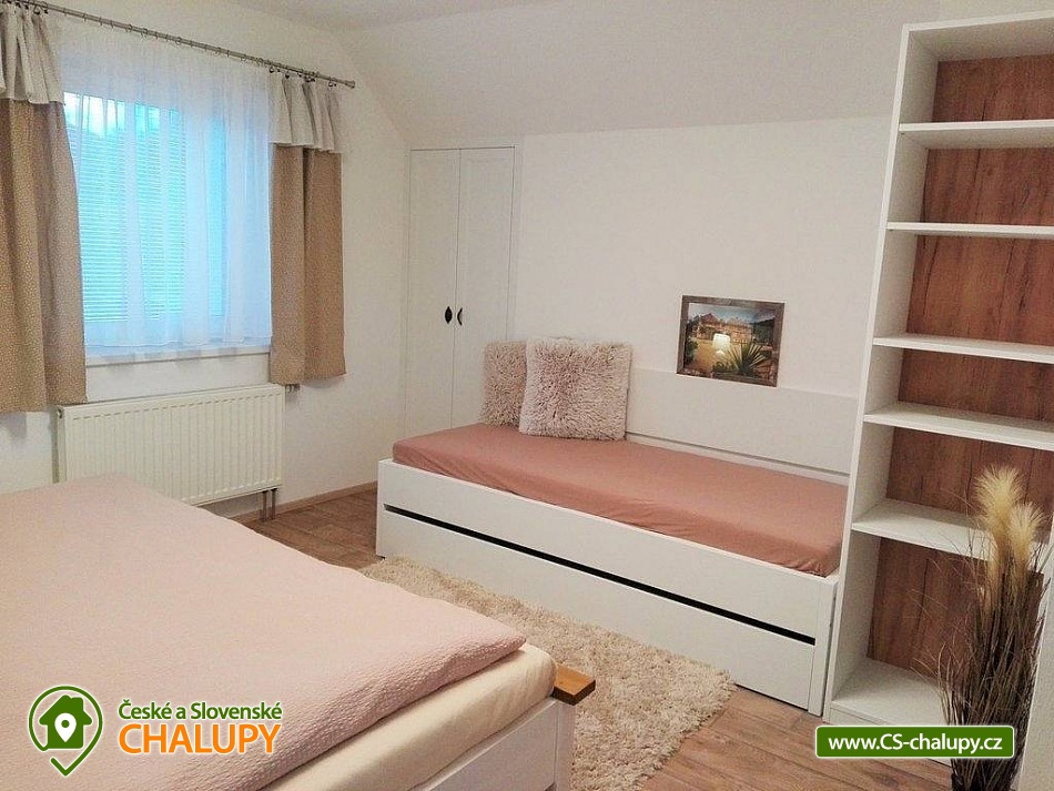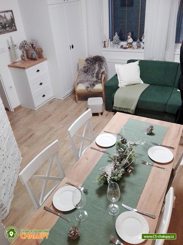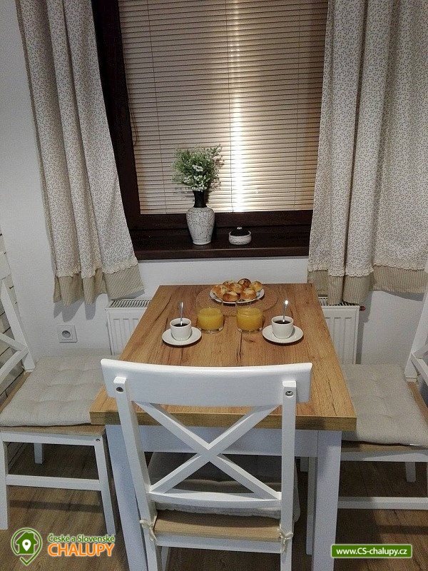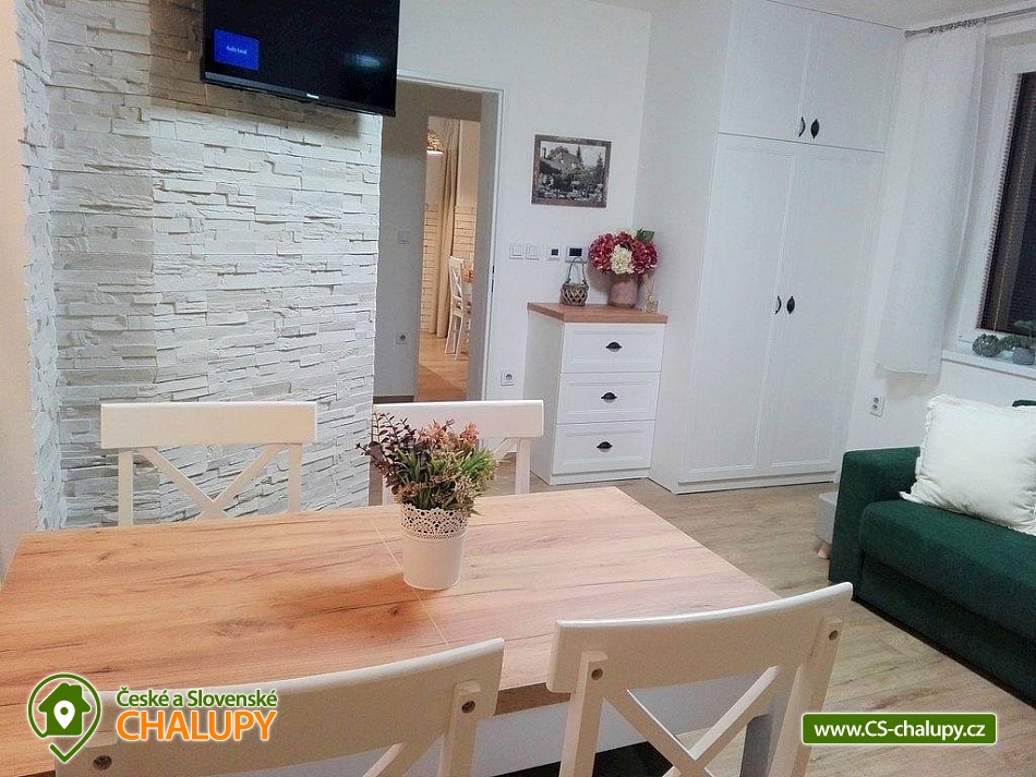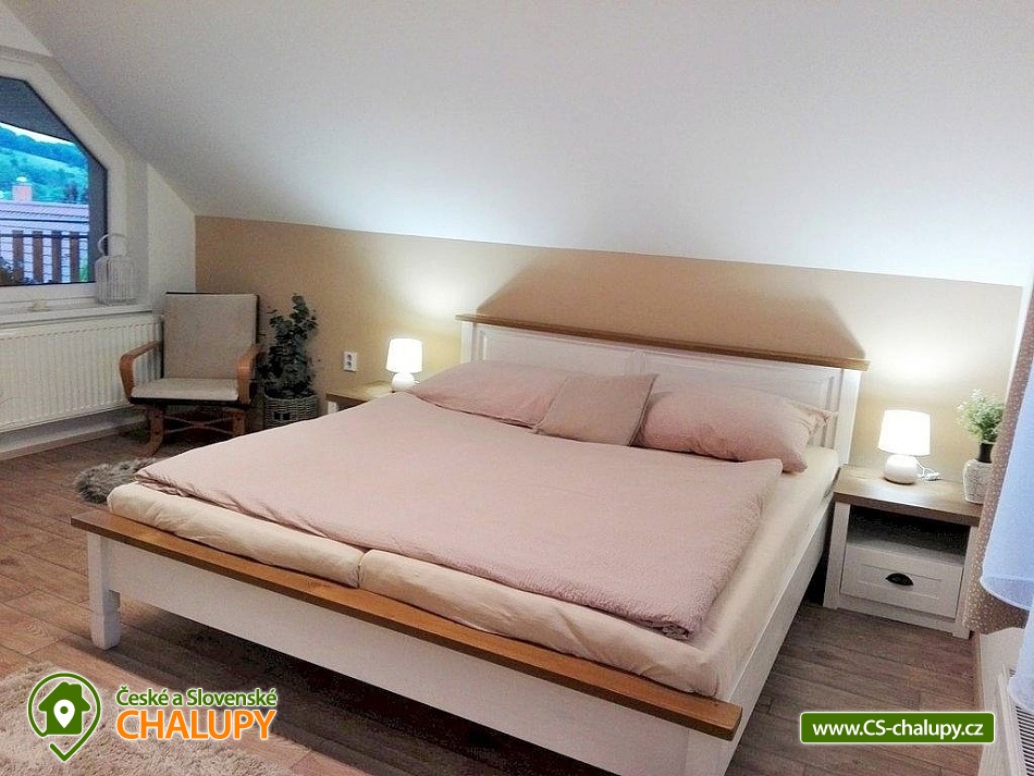 Útulná chalupa ve venkovském stylu se nachází v blízkosti malebné přírody CHKO Bílé Karpaty, poloha u Luhačovické přehrady v krásném lázeňském městě Luhačovice. Přímo ve městě si můžete užívat procházky po kolonádě s historickými lázeňskými domy nebo kolem Luhačovické přehrady či ochutnávat léčivé prameny, mezi které patří známá Vincentka. Chalupa nabízí ubytování pro 7 osob, celkem je k dispozici jedna dvoulůžková ložnice (2x jednolůžko), jedna třílůžková ložnice (1x manželská postel a 1x jednolůžko) a přistýlka pro 2 osoby řešená rozkládací sedací soupravou v obývacím pokoji. K zapůjčení je dětská postýlka, židlička a hračky. Společné chvíle lze trávit v obývacím pokoji s jídelním stolem, TV se SAT a kvalitním italským rozkládacím gaučem, který po rozložení slouží jako plnohodnotné manželské lůžko. K dispozici je také rádio a společenské hry. Na obývací pokoj navazuje místnost s plně vybavenou kuchyní, kde najdete elektrickou troubu, indukční varnou desku, mikrovlnnou troubu, rychlovarnou konvici, lednici, mrazák, kávovar, myčku, topinkovač, toustovač a nádobí. Součástí kuchyně je menší jídelní stolek. V celém objektu je k dispozici WIFI připojení na internet. Sociální zařízení zahrnuje jednu koupelnu s WC, sprchou, umyvadlem, fénem, sušákem na prádlo a ručníky. K dispozici je také jedno samostatné WC. Posedět lze buď na prostorném zastřešeném balkoně s ratanovým nábytkem a výhledem do okolní krajiny lázeňského města, nebo ve vybavené kryté pergole s venkovní kuchyní, grilem a prostorným stolem pro až osm osob. Odpočinout si můžete v hamace. Parkovat lze přímo u objektu. K dispozici jsou 2 parkovací místa na oploceném stání. V okolí chalupy možnost turistiky, cykloturistiky, koupání, houbaření, rybaření, lyžování a běžkování. V blízkosti jsou tenisové kurty, golfové hřiště, jízdárna, bowling, wellness a fitness. Mezi možnosti koupání patří např.: bazén Luhačovice - Městská plovárna, Luhačovická přehrada, koupaliště Bojkovice - KUPKO, Koupaliště Slavičín, Koupaliště Nezdenice, koupaliště Pitín, aquapark Delfín - Uherský Brod, koupaliště Zlín - Zelené atd. K okolním výletům láká Muzeu luhačovického Zálesí s kabinetem architekta Dušana Jurkoviče, Jurkovičova alej (vhodná pro in -line) vedoucí k přehradě v Pozlovicích, Bílá a Pražská čtvrť s jejich vilami, nejstarší minerální pramen v Luhačovicích Aloiska, vodní nádrž Ludkovice, Dům Bedřicha Smetany, Vizovické vrchy, Vlachovice s tradiční sušárnou bylin a ovoce, typické roubenky ve Valašských Kloboukách, Uherský Brod či Zlín. Těšíme se na Vás u nás.