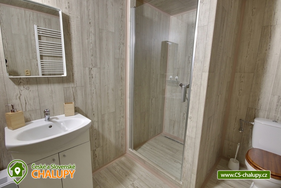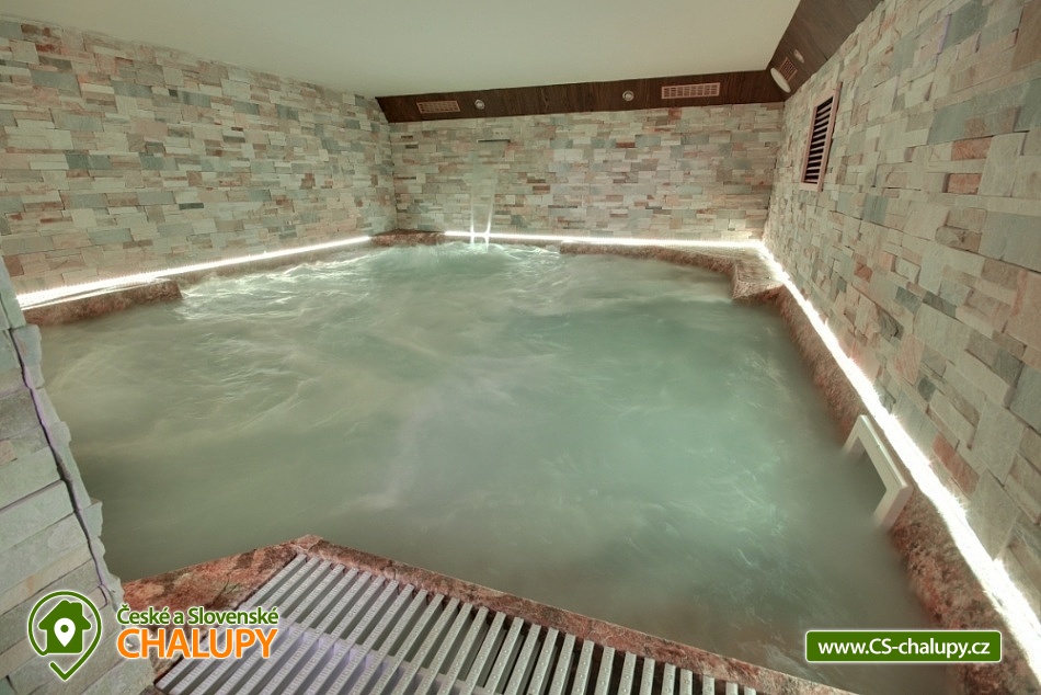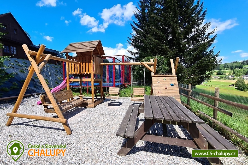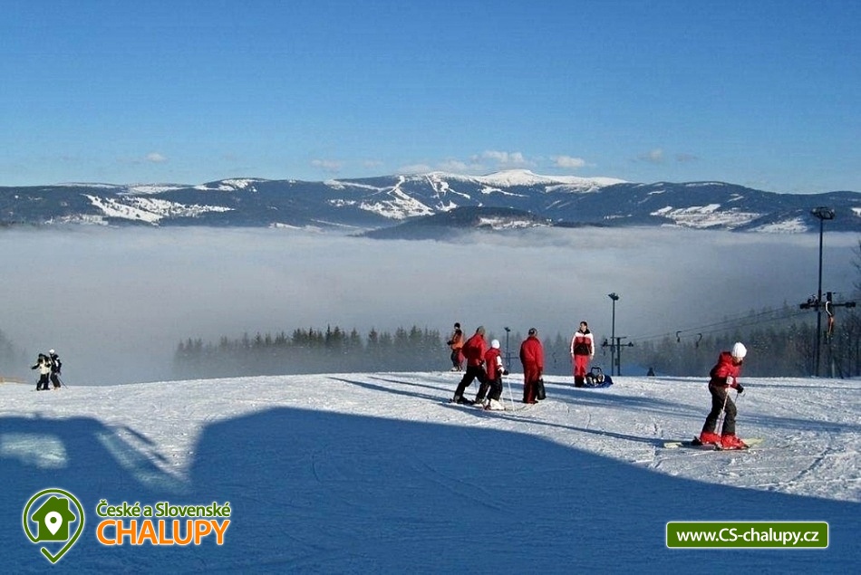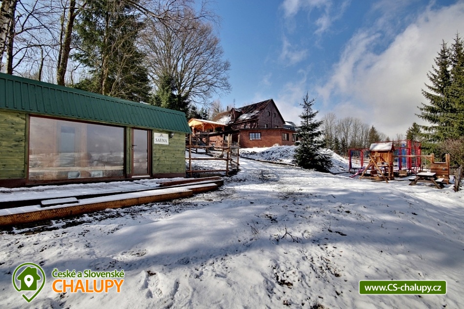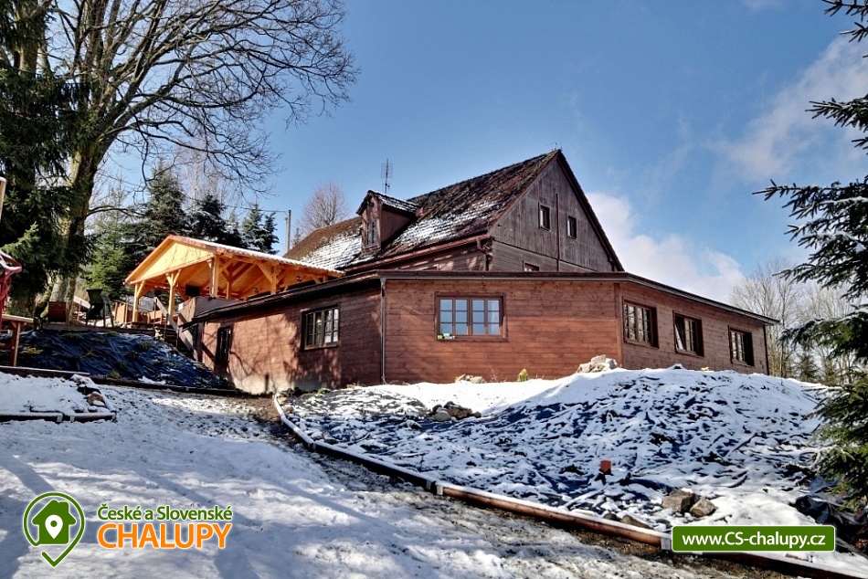 Chalupa Krkonoše s venkovním vířivým vyhřívaným koupacím sudem a saunou u obce Vysoké nad Jizerou a ski areálu Šachty - poloha na rozhraní Krkonoš a CHKO Jizerské hory. Kapacita objektu je až 33 lůžek v 9 ložnicích - V ceně ubytování je zahrnuta polopenze. Nabízíme ubytování v 1x 4-lůžkovém pokoji, 1x 4-lůžkovém apartmánu, 1x 6-lůžkovém apartmánu a ve 3- 5-lůžkových pokojích (všechny pokoje i apartmány jsou s možností přistýlek). Lyžování je propojené se SKI areálem Šachty Vysoké nad Jizerou. Parkování přímo u chalupy. K objektu vede udržovaná cesta, která je turistickou spojnicí mezi Sklenařicemi a obcí Vysoké nad Jizerou. Všechny naše pokoje jsou útulně nově zrekonstruovány a mají vlastní sociální zařízení. Hosté mají k dispozici televizi, satelit a wifi. Celý dům je nekuřácký. Kola, lyže, kočárek pro děti a další věci si návštěvníci mohou uložit do speciální uzamykatelné místnosti. V ceně ubytování jsou samozřejmě ručníky a ložní prádlo. Na chatě funguje po celý den Hospůdka nejen pro naše ubytované hosty. Snídaně podáváme formou švédských stolů od 08.00 do 09.30 hodin. Máte tak při ubytování s malými dětmi ideální čas pro dopolední výlety. Večeře servírované (polévka + hlavní jídlo). Čas podávání večeří je od 18.00 do 19.00 hodin. Poskytujeme prostory i pro firmy a firemní akce. Venkovní terasa s výhledem na sjezdovku je skvělou relaxací pro rodiče, kteří mají své děti při lyžování pod kontrolou. Dostupný je lyžařský areál v Pasekách nad Jizerou (3 km), Rokytnici nad Jizerou (10 km) nebo v Harrachově (18 km). Vedle domu vede populární běžecká trasa z Vysokého nad Jizerou na Štěpánku a zpět, popř. na Paseky, Zlatou Olešnici apod. Blízká lyžařská střediska: Šachty - Vysoké nad Jizerou, Metlák - Sklenařice, lyžařský vlek TJ Sokol Sklenařice, Kamenec - Jablonec nad Jizerou, Ski areál Paseky nad Jizerou, Zlatá Olešnice a Kořenov - Rejdice. Padesát metrů od vchodu domu končí lyžařský vlek, který nenarušuje klidný ráz krajiny a polosamoty (velmi vhodný pro děti nebo začátečníky). Na lyžích je možno dojet do skiareálu Šachty ve Vysokém nad Jizerou a zpátky přijet opět na lyžích až k domu. Těšíme se na Vás u nás.