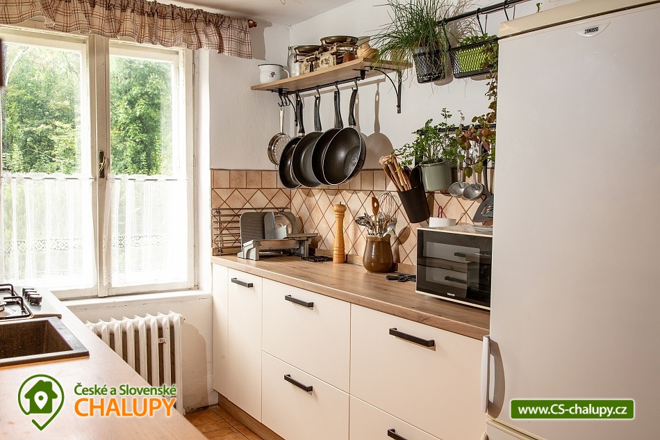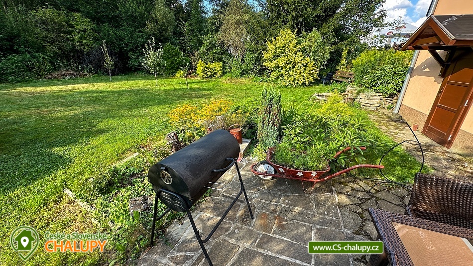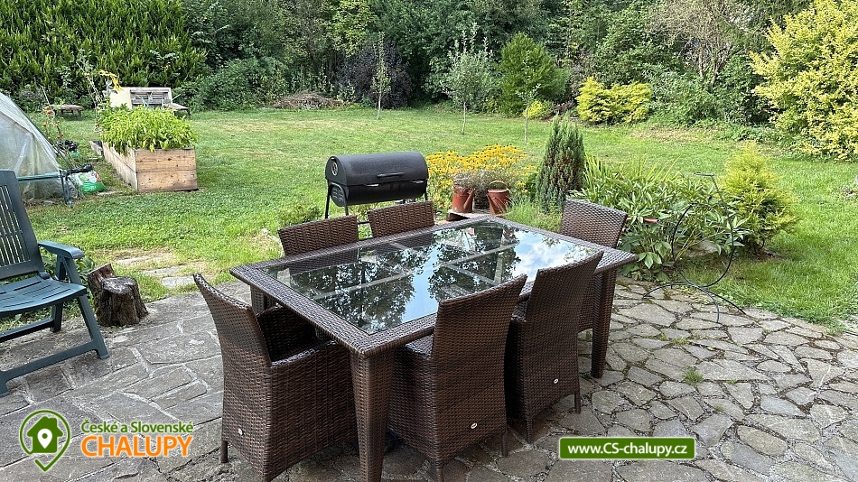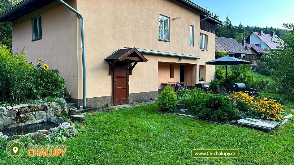 Chalupa na Valašsku u obce Velké Karlovice a říčky Vsetínská Bečva. Je to plně vybavená patrová dřevěnice s velkou oplocenou zahradou 1200 m2, přes kterou protéká potůček, který příjemně šumí. Chalupa poskytuje ubytování pro až 11 osob v 5-ti ložnicích. Jedná se o dva třílůžkové pokoje z nichž jeden má celkem tři jednolůžka (ideální pro děti a dorost) a druhý má jednolůžko a dvoulůžko. Tyto dva třílůžkové pokoje se nachází v přízemí. V patře se nachází dva dvoulůžkové pokoje a jeden jednolůžkový pokoj. K dispozici je plně vybavená kuchyň včetně myčky nádobí. Vytápění chalupy: Plynové ústřední vytápění (hradí se dle skutečné spotřeby) + možnost vytápění chalupy dřevem v krbu (dřevo je k dispozici zdarma). Dále wifi internet, vana, sprchový kout a pračka. Kolem chalupy je oplocená velká zahrada dále terasa, venkovní posezení, gril a ohniště. Na příjezdové cestě mohou parkovat 3 auta a za plotem je parkoviště pro další. Les je vzdálen 100 m, cyklostezka 50 m, lyžařský vlek 150m a známé koupaliště Na Stanoch (Balaton) přibližně 4 km od chalupy. Pokud máte rádi cyklistiku, turistiku nebo koupání je tohle místo přesně pro vás. V zimním období si na své přijdou lyžaři i běžkaři. Zhruba 150 m od chalupy je lyžařský vlek s hospůdkou, kde moc dobře vaří. V okolí doporučujeme: přírodní koupaliště Na Stanoch (Balaton), jezero Jezerné, vodní svět Velké Karlovice, termální bazén se slanou vodou v hotelu Horal, rozhledny Súkenická, Miloňová a Jurkovičova. Dřevěný kostel Panny Marie Sněžné ve Velkých Karlovicích, Karlovské muzeum, muzeum sklářství Karolinka, skanzen Rožnov pod Radhoštěm, kopec Soláň, zvonice Soláň, skiareál Karolinka Razula, Kyčerka a další... Valašská stezka Pustevny s procházkou až na Radhošť k soše Radegast, dětský park karlovských strašidýlek Razulák a Horský lanový park Tarzanie. Těšíme se na Vás u nás na chalupě!