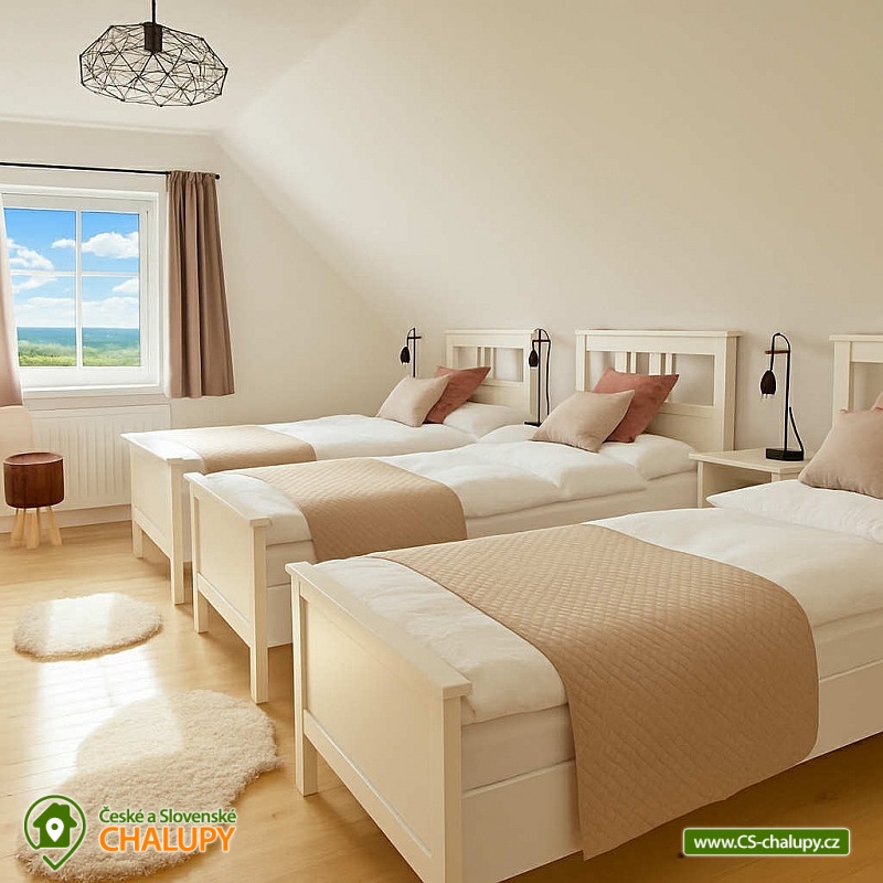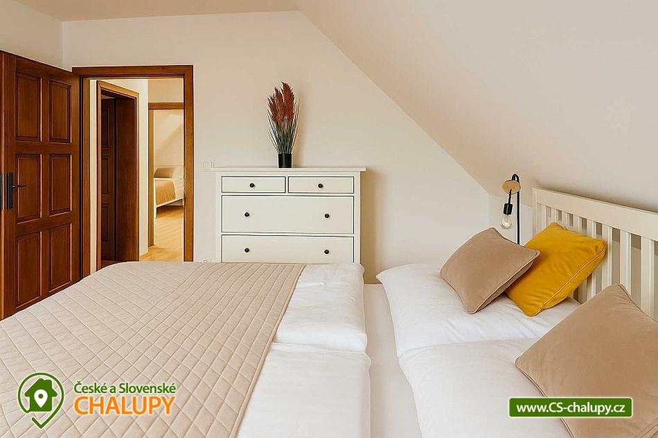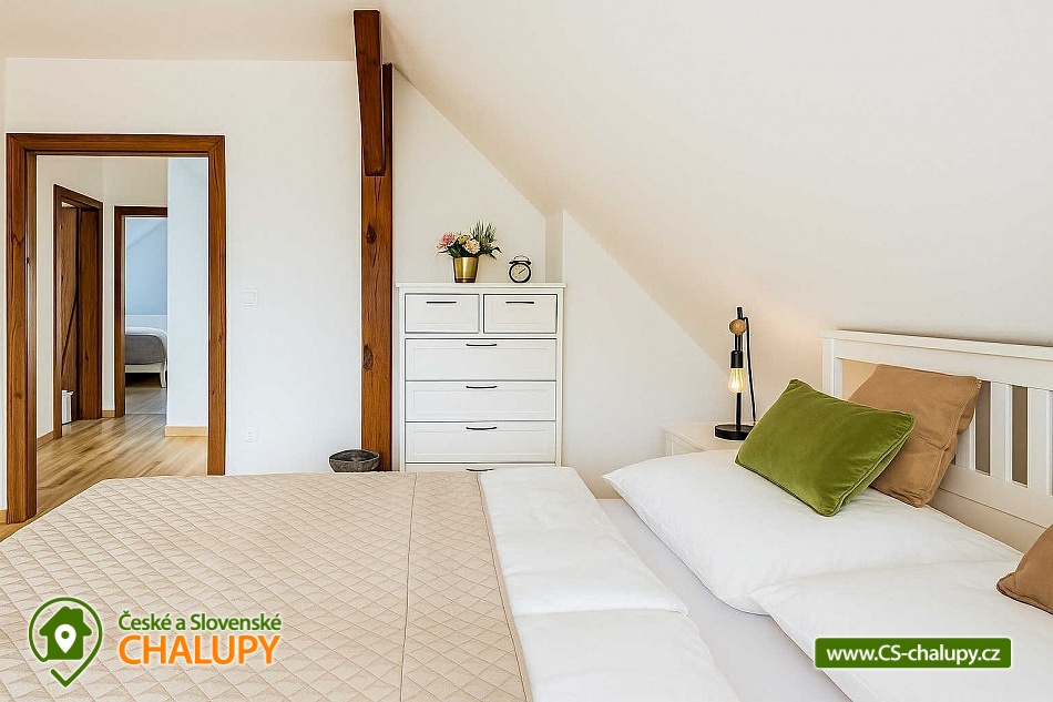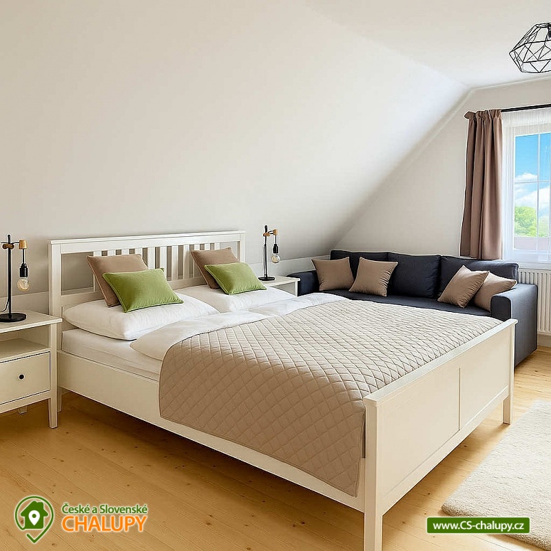 Chalupa v nádherné krajině Novohradských hor - stylově a komfortně zařízená chalupa ve Starých Hutích u Horní Stropnice. Chalupa představuje ověřený koncept pohodlného a stylového ubytování s kapacitou až 11 osob. Objekt je ideální pro rodinné pobyty nebo skupiny přátel, kteří hledají komfort, soukromí a kouzlo Novohradských hor. POPIS: V horním patře najdete čtyři prostorné ložnice, ideální pro pohodlné ubytování až 11 osob: Ložnice 1 - manželská postel velikosti king a přistýlka - rozkládací křeslo. Ložnice 2 - manželská postel velikosti king. Ložnice 3 - tři samostatná lůžka. Ložnice 4 - manželská postel velikosti king a přistýlka - gaučík. Všechny ložnice jsou zařízené kvalitním nábytkem, nechybí dostatek úložného prostoru ani dostatek denního světla. V patře je dále moderní koupelna s vanou a samostatná toaleta. Přízemí: V přízemí se nachází - vstupní zádveří, uzamykatelná garáž pro kola a lyže, prostorná obytná místnost, která spojuje plně vybavenou kuchyň, jídelnu a obývací část s pohodlným sezením a chytrou TV, další koupelna se sprchovým koutem a toaletou. Plně vybavená kuchyně s myčkou, troubou, lednicí a veškerým nádobím potěší každého, kdo rád vaří. V chalupě jsou vám tak k dispozici dvě stylové, moderní koupelny – jedna se sprchovým koutem, druhá s vanou. Součástí jsou dvě toalety, dostatek ručníků a základní toaletní potřeby. Vše je čisté, voňavé a připravené tak, abyste si pobyt užili v maximálním pohodlí. Vytápění - Moderní elektrokotel s podlahovým vytápěním v přízemí. Radiátory v ložnicích a koupelnách s možností individuální regulace teploty. Krb není k dispozici. V celé chalupě je Wi - Fi připojení. Venku je připravené posezení s grilem, udržovaný prostor pro odpočinek i hry a uzamykatelná garáž pro úschovu kol nebo lyží. Přímo u chalupy je dostatek parkovacích míst. Příjezdová cesta navazuje na místní komunikaci, je dobře sjízdná celoročně. Chalupa je ideálním výchozím bodem pro turistiku, cyklistiku i zimní sporty v krásném prostředí Novohradských hor. V okolí trasy pro pěší turistiku a cykloturistiku v létě a na běžky v zimě. Možnosti koupání v Mlýnském rybníku, Zlaté Ktiši a dalších přírodních koupalištích v okolí, vstup zdarma do plně vybaveného koupaliště s venkovním bazénem v Horní Stropnici. Lyžařské areály v dostupné vzdálenosti. Bohatá občanská vybavenost v blízkém okolí (obchody, restaurace, pošta, bankomat). Těšíme se na Vás u nás.