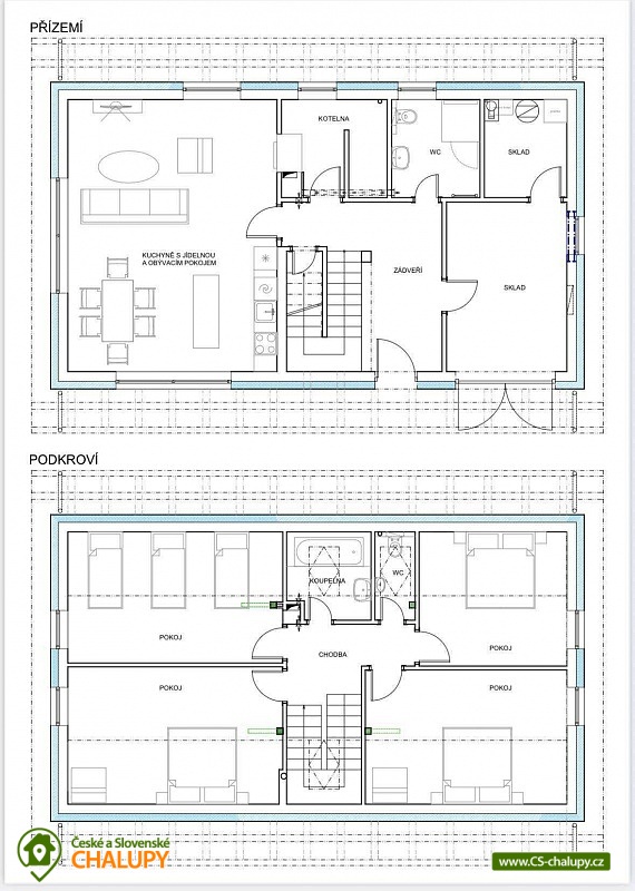 - 4 ložnice: 1x 3, 1x 2, 2x 2+1