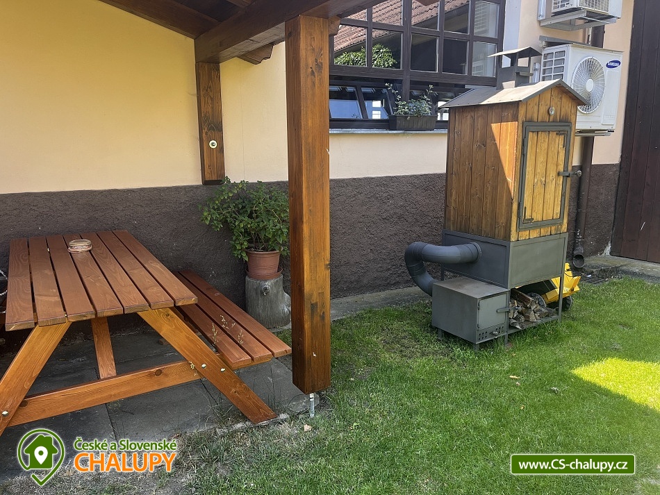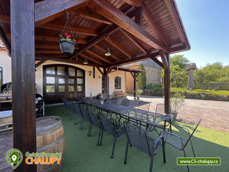 Chalupa Orlík nad Vltavou s bazénem a saunou se nachází v malebném prostředí u Orlické přehrady, ve vesničce Chrást v jižních Čechách. K dispozici je ubytování pro až 19 osob ve třech samostatně pronajímaných částech - v chalupě Stodola a nebo v druhém objektu, kde jsou umístěné dva apartmány Maštal a Chlívek. Rezervovat si lze objekty Stodola, Maštal i Chlívek samostatně. Ve dvoře, ze kterého je vstup do Maštale a Chlívka má dům majitel, který zde trvale bydlí. Těšit se můžete na saunu, zastřešený bazén se slanou vodou, víceúčelový kurt s umělým povrchem (tenis, basketbal a dětské hry) a přilehlou pergolu s krbem. POPIS: STODOLA (dům s terasou) má kapacitu pro 10 osob. V přízemí je k dispozici čtyřlůžková ložnice s výhledem do zahrady (1× dvoulůžko, 1× patrová postel a dětská postýlka) a v patře dvě třílůžkové ložnice (1× jednolůžko a 1× dvoulůžko). K příjemným chvílím slouží prostorná společenská místnost se sedacími soupravami, krbem a TV. K dispozici je plně vybavená kuchyň (2 lednice, mrazák, plynový sporák, trouba, mikrovlnka, překapávač na kávu, rychlovarná konvice a myčka). Součástí kuchyně je také posezení u barového pultu, jídelní stůl a výčepní zařízení na čepování sudového piva. Sud piva lze po domluvě zajistit. Sociální zařízení zahrnuje 2x koupelnu se sprchovým koutem a 3x WC. Z přízemí domu je plynulý přechod na nádhernou terasu s posezením a krásnými výhledy do přírody. V druhém domě - Maštal s Chlívkem jsou umístěné dva apartmány se soukromým vchodem. MAŠTAL (apartmán) má kapacitu pro 6 osob. K dispozici je dvoulůžková ložnice (1× dvoulůžko), třílůžková ložnice (1× jednolůžko a 1× dvoulůžko) a jedna přistýlka (rozkládací postel) v obývacím pokoji. Dále jsou součástí obývacího pokoje krásná krbová kamna s posezením, gauč, jídelní stůl a plně vybavená kuchyň (lednice s mrazákem, sporák, trouba, kávovar a myčka na nádobí). Na chodbě se nachází koupelna s vanou a WC. Součástí Maštale je také místnost, společná pro všechny hosty Válova dvora, kde je umístěn pingpongový stůl, sprchový kout s WC, pračka, sušička, mrazák a pracovní stůl ideální pro rybáře ke zpracování jejich úlovků. Venku je k dispozici zastřešená pergola s venkovním posezením. CHLÍVEK (apartmán) má kapacitu pro 3 osoby. K dispozici je jedna dvoulůžková ložnice (2x jednolůžko) a jedna přistýlka (pohovka). Do apartmánu vede vchod přímo do obývací místnosti, kde jsou umístěná krbová kamna, pohodlná sedací souprava (přistýlka) a komfortně vybavený kuchyňský kout (elektrický vařič, lednička s mrazákem a rychlovarná konvice). V podkroví, po schodech výše, se nachází ložnice, koupelna se sprchovým koutem a WC a sauna. Po domluvě lze saunu pronajmout všem hostům Válova dvora. U apartmánu je také zastřešená terasa s posezením. V celém objektu je k dispozici WIFI připojení na internet. Venku všichni ubytovaní ocení velkou travnatou zahradu s tenisovým kurtem, bazénem se slanou vodou a posuvným zastřešením, altánkem s krbem, ohništěm a houpačkami a pískovištěm pro děti. Po domluvě lze zapůjčit lodičky veslovací i motorové. Parkovat lze přímo u objektu. V okolí rekreačního areálu možnost turistiky, cykloturistiky, koupání, houbaření a rybaření. Mezi možnosti koupání patří vodní nádrž Orlík, koupaliště Zvíkovské Podhradí, koupaliště Milevsko, vodní nádrž Kamýk. K výletům v okolí láká Zámek Orlík, Žďákovský most, Akvárium Orlík, Zážitkový park Zeměráj a historická města Písek a Tábor. Těšíme se na Vás u nás.