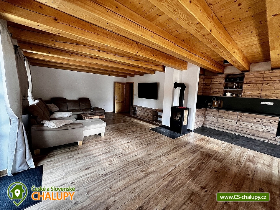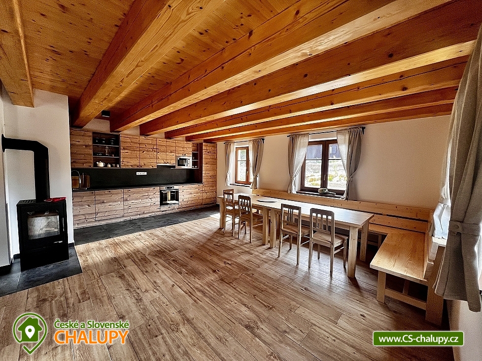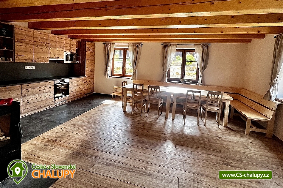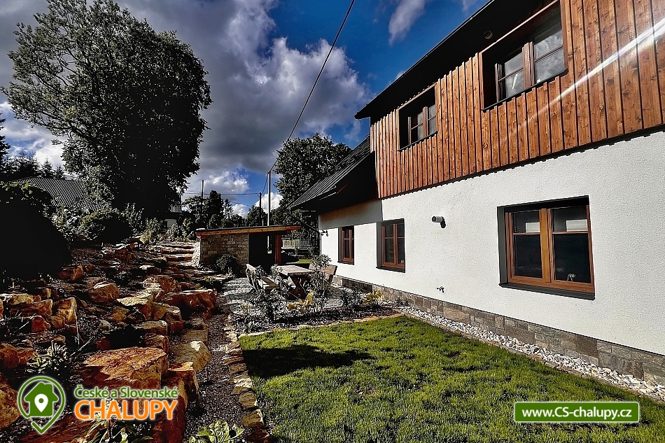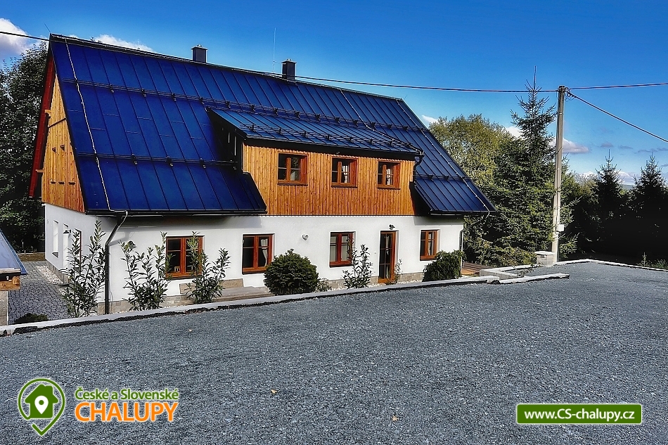 Chalupa se saunou v údolí Divoké Orlice - Komfortní ubytování v srdci hor pod vrchem Velká Deštná. Chalupa pro až 17 osob spojuje moderní komfort s tradiční horskou atmosférou a nabízí vše, co potřebujete k odpočinku i aktivnímu pobytu v přírodě. Pronajímá se jako celek, což zaručuje naprosté soukromí a klid. Celý objekt je nekuřácký. Chalupa nabízí pět prostorných ložnic a dvě koupelny se sprchovým koutem, další samostatné WC v přízemí. Předsíň, šatnu a lyžárnu s elektrickým vysoušečem bot. V přízemí se nachází velký obývací prostor propojený s jídelnou a plně vybavenou kuchyní. Dominantou místnosti jsou krbová kamna na dřevo, která navodí příjemnou atmosféru během zimních večerů – o dřevo se samozřejmě postaráme. Kuchyně je vybavena moderními spotřebiči i veškerým nádobím pro vaše kulinářské zážitky. Pračka se sušičkou, Wi-Fi zdarma, povlečení a ručníky v ceně. Provoz sauny včetně prostěradel a venkovního ochlazení. Terasa před domem nabízí posezení s výhledem do přírody, krytý přístřešek s grilem pak ideální prostor pro letní stolování i odpočinek na čerstvém vzduchu. U chalupy je zajištěno parkování. Součástí parkoviště je i zásuvka 220 V pro nabíjení elektromobilů. Součástí chalupy je: Úschovna kol s možností nabíjení elektrokol a Lyžárna vybavená stojany na lyže i lyžáky a radiátorovým vysoušečem obuvi. Okolí: nespočet možností pro turistiku, cyklistiku i odpočinek. Navštívit můžete - pevnost Hanička, rozhlednu na Anenském vrchu nebo Velkou Deštnou (1115 m) s vyhlídkou na celé Orlické hory. Cyklisti mohou využít Bikepark Deštné s tratěmi různých obtížností. Nejbližší místo ke koupání pak nabízí přehrada Pastviny. Orlické Záhoří je také ideálním místem pro všechny milovníky zimních sportů i klidné horské atmosféry. Nad chalupou se nachází menší sjezdovka Jadrná, vhodná pro děti a začátečníky. Jen 300 metrů od chalupy leží nový Skiareál Orlické Záhoří (SKIOZ) s nejdelší sjezdovkou v pohoří. Milovníci běžek si užijí 4,5 km dlouhý osvětlený okruh – nejdelší svého druhu v České republice. Lanovka ve skiareálu umožňuje snadné napojení na hlavní běžkařskou magistrálu po Jiráskově cestě, která vede po hřebenech Orlických hor. Těšíme se na Vás u nás.