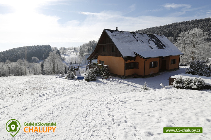 Jesenická horská chalupa nedaleko střediska Ostružná a Přírodní rezervace Šerálk-Keprník, obec Velké Vrbno. Svou polohou a vybavením je chalupa vhodná také pro rodiny s dětmi. Chalupa k pronajmutí poskytuje ubytování pro až 16 osob v 5 ložnicích. Ložnice a pokoje: Horní mezonetový apartmán - 2x 3 - lůžk. pokoj, 1x 2 - lůžk. pokoj, 2 lůžka v podkroví, 2 koupelny a jídelna s obývacím pokojem a kuchyní. Přízemní apartmány - 2x 4lůžkový - každý má svůj vchod, lyžárnu, kuchyň s obývací částí a lodžii, koupelnu. Apartmány nejsou průchozí. Sociální zařízení: 4x koupelna se sprchovým koutem a WC. Vytápění: Horní apartmán - elektrokotel + krbová kamna. Nově zrekonstruované spodní 4lůžkové apartmány - topení v podlaze. Parkování u objektu i v zimě - 5 parkovacích míst. Vybavení chalupy: V objektu dva 4 - lůžkové apartmány s přistýlkou v přízemí domu, kompletně zařízené s kuchyní, WC, sprchou, lyžárnou se samostatným vchodem. V 1.patře k dispozici mezonetový apartmán, 2x koupelna s WC, plně vybavená kuchyň(myčka, el. sporák s troubou, mikrovlnná trouba), obývák s krbovými kamny, jídelna, terasa a 3 pokoje (3+3+2)s 2 přistýlkami v podkroví apartmánu. U objektu možno využít zahradní altán s grilem a posezením, v létě dohřívaný bazén, dětské hřiště, zahradní kuželky, zatravněná plocha, u každého apartmánu venkovní posezení. V objektu možno zdarma využívat Wi - fi připojení. V okolí: 100 m od chalupy se nachází dvousedačková lanovka na chatu Paprsek (délka 1000 m). Sjezdovky jsou uměle zasněžovány, pravidelně upravovány, v areálu se nachází jeden z největších snowparků v ČR. V okolí chalupy jsou strojově upravené běžecké tratě. V létě cyklotrasy, horská turistika, houbaření, borůvky. Možnosti koupání: Hynčice pod Sušinou - rybník Úžas, lom Žulová - Brankopy, bazén Jeseník - Priessnitz, koupaliště Jeseník, bazén Domašov - Bělá pod Pradědem a termální koupaliště Velké Losiny.