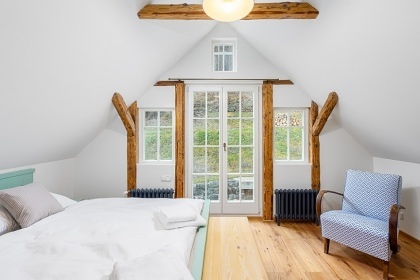 Chalupa Sklářská se nachází v samém srdci Jizerských hor necelých 5 km pod vyhledávanou Protrženou přehradou v obci Desná. Chalupa je po kompletní rekonstrukci s důrazem na zachování původních prvků a je vybavena moderními technologiemi. Chalupu nově doplňuje i prosklená wellness zóna s finskou saunou a odpočívárnou, kde si můžete dopřát i masáž. Dominantou chalupy je funkční kachlový sporák s troubou, původní dřevěné stropy a nadstandardní vybavení. Chalupa o dvou podlažích pohodlně pojme 11 osob (po domluvě lze kapacitu navýšit až na 14) ve 4 prostorných dvoj až čtyřlůžkových ložnicích a nabízí 3 WC, 2 koupelny, šatnu a vyhřívanou lyžárnu/kolárnu. V přízemí se nachází útulná sednice s pohovkou, kachlovým sporákem a kuchyní. Přízemí nabízí ložnici pro 3-4 osoby. V patře najdete 3 prostorné ložnice: 2 ložnice tří až čtyřlůžkové, 1 dvoulůžkovou. Každá ložnice nabízí manželskou postel. Ložnice pro 3-4 osoby jsou vybaveny 120 cm širokou postelí, na které se komfortně vyspí i dvě děti, případně lze využít jako pohovku. V patře se dále nachází dětský koutek s deskovými hrami a hračkami a čítárna vybavená restaurovanými křesly od Jindřicha Halabaly. Přízemí i patro disponuje prostornou stylovou koupelnou s WC, v přízemí je navíc i samostatné třetí WC. Koupelny jsou obloženy krásnými obklady a nabízí velkorysé sprchové kouty. Samozřejmostí jsou fény na vlasy. Přízemí chalupy (sednice, pokoj, WC, koupelna a šatna) je vytápěno podlahovým topením pro Váš maximální komfort. V sednici se můžete ohřívat příjemným sálavým teplem z kachlového sporáku. V patře jsou instalovány stylové litinové radiátory s termohlavicemi. Patro i přízemí lze ovládat termostaty dle Vaší potřeby. V chalupě je k dispozici plně a nadstandardně vybavená kuchyň včetně kontaktního grilu, vaflovače, lednice s mrazákem, myčkou, horkovzdušnou troubou, elektrickou varnou deskou, rychlovarnou konvicí, mikrovlnkou, tyčovým mixérem a v neposlední řadě i kvalitním kávovarem na zrnkovou kávu. V chalupě nenajdete TV, nabízíme však kvalitní pokrytí rychlou Wi-Fi, zajímavé knížky, stolní hry, puzzle a krásnou přírodu hned za domem. Chalupa je vybavena hlásiči požáru a dýmu. Chalupa i lyžárna s kolárnou jsou chráněny zabezpečovacím zařízením napojeným na pult centrální ochrany. Parkoviště je monitorováno kamerovým systémem. Vedle chalupy je Vám k dispozici uzamykatelná vyhřívaná lyžárna a kolárna s dostatkem zásuvek pro nabíjení elektrokol či servis lyží. Chalupa je strategicky umístěna přímo na turistické trase vedoucí na Mariánské schody v Albrechticích, necelé 2 km od nástupního místa na běžky a necelé 4 km od oblíbeného zimního i letního střediska Tanvaldský Špičák. Za domem je k dispozici vlastní les, 50 m od domu najdete průzračnou říčku Bílá Desná. Zajímavostí jsou i 4 rozhledny v docházkové vzdálenosti od chalupy. Parkoviště přímo u chalupy pojme až 5 aut v létě i zimě a pro majitele elektromobilů nabízí nabíječku o výkonu 11 kW. Parkoviště je přístupné přímo ze silnice, která je celoročně udržovaná. V letních měsících můžete využít luxusní gril WEBER a pohodlné sezení na dvoře za domem. Ohniště pro milovníky opékání špekáčků se nachází na zahradě u lesa. V obci Desná je místní samoobsluha s regionálními potravinami (2 km), v 5 km vzdáleném Tanvaldu lze nakoupit v Lidlu, Bille a Penny. V okruhu 10 km je řada řemeslných pekáren a bio farem, které rádi osobně doporučíme. Nakoupené potraviny můžete, mimo jiné, skladovat v žulovém sklepě, kde si udrží tu správnou teplotu po celý Váš pobyt. Pro větší skupiny je navíc možnost pronájmu stylového mezonetového apartmánu pro 2 osoby. Apartmán s chalupou přímo sousedí a má vlastní oddělený vchod. Apartmán je plně vybaven a mimo jiné nabízí masivní postel ze starých trámů či stylovou koupelnu s kamennými a měděnými prvky.
