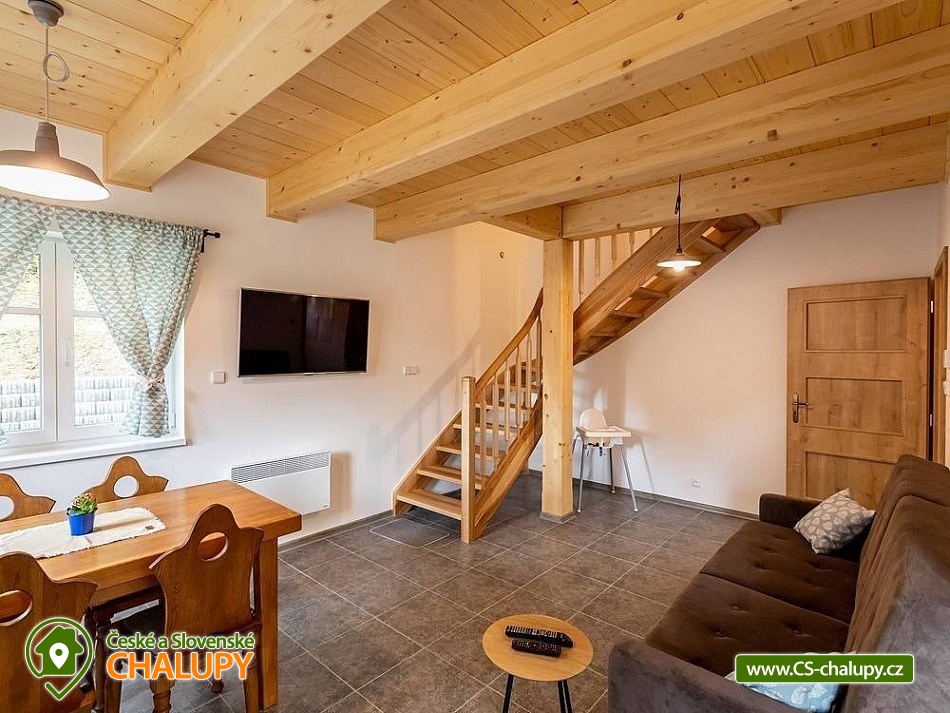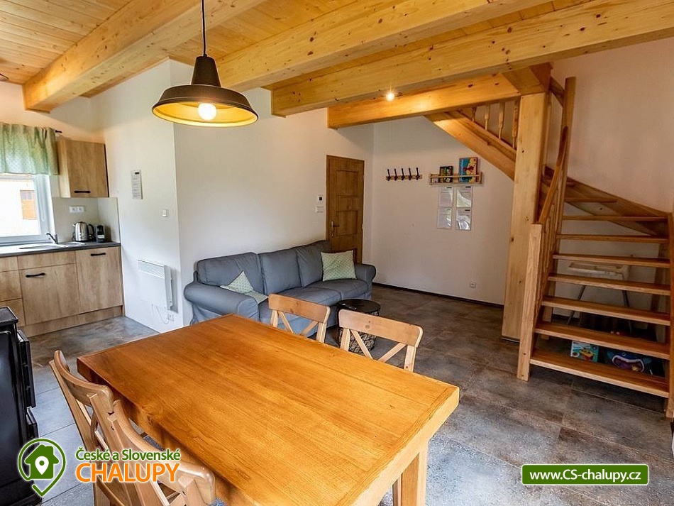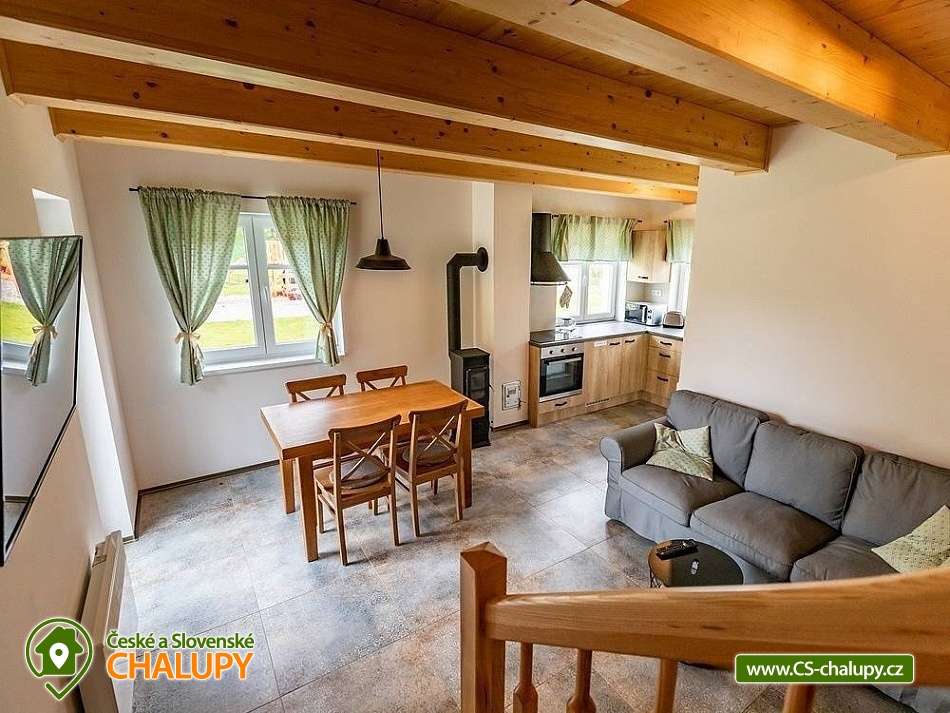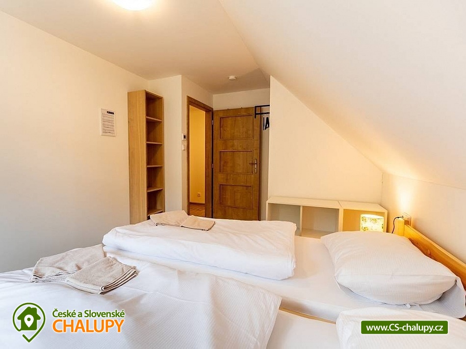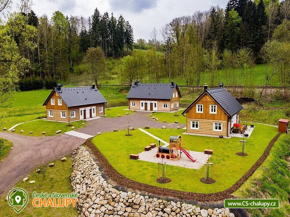 Chalupy Adršpašsko Teplické skály se nachází u skalního města s nádherným jezerem, pískovnou s průzračně čistou vodou a vyjížďkou na lodičkách - CHKO Broumovsko. Chalupy nabízí ubytování pro až 15 osob ve 3 samostatných apartmánech, každý s rozložením 4 lůžka a 1 přistýlka. V první a druhé chalupě najdete dvě samostatné ložnice: dvoulůžkovou ložnici (1x manželská postel) a třílůžkovou ložnici (2x jednolůžko, 1x přistýlka formou vysouvacího lůžka). Ve třetí chalupě je k dispozici jedna pětilůžková ložnice (1x manželská postel, 2x jednolůžko a 1x přistýlka formou vysouvacího lůžka). Možné je i zapůjčení dětské postýlky a židličky. Dále se v každé chalupě nachází obývací pokoj s TV se satelitem, společenskými hry, pohovkou a krbem. K dispozici je také plně vybavený kuchyňský kout (indukční varná deska, elektrická trouba, myčka nádobí, mikrovlnná trouba, lednice s mrazákem, kávovar, topinkovač, rychlovarná konvice a nádobí). Sociální zařízení v každé bytové jednotce zahrnuje koupelnu se sprchovým koutem a toaletou, doplněné o samostatnou toaletu. Vytápění jednotlivých chalup je řešeno elektrickým topením a krby. V objektech možnost zdarma WI-FI připojení na internet. Chalupy obklopuje zahrada s možností parkování přímo u objektů (max. 6 aut). Součástí zahrady je terasa s venkovním posezením, gril a ohniště. Děti jistě ocení hřiště s pískovištěm, houpačkou, prolézačkami a skluzavkou. V okolí objektu možnost turistiky, cykloturistiky, koupání, lyžování, běžkování, rybaření či houbaření. Mezi možnosti koupání patří např.: koupaliště Teplice nad Metují, koupaliště Petříkovice, jezero Kuprovka, rybník Buchťák nebo koupaliště Malé Svatoňovice. V zimě jsou výhodou blízká lyžařská střediska např.: Skiareál Kamenec - Teplice nad Metují, Skiareál Radvanice a Skiareál Petříkovice. K výletům v okolí láká: Adršpašsko-teplické skály, Hrad a zámek Adršpach, Křížový vrch, Rozhledna Čáp nebo Muzeum bratří Čapků. Těšíme se na Vás u nás.