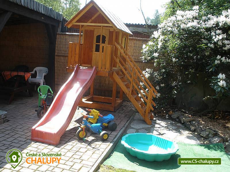 Pronájem chaty Hostice - Pustá - ubytování s bazénem a infra-saunou Ruda nad Moravou. Pokud se rozhodnete navštívit místo v malebné vesničce Hostice - Pusta, měli by jste očekávat chatu, která je nově rekonstruovaná, kvalitně vybavená, na klidném místě obklopená přírodou a lesy, v zimě v blízkosti vleků a parkováním přímo u chalupy. Chata je vybavená i pro pobyt rodin s dětmi. V objektu jsou celkem 4 ložnice: v podkroví 2 x 4 lůžka, v přízemí 1 x 3 lůžka - bezbarierová včetně umyvadlové skříňky a v přízemí dále 1 x 3 lůžka + sprchový kout + WC. Součet lůžek neznamená kapacitu, je to možnost využít ložnic podle svých požadavků. Sociální zařízení: 1.Koupelna se sprchovým koutem + WC+ pračka - bezbarierový. 2. koupelna se sprchovým koutem + WC. 3. umyvadlová skříňka v přízemní ložnici (tepla i studená voda). 4. samostatné WC + umyvadlo v podkroví. Vytápění je elektrické - akumulační kamna - levná sazba za elektřinu. Krb v obýváku s rozvodem do všech ložnic a koupelny - pro dotápění. V objektu je myčka nádobí, pračka, 4 plotýnkový elektrický sporák s pečící el. troubou, mikrovlnka, varná konvice, lednička, televize 2 x, krbová kamna, dětská jídelní sedačka, dětská postýlka, dětský hrací koutek. Chata Vás přivítá na konci obce s minimálním provozem a pohybem dalších osob, v lyžařské oblasti a krásném prostředí Hrubého Jeseníku v nad. výšce 500 m. Oplocená zahrada za chatou je úžasným místem s absolutním soukromím, výhledem do lesa a zeleně, kterou oceníte k pohodovému odpočinku a díky vybavení zahrady i případnému rekreačnímu pohybu. Zahradu lemuje horský potůček, jehož vstup je opatřen brankou pro bezpečný pohyb dětí. Ze zahrady je brankou vstup přímo do lesnatého porostu a cestiček, které jsou protkány okolní lesy. Díky tomu, že chata stojí v přímé blízkosti lesa, zahrada je situovaná mimo komunikaci. Naučná poznávací a zážitková lesní cesta je 500 m od chaty. Nejvíce využívaným venkovním místem, nejen v chladnějších letních večerech je krytá pergola s krbem, kde Vás nepřekvapí nepřízeň počasí. Pergola je opatřena elektřinou. V zimním období určitě rádi využijete možnost bez problémového přístupu a parkování přímo před chatou pro Vaše 3 - 4 auta. Nejenom v zimním období Vám bude k dispozici možnost využít tepelných a léčebných účinků INFRA SAUNY. Kousek od chaty jsou 2 lyžařská střediska se sjezdovkou 600 m vhodné jak pro malé děti tak pro zkušenější lyžaře, umělé zasněžování, rolba. Prostorný bufet pro posezení, občerstvení s výhledem na sjezdovku a se sociálním zařízením. Ceny za lyžování Vás určitě mile překvapí a přispějí k Vaší pohodové dovolené. CHKO Jeseníky - Jelení skok, Přírodní park Černá stráň - Vozka, Přírodní park Sněžná kotlina, Přírodní park Vysoký vodopád, Černé kameny, Havraní vrch. Hrady a zámky: Velké Losiny, Bouzov, Sovinec, Úsov, Kobrštejn, Kolštejn, Vodní tvrz Jeseník, Loučná nad Desnou, Bludov, Jánský vrch v Javorníku.