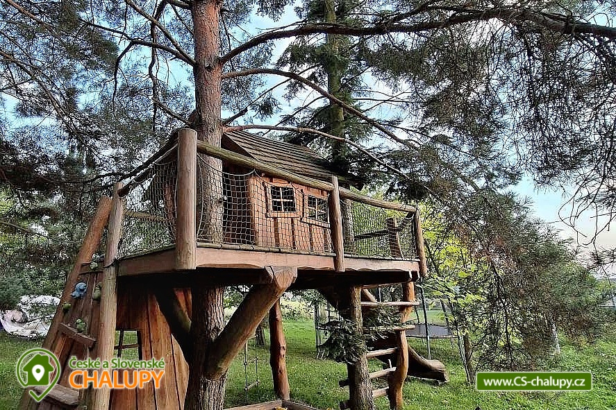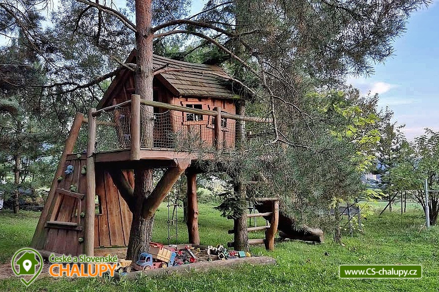 Chata na samotě s bazénem a hřištěm s umělým povrchem - Hostýnské vrchy. Chata se nachází na klidném místě obklopeném přírodou - najdete zde místo pro nerušenou zábavu a odpočinek a zároveň se rychle dostanete do centra města, které je vstupní branou do Hostýnských vrchů. V těsné blízkosti chaty se nachází les a rybník. U chaty je pro klienty po dohodě k dispozici soukromé hřiště s kvalitní umělou trávou a osvětlením. Dále je u objektu domeček pro děti ve větvích stromů, kryté posezení s ozvučením a udírna. V přízemí chaty najdete 2x vybavenou kuchyň, obývací prostor a 2x koupelnu se sprchovým koutem. V patře se nachází celkem 3 ložnice: 3-lůžková ložnice s dětskou postýlkou (dvoulůžko a samostatné lůžko), 6-lůžková ložnice (2 samostatné postele a 2x patrová postel, pod kterou je spaní na matraci na zemi) a 4-lůžková ložnice (4 samostatná lůžka). V objektu je možnost celkem 4 přistýlek, které jsou libovolně umístitelné a řešené spaním na matraci na zemi. U chaty je prostorné parkování střežené bezpečnostními kamerami a místnost pro uložení sportovního vybavení. U chaty je dětské pískoviště s hračkami pod domečkem, trampolína a velká houpačka mezi stromy. V blízkosti je městské koupaliště, minigolf, tenisové hřiště, squash a bowling Bystřice pod Hostýnem. V krásné přírodě Hostýnských vrchů je možný sběr lesních plodů. Možno navštívit solárně vyhřívané koupaliště s tobogánem na Rusavě. Nejbližší lyžařské centrum Ski areál Troják doplňují služby jako půjčovna lyžařského a snowboardového vybavení, lyžařská a snowboardová škola, půjčovna dětských sněžných skútrů, skútr taxi, umělé zasněžování, noční lyžování. Výlety do okolí: Kroměříž (zámek, květná zahrada), Lešná (ZOO), Rožnov pod Radhoštěm (skanzeny), Teplice nad Bečvou (jeskyně, propast). Možnosti koupání: přehrada Rusava, vodní nádrž Fryšták, vodní nádrž Všemina, koupaliště Bystřice pod Hostýnem, koupaliště Osíčko, koupaliště Rusava, bazén Holešov - Sport centrum, koupaliště Domaželice, koupaliště Mikulůvka, koupaliště Kostelec Lázně, koupaliště Jadran, koupaliště Lipník nad Bečvou, Zlín - Zboženské rybníky, Hvozdná - Rybník Argalaška, koupaliště Hulín. Blízká lyžařská střediska: Rusava, Ski areál Tesák, Troják.