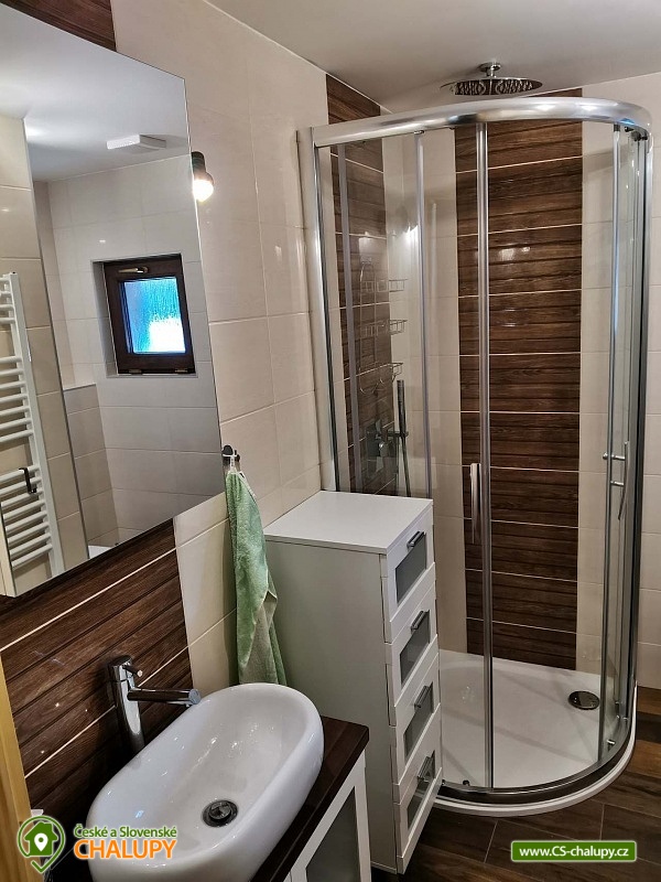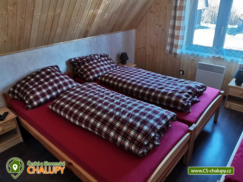Chata s venkovním bazénem a terasou u Přírodní rezervace Rejvíz, Zlaté Hory u hranic s Polskem a nedaleko města Jeseník. Nabízí ubytování pro až 8 osob ve třech ložnicích - 1x třílůžková (dvoulůžko a jednolůžko), 1x dvoulůžková (dvě jednolůžka) a 1x třílůžková (tři jednolůžka). V každé ložnici najdete TV. K dispozici je obývací místnost se dvěma pohovkami, TV, krbovými kamny, jídelním stolem a plně vybavený kuchyňský kout (nádobí, lednice, mrazák, rychlovarná konvice, mikrovlnná trouba, varná deska, el. trouba, toustovač, myčka a kávovar). Sociální zařízení zahrnuje koupelnu s umyvadlem, sprchovým koutem, WC a jedno samostatné WC. Chata je pokryta Wi-Fi připojením. Objekt je vytápěn elektřinou a krbovými kamny. V koupelně, chodbě a WC je podlahové topení. Parkování možné u objektu pro 2 auta. U chaty je zastřešená terasa s posezením a grilem. Na zahradě je k dispozici bazén, ohniště a zahradní domek pro úschovu kol nebo lyžařského vybavení. V okolí chaty se můžete věnovat turistice, cykloturistice, houbaření, lyžování. V blízkosti je tenisový kurt a fotbalové hřiště. Tipy na výlety: městské muzeum Zlaté Hory, rozhledna Biskupská kupa, zřícenina hradu Koberštejn, Rašeliniště na Rejvízu, jeskyně na Špičáku, Adrenalin park Jeseníky, Zlatokopecký skanzen. Možnosti koupání: Zlaté Jezero, bazén Česká Ves, koupaliště Jeseník, koupaliště Prudnik, Vrbno pod Pradědem - rybníky, bazén Jeseník - Priessnitz. V zimě blízká lyžařská střediska: Příčná - Zlaté Hory, Dolní údolí - U Pekina. Na Rejvízu je výchoziště lyžařských stop. Těšíme se na Vás u nás.