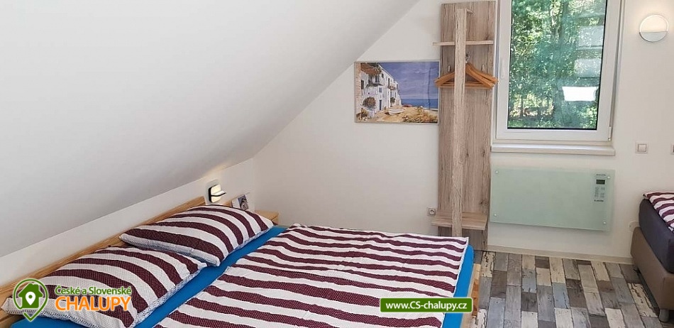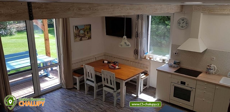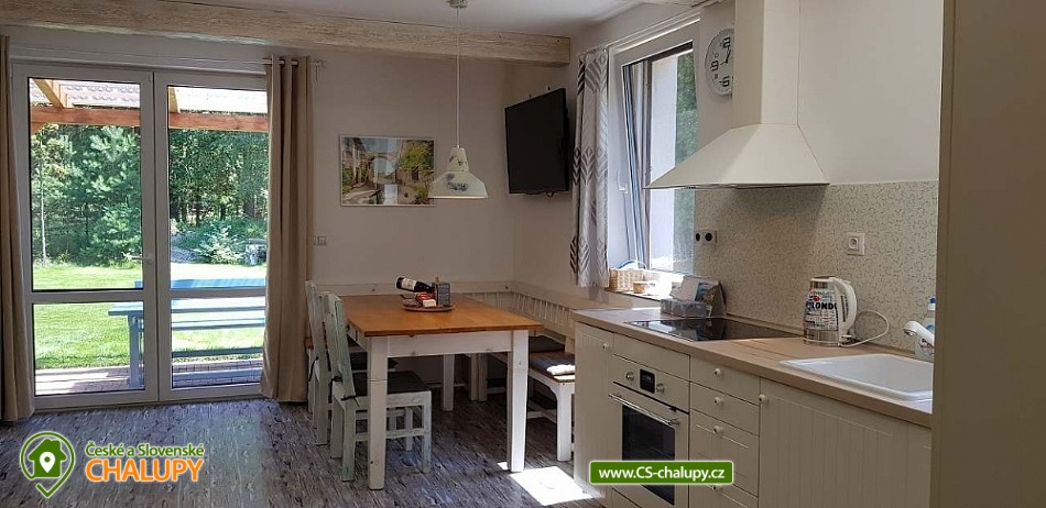 Chata u lesa a Vlkovských pískoven (perfektní koupání) v obci Vlkov nad Lužnicí - CHKO Třeboňsko. Chata k pronájmu poskytuje ubytování pro až 8 osob ve 2 ložnicích. Nabízíme pronájem komfortní chaty - venkovského domu, objekt sousedí s lesem, nabízí soukromí a klid pro dovolenou včetně bezvadného přístupu na nejbližší síť cyklostezek. V přízemí domu je chodba a koupelnu se sprchovým koutem, dále samostatné WC. Obývací místnost s kuchyňským koutem, rohovou sedací soupravou a rohovým jídelním stolem, velká TV na stěně. Krb pro vytápění nebo večerní romantiku. Po dřevěných schodech přejdete do patra, kde je samostatné WC a 2 oddělené pokoje. Oba pokoje mají manželskou postel 180x200cm a 2x samostatné lůžko 90x200cm. V prvním pokoji (24m2) možno využít 1x přistýlku (rozkládací matrace). Dům je vybaven ve venkovském stylu, pohodlný a vonící novotou. Druhý pokoj má podlahovou plochu 17m2. Postele jsou nové se zdravotními matracemi. Na zahradě je krytá terasa pro příjemné večerní posezení včetně zahradního nábytku. Možnost úschovy kol v zahradním domku, vč. základního vybavení na servis kola - kompresor, duše, nářadí na lepení atd. Vlkov je ideální místo pro pohodovou cykloturistiku, perfektní koupání ve Vlkovských pískovnách a večerní relax v hospůdce na břehu rybníka. Chata je vhodná pro větší rodinu, do 8-mi osob, na své si přijdou rodiče s dětmi, případně pro klid je vyhledáván i skupinou přátel, kteří hledají odpočinek v blízkosti lesa a pískoven. Vlkov nad Lužnicí se nachází v rekreační oblasti Třeboňska. V obci naleznete 2 vyhlášené hospody, zastávku vlaku na trase Veselí nad Lužnicí - České Velenice a prodejnu zmrzliny. V blízkosti je možné rybaření na řece Lužnice, Nežárce, nebo ve Veselských pískovnách. Cyklostezky na trase Tábor - Třeboň, případně lze kombinovat s vlakem a trasu si prodloužit na Jindřichohradecko.