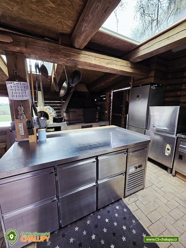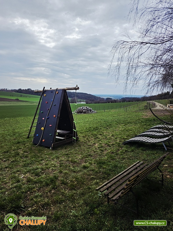 Chata Vysočina - ubytování Ruda s bazénem a vyhřívaným koupacím sudem. Chata se nachází na odlehlém klidném místě u lesa v soukromí. Okolí nabízí možnost procházek lesem či houbaření a skutečně nádherný výhled do krajiny s rybníky nebo na západ slunce. Chata má 5 pokojů, celkem 13 lůžek a možnost přistýlky. V chatě se nachází 3x ložnice s manželskou postelí, 1x ložnice s 1 manželskou postelí a 2 standardní postele, 1x ložnice s 1 manželskou postelí a 1 standardní postel, dále rozkládací gauč a 1 lůžko u krbu. K dispozici jsou dvě dětské postýlky včetně peřinek. Obývací pokoj s vnitřním uzavřeným krbem a kulečníkem, TV, rozkládací sedačka, dětský koutek se spoustou hraček a společenských her je propojený s vybavenou kuchyní ve které opravdu nic nechybí. V objektu je internet Wi-fi. V přízemí se nachází samostatné WC a dále koupelna, kde je sprchový kout, vana, pračka, sušička, umyvadlo a bojler 200 l. V patře je další samostatné WC s umyvadlem. Chata je vytápěná krbem a elektrickým podlahovým vytápěním. Venkovní sezení pod pergolou nabízí možnost přitopení ohřívací lampou. Dále je zde venkovní kuchyň včetně teplé a studené vody, dvou lednic s mrazákem, venkovní gril a udírna. Můžete si zde také zahrát šipky, ping-pong. Vyžití pro děti např. dětský domeček, pískoviště, skluzavky, houpačky, houpací sítě, trampolína, dětská lanovka, odrážedla, kuželky a mnoho dalšího. Celoročně možnost využití vyhřívaného koupacího sudu či sauny a v letním období vyhřívaný bazén. K dispozici je také útulný sklípek pro příjemné posezení s přáteli včetně možnosti zakoupení lahvového vína nebo malého či velkého sudu piva (výčep ve sklípku s biogonem za poplatek). Vybavená kuchyně zahrnuje veškeré nádobí, dřez s teplou vodou (voda pitná), myčku na nádobí, indukční desku, horkovzdušnou troubu, lednička s mrazákem, mikrovlnná trouba, rychlovarná konvice, topinkovač, touastovač. Parkování je možné přímo u chaty, silnice i v zimě sjízdná pro auta 4×4. Tipy na výlety na Vysočině: zámek Velké Meziříčí 9 km, zámek Třebíč 30 km, Westernové městečko Šiklův mlýn 31 km, restaurace s vlastním pivovarem Jelínkova vila ve Velkém Meziříčí. Značené cyklostezky na Vysočině, turistika a oblíbené houbaření.