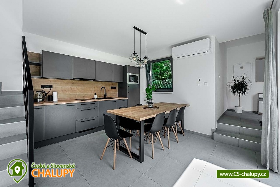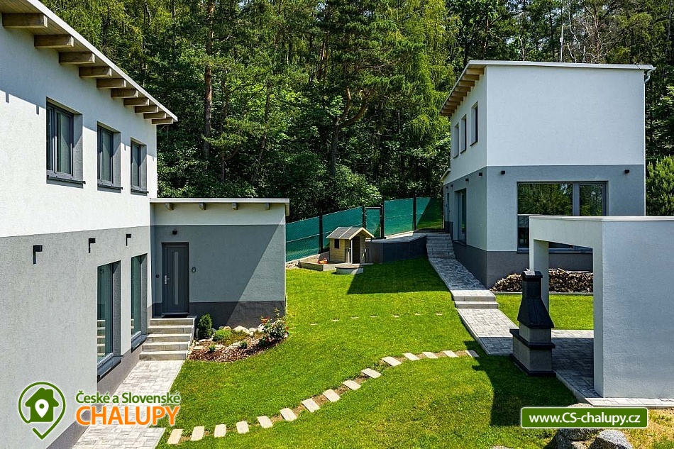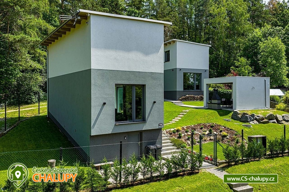 Dvě chaty Fajtův kopec (8 + 8 osob) se nachází téměř na samotě u lesa a nedaleko střediska Fajtův Kopec. Jedná se o dvě samostatně pronajímané a stejně zařízené chaty stojící vedle sebe na jednom pozemku. Chaty nabízí ubytování celkem pro až 16 osob ve 2 osmilůžkových chatách. V každé chatě je k dispozici 1x čtyřlůžková ložnice (2x dvoulůžko - 200x160 cm), 1x dvoulůžková ložnice (1x dvoulůžko - 200x160 cm) a 2x přistýlka řešená prostornou rozkládací pohovkou ve společenské místnosti. V přízemí ve společenské místnosti je dále k dispozici TV, jídelní stůl a plně vybavená kuchyň (rychlovarná konvice, varná deska, mikrovlnná trouba, lednička, kávovar a myčka nádobí). Pro hosty jsou zajištěny ručníky a ložní prádlo. Sociální zařízení zahrnuje koupelnu se sprchovým koutem a WC. Vytápění je řešeno klimatizací. V celém objektu je k dispozici WIFI připojení na internet. Chaty obklopuje travnatá zahrada. Všichni ubytovaní mohou posedět na zastřešené terase. K dispozici je gril a ohniště. Parkovat lze přímo u objektu. V okolí chat možnost turistiky, cykloturistiky, koupání, houbaření, lyžování a běžkování. V blízkosti jsou tenisové kurty, bowling a wellness. Mezi možnosti koupání patří např.: koupaliště Palouky, rybník Herádka Rudíkov, Nárameč - Rybníky, koupaliště Šiklův Mlýn, rybník Rathan, Pokojov - Rybník Rendlíček, lom Dolní Rožínka, atd. V těsné blízkosti lze navštívit Zámek Velké Meziříčí, Rozhlednu Fajtův kopec s krásnými výhledy do okolí či městské středověké opevnění s dolní bránou a baštou. K dalším výletům v okolí láká Balinské údolí, Zámek Budišov, Dědkovská hora, Strašidelný zámek Draxmoor nebo historické centrum města Třebíč. Těšíme se na Vás u nás.