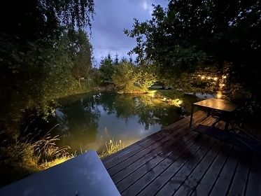 Luxusně vybavená Glamping Chata Smrkovka se nachází v obci Ondřejov v blízkosti krásné přírody řeky Sázavy a nedaleko Prahy. Chata je umístěná v bývalém, postupně rekonstruovaném, komerčním areálu, ze kterého vzniká dokonalá přírodní oáza - Kus klidu. Celý areál o výměře cca 1 ha je oplocený a zahrnuje dvě uměle vytvořená jezírka, mnoho vzrostlých stromů, zázemí pro společenské události a spoustu místa pro venkovní aktivity. Areál také nabízí relaxování ve finské sudové sauně. Součástí areálu je také chata Ondřejka (1C-134) umístěná v dostatečné vzdálenosti od Smrkovky. Soukromí hostů je zachováno. Moderně zařízená Chata Smrkovka (20 m2) nabízí ubytování pro 2 osoby ve dvoulůžkové ložnici s pohodlnou manželskou postelí, ze které lze skrz střešní okno pozorovat hvězdy na noční obloze. Po domluvě lze zajistit přistýlku pro dítě. Interiér chaty je rozdělen na tři části – samostatná ložnice, obývací prostor a koupelna. Dominantou obývacího prostoru je pohodlná dřevěná lavice, ze které je krásný výhled na terasu s vlastním sezením a přilehlé jezírko s rákosím. V zimě vás přehřeji krbová kamínka. Suché dřevo je vyskládané za domečkem. Součástí obývacího prostoru je plně vybavená kuchyňka s dvouplotýnkou, rychlovarnou konvicí a moka konvičkou, remoskou, lednicí s mrazáčkem a základními surovinami (sůl, pepř, koření, olej, těstoviny, cukr, káva, čaj). K dispozici je také elektrický mlýnek. V chatě je dostatek úložného prostoru. V oknech jsou k dispozici zatemňovací rolety. V celém objektu je k dispozici WIFI připojení na internet. Sociální zařízení zahrnuje jednu oddělenou koupelnu s toaletou a sprchovým koutem. Ložní prádlo, ručníky, župany a základní kosmetika jsou samozřejmostí. Plně soběstační budete díky objemnému bojleru na teplou vodu, pračce a sušáku na prádlo. Během pobytu prosíme o používání vlastních přezůvek. Venku lze posedět na terase u jezírka. K dispozici je slunečník a gril. Parkovat lze přímo u objektu. Relaxovat můžete ve finské sudové sauně s ochlazovacím bazénkem, posezením, lehátky a s malebnými výhledy na jezírko. Parkovat lze přímo u objektu. Blízké okolí Smrkovky nabízí možnosti pro turistiku, cykloturistiku, koupání, houbaření a rybaření nebo vodáctví na řece Sázavě. V zimním období je k dispozici Skiareál Šibeniční vrch Mnichovice. V blízkosti jsou také tenisové kurty, minigolf, jízdárna bowling a squash. K výletům láká Ladův kraj, Ondřejovský rybník Seradov s možností koupání (1 km), Ondřejovská hvězdárna (1,5 km), řeka Sázava (4 km), Wellness Infinit Sen Senohraby (8 km), Voděradské bučiny (13 km) a hrad Zlenice (13 km). Těšíme se na Vás u nás.