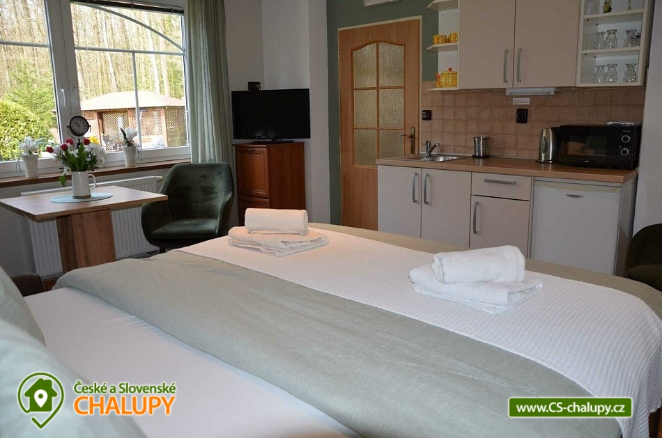 Penzion Pohoda - Svatava- Karlovarsko - Slavkovský les. Náš rodinný penzion se zahradním bazénem a infra-saunou leží v samém srdci lázeňského trojúhelníku, na úpatí Krušných hor a Slavkovského lesa. Najdete u nás soukromí uzavřeného areálu, vlastní parkoviště, v létě venkovní bazén, lehátka, gril, velkou letní terasu, zahradní altán, otevřené ohniště i úschovnu kol. Během pobytu u nás si můžete vychutnat naprosté soukromí nebo můžete využít našich doplňkových služeb a dopřát si snídaně, infra-saunu, masáže, terapie nebo koučink (všechny služby je nutné objednat předem). Poskytujeme ubytování pro 1 - 22 osob, v 7-mi pokojích a jednom Velkém apartmánu, který je umístěn v samostatné budově. Všechny naše pokoje mají vlastní sociální zařízení. Objekt je možné si pronajmout jako celek pro 22 osob, pro menší skupiny o velikosti 6, 9 a 16 osob, nebo po jednotlivých pokojích. BUDOVA PENZIONU: 7 pokojů / 16 lůžek. V penzionu jsou pokoje rozděleny na 4 menší pokoje v patře a 3 studia v přízemí. Výhodou pokojů v patře je společné posezení včetně vybaveného kuchyňského koutu, (sporák bez trouby, 2 lednice, MW, varná konvice). Prostor je vhodný pro skupiny 6-9 osob. V patře jsou vám k dispozici 3 dvoulůžkové a 1 třílůžkový pokoj. Výhodou studií v přízemí je samostatný vchod/východ rovnou do zahrady a malý kuchyňský kout pro přípravu nápojů, studené kuchyně a ohřev jídla (nikoliv na vaření), součástí kterého je chladnička, mikrovlnná trouba a varná konvice. Dvě studia jsou dvoulůžková, jedno třílůžkové. VELKÝ APARTMÁN: 3 ložnice/6 lůžek. Velkorysý a komfortní apartmán se třemi ložnicemi o velikosti 81m2 je vhodný pro rodinu nebo skupinu přátel do 6ti osob. Tento prostorný a stylový apartmán nabízí naprosto vše, co potřebujete k dokonalému pohodlí. Je umístěn v samostatné budově, tudíž poskytuje absolutní soukromí. Najdete v něm vybavenou kuchyni (myčka, lednice, indukční varná deska, el. trouba, mikrovlnná trouba, varná konvice, kapslový kávovar Bosch, překapávač kávy), moderně zařízený obývací pokoj, komfortní koupelnu s velkou sprchou a vanou a tři samostatné ložnice (dvoulůžková, třílůžková, jednolůžková), balkon s výhledem do zahrady a lesa. Díky poloze mimo město jsme také oblíbeným místem pro pořádání svateb, rodinných oslav a firemních pobytů. Při skupinových pobytech a akcích můžete mít k dispozici i prostor jídelny/restaurace a vybavené profi kuchyně. Celý penzion je nekuřácký, má vlastní parkoviště a bezdrátové připojení k internetu v celém objektu zdarma. V okolí se pak můžete těšit na koupání venku i uvnitř, turistické a cyklovýlety, návštěvu okolních památek, lyžování nebo i sbírání hub. V okolí doporučujeme výlety: Jezero Medard - sokolovské moře (2 km), Hartenberg - zřícenina hradu (6 km), Rozhledna Cibulka (12 km), Loket - hrad a historické město (13 km), Slavkovský les (15 - 30 km): Důl Jeroným, Rozhledna na Krásenském vrchu, Kladské rašeliniště, Karlovy Vary (23 km): kolonády, muzea, Vánoční dům, parky, lanovka na rozhlednu Diana, Svatošské skály, Kraslicko a Krušnohorsko (30 km): Přebuzské vřesoviště, Jelení vrch, Nové Hamry, Krušnohorský Semmering, Vlčí Jámy, Cheb (30 km): Chebský hrad, náměstí Špalíček, Františkánský klášter, Bismarkova rozhledna, Maria Loreto nebo např. Františkovy Lázně (35 km). Lyžování: Ski Areál Bublava (26 km) - 1 lanovka, 5 vleků, vhodné i pro začátečníky a rodiny s dětmi, Ski Areál Plešivec (46 km), Boží Dar (46 km) nebo například Klínovec (48 km).