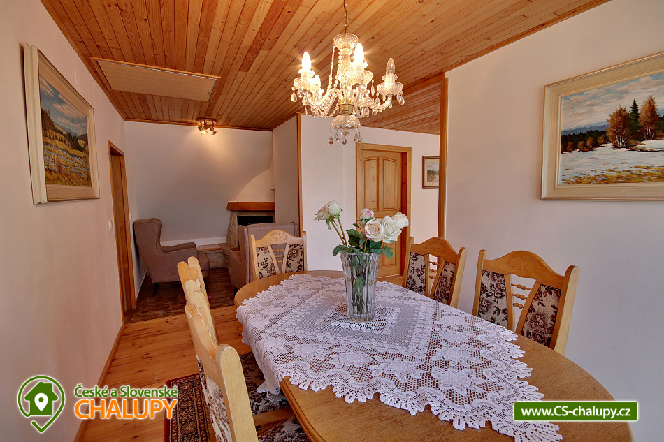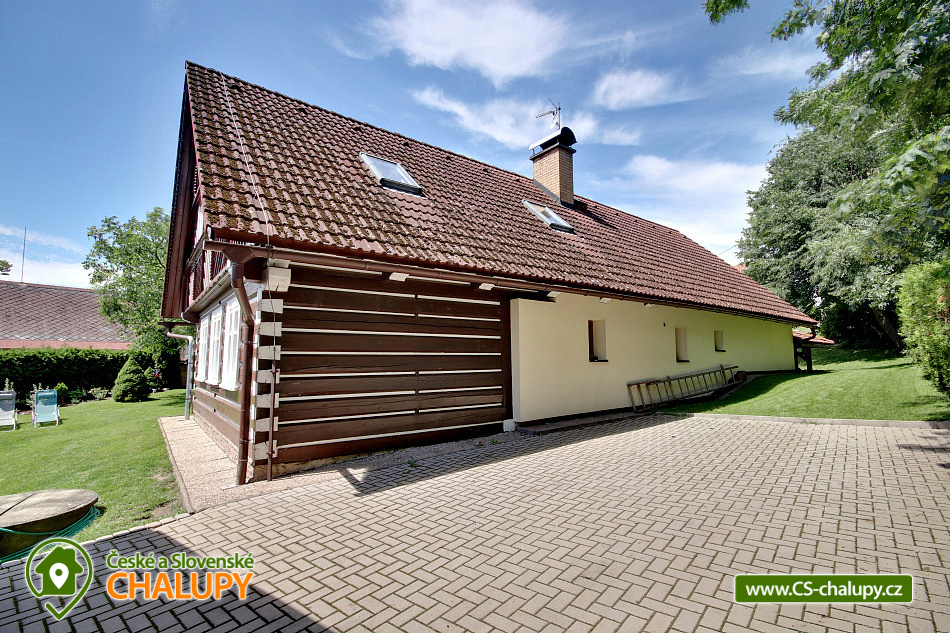 Pronájem chalupa Skuhrov - Český ráj. Ubytování Český ráj - stylová poloroubená chalupa leží na polosamotě v malé vesničce na rozhraní Českého ráje a Podkrkonoší. Chalupa k pronájmu poskytuje ubytování pro 5 až 15 osob v 5 ložnicích. Vybavení objektu: V přízemí objektu se nachází zádveří, předsíň a kachlová kamna, z předsíně se vstupuje do prostorného obývacího pokoje (světnice). Zde se nacházejí kachlové kamna, krásné prostorné a stylové sezení z masivu (velký stůl a židle), smart TV, gauč (postel) celkem pro 2 osoby, dále pohodlná rozkládací sedací souprava a kuchyňský kout, který je plně vybavený, včetně malé ledničky, myčky, mikrovlnné trouby a elektrického sporáku. Dále se v přízemí nachází samostatný neprůchozí pokoj se 3 lůžky (manželská dvojlůžková postel a 1,5 lůžko, velká skříň), z předsíně se vchází do koupelny s vanou, WC a pračkou. Dále se zde nachází špajz s velkou ledničkou/mrazákem a prostornými policemi. Po dřevěných schodech se dostanete do 1.patra, kde se nachází předsíň ze které se vstupuje do samostatného neprůchozího pokoje kde se nachází i kuchyňská linka, 2 plnohodnotná lůžka (vcelku), TV, komody, stůl a židle. Z předsíně se vejde do koupelny tam se nachází rohová vana, WC a bidet. Dále se vstupuje do velkého obývacího pokoje/hala s krbem - v hale najdete velký stůl, židle a sedací soupravu. U krbu si lze příjemně posedět ve stylových křeslech. Dále se z haly vstupuje do 3 samostatných neprůchozích ložnic (1 x 2 lůžka,1 x 4 lůžka a 1 x 4 lůžka, v každém pokoji se nachází TV a komody). Možnost zapůjčení rozkládací postýlky. Povlečení na lůžkoviny neposkytujeme. Peřiny a polštáře jsou k dispozici (typ - péřové a duté vlákno, zimní, letní). Je třeba vzít si s sebou prostěradla v šířce 160 nebo 180 cm. V objektu je 2x bojler (koupelny) - 175 l a průtokový ohřev vody v kuchyni. Vytápění elektrické (přímotopy) a kamna na pevná paliva (krb a 2x kachlová kamna (1x světnice, 1x chodba). V objektu plně funkční WIFI. Zahrada je z části neoplocená. Na zahradě je možnost v létě využívat nadzemní vyhřívaný bazén 6,10 x 3,75 x 1,2 m. Na zahradě najdete dětské hřiště, pískoviště, trampolínu, a stolní tenis. K dispozici je krásné zastřešené venkovní posezení, které v létě nabízí příjemný stín, zde je možnost využití grilu. Můžete využít také ohniště, kde se nachází také příjemné posezení. K posezení můžete využít i vinný sklep. Parkoviště se nachází přímo v objektu. Čas zahájení pobytu ve 14:00, předání objektu v 10:00, nebo dle předchozí domluvy s majiteli. Víkendy nepronajímáme! Děkujeme za pochopení. Možnost koupání - koupaliště 3 km, lom 6 km, rybník 6 km (možnost rybolovu - povolenka se zajišťuje na obecním úřadě), koně 3,5 km, hřiště a dětské hřiště 3 km, tenis 3 km (7 kurtů, antuka), plážový volejbal 3 km, zimní stadion a posilovna 3 km, sjezdovka lehká 5 km (typ Poma), sjezdovka střední 15 km (typ kotva), lyžařské středisko Špindlerův Mlýn 35 km, města Turnov, Jičín, zámky Hrubá Skála, Hrubý Rohozec, hrad Kost, zřícenina Trosky, Hruboskalsko - Český ráj, Kozákov.
