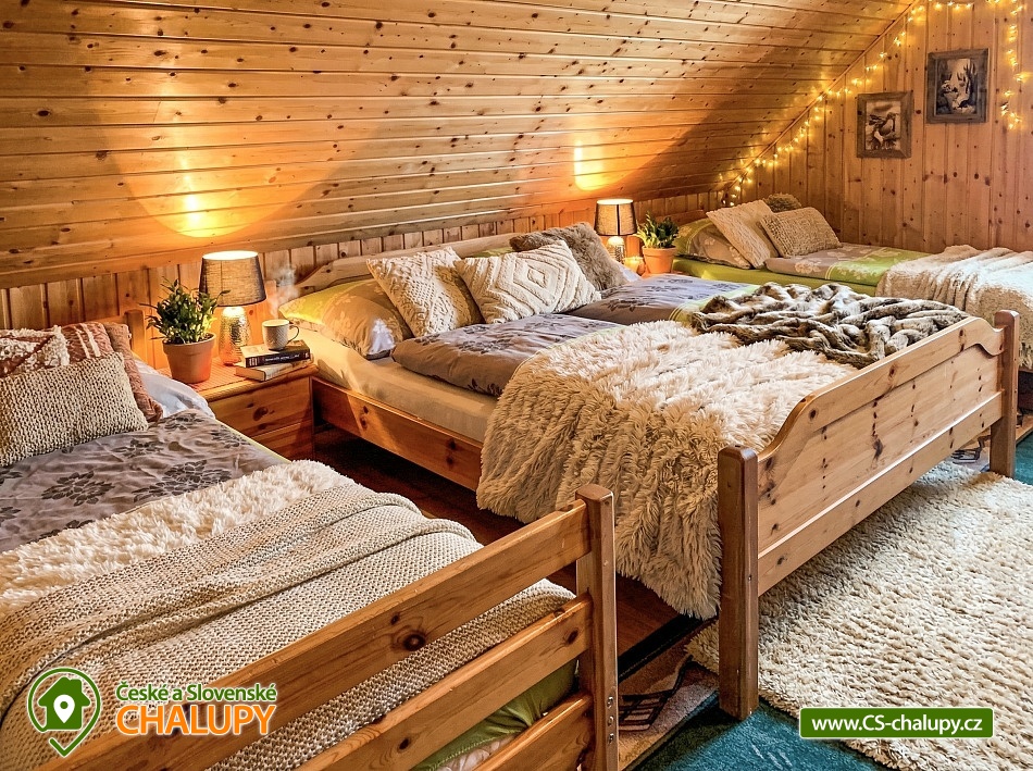 Tradiční srub s vůní dřeva a koupacím sudem v krásném prostředí u Adršpašsko Teplických skal a Stolové hory Ostaš (vyhlášené turistické lokality) - poloha na samém konci poklidné obce Maršov nad Metují. Okolí ideální na turistiku, cykloturistiku i horolezectví. Srub k pronájmu poskytuje ubytování pro až 10 osob ve 3 ložnicích. POPIS: hlavní Obývací místnost - prostorná sedací souprava, krbová kamna, TV, SAT, DVD + domácí kino, WIFI. Kuchyňský kout - plně vybaven nádobím, lednička, mrazák, myčka nádobí, mikrovlnná trouba, el. varná deska, horkovzdušná trouba a jídelní kout s rohovou lavicí. Dolní koupelna - toaleta, sprchový box. Horní koupelna - toaleta. Pokoje - v patře jsou dva čtyřlůžkové pokoje a jeden dvoulůžkový pokoj. Vytápění - krbovými kamny teplovzdušně a el. přímotopy. Venkovní posezení - zastřešená terasa s lavicemi a stolky, venkovní krb se stolem a lavicemi plus dětský kout s houpačkami. Sklep - pro úschovu kol a pod. Parkování - 3 x místo na pozemku u srubu. Srub je zařízen tak, aby splňoval veškerý komfort a pohodlí pro všechny ubytované. Vyzkoušejte si v parných letních dnech na vlastní kůži pocit příjemného chládku, a naopak v zimních mrazivých dnech pocit úžasné hřejivé atmosféry, skutečné pohody v pravém srubu. Večerní posezení u krbových kamen, třeba s lahví dobrého červeného, rozehřeje a vykouzlí nezaměnitelnou chvilku pro všechny romantiky. V okolí: Blízké i vzdálené okolí srubu nabízí skvělé možnosti pro pěší turistiku, cykloturistiku, horolezectví, vyjížďky na koních, rybaření a v zimě k lyžování. 200 m nad srubem vede cyklostezka, kterou lze dobře využít i pro projížďky na in - line bruslích. Výlety - Adršpašsko - Teplické skály, Broumovské skály, Jiráskovy skály, stolová hora Ostaš se skalními městy apod. Dále je možné zajet na levné nákupy do Polska - Kudowa Zdroj. Adršpašsko - Teplické skály (18 km), Jiráskovy skály s hradem Bischofstein (8 km), Křížový vrch (8 km), Vodní nádrž Rozkoš (22 km), Vyhlídka Stárkov (1 km), Stolová hora Ostaš (3 km), Jiráskův Hronov (7 km) a Babiččino údolí - Ratibořice (27 km). Těšíme se na Vás u nás.
