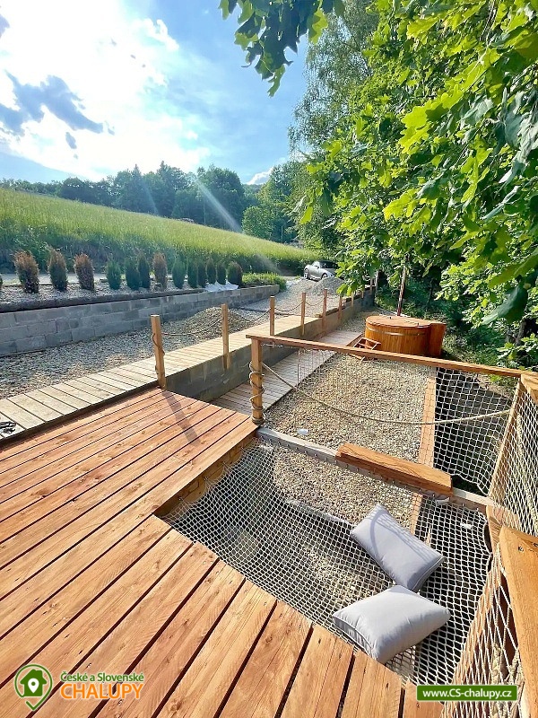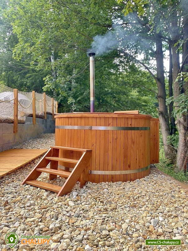 Wellness glamping (vyhřívaný koupací sud s vířivkou) - Chata pro dva v nádherné přírodě Jizerských hor. Těšit se můžete na relaxování na prostorné dřevěné terase s gaučem, s odpočinkovou sítí a krásnými výhledy do lesa nebo při koupání v horkém vířivém sudu, který zahřeje i v zimních měsících. Glamping domeček v obci Oldřichov v Hájích nabízí ubytování pro 2 osoby. K zapůjčení je dětská postýlka. Součástí domku je manželská postel, kuchyňská linka (lednice, rychlovarná konvice, dřez, varná deska a nádobí) s vinotékou s vybranými víny, stolek s dvěma židlemi a police. K dispozici je ložní prádlo a ručníky. Venku u domku je k dispozici posezení na terase nebo u ohniště. Sociální zařízení zahrnuje jednu venkovní teplou sprchu a WC. Vytápění je řešeno elektrickým přímotopem. Parkovat lze přímo u objektu. V okolí domku možnost turistiky, cykloturistiky, koupání, houbaření, rybaření, lyžování a běžkování. V blízkosti je golfové hřiště, tenisové hřiště a bowling. Mezi možnosti koupání patří např.: vodní nádrž Fojtka, přehrada Bedřichov, rybník Ferdinandov, Heřmanické vodní nádrže, koupaliště Raspenava, Lesní koupaliště Liberec, koupaliště Dolina, koupaliště Hejnice, plavecký bazén Liberec, přehrada Harcov, aquapark Centrum Babylon - Liberec, atd. V zimním období jsou k dispozici blízká lyžařská střediska: Hejnice - Ferdinandov, Bedřichov u Doliny, Bedřichov a další. K výletům v okolí lákají vodopády na Jeřici, Oldřichovský špičák, Naučná stezka jizerskohorskými bučinami, Skalní hrad, Hejnická bazilika, Zámek a město Frýdlant či Obří sud v Lázních Libverda. V nedalekém Liberci můžete navštívit městský bazén, Aquapark Babylon, iQPARK, Severočeské muzeum, Galerii Lázně nebo Liberecké podzemí. Těšíme se na Vás u nás.