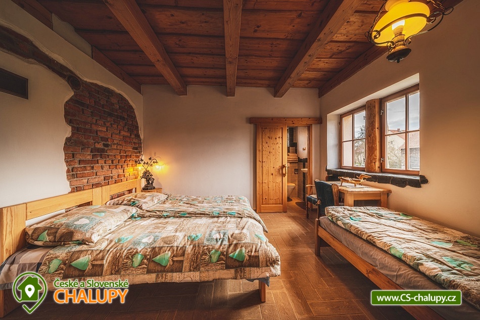 Srub v přírodním parku Manětínsko s možností jízdy na koních - Plzeňsko. Ideální pobyt pro rodiny s dětmi, přátele a malé kolektivy. Lokalita v hraniční oblasti absolutní tmy. Srub nabízí ubytování pro až 14 osob ve čtyřech samostatně pronajímaných pokojích. Po domluvě lze objekt pronajmout také srub jako celek. Celkem je k dispozici 2x třílůžkový pokoj a 2x čtyřlůžkový pokoj. Každý pokoj má vlastní koupelnu se sprchovým koutem a WC. V ceně jsou lůžkoviny a ručníky. Zapůjčit si lze dětskou postýlku s matrací (lůžkoviny vlastní). Těšit se můžete na velmi stylový interiér s prvky dřeva a kamene. Pro všechny ubytované je k dispozici prostorná společenská místnost s krbovými kamny, jídelním sezením a barem. Součástí srubu je plně vybavený kuchyňský kout (rychlovarná konvice, varná deska, lednička a mikrovlnná trouba). Po domluvě lze zajistit sudové nebo balené pivo z plzeňského Prazdroje nebo kvalitní lahvová moravská vína. V celém objektu je k dispozici WIFI připojení na internet. Venku k posezení slouží krytá pergola. K dispozici je zahradní nábytek, ohniště a gril. Příjemné chvíle lze trávit také na přilehlé travnaté zahradě. Vedle objektu je na přilehlém pozemku veřejně přístupné dětské hřiště. Parkovat lze přímo u objektu. V okolí srubu možnost turistiky, cykloturistiky, koupání a houbaření. V blízkosti jsou tenisové kurty. Mezi možnosti koupání patří např.: Přírodní koupaliště Plasy, Sportovní a rekreační areál Kralovice, Plovárna Manětín, Velký rybník Jesenice, Bazén Lochotín, Aquapark Rakovník atd. K výletům v okolí láká město barokních soch Manětín se zámkem, Zámek Rabštejn nad Střelou, město Plasy - první cisterciácký klášter, ZOO, minigolf a Muzeum stavitelství a pivovar, dále Mariánská Týnice, Zámek a pivovar Chyše, vodní nádrž Hracholusky, Hrad a zámek Bečov nad Teplou nebo historické centrum města Plzeň. Těšíme se na Vás u nás.