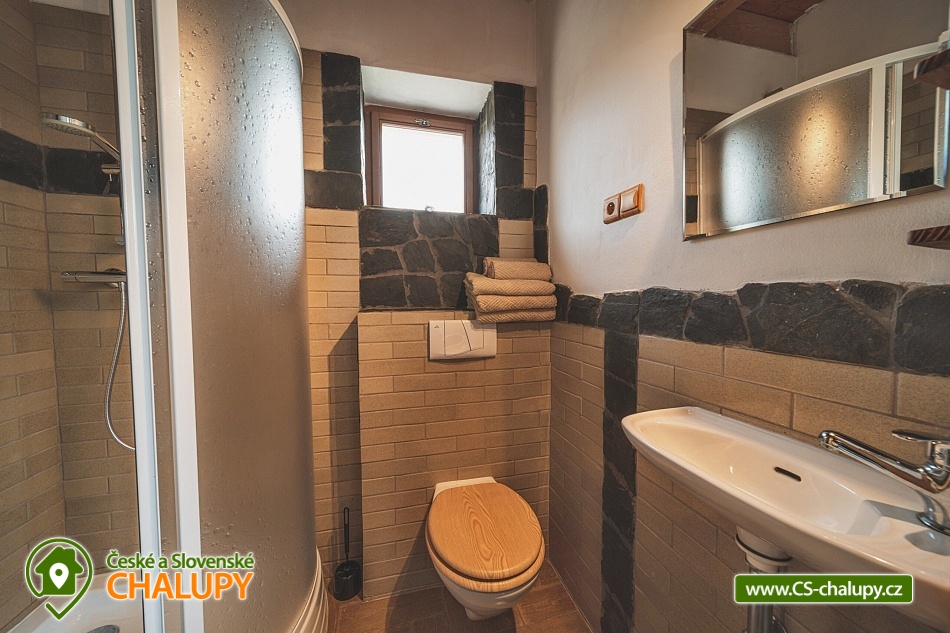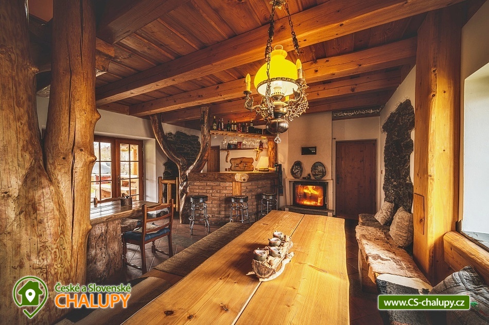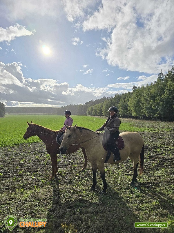 Srub v přírodním parku Manětínsko s možností jízdy na koních - Plzeňko - sever. Ideální pobyt pro rodiny s dětmi, přátele a malé kolektivy. Lokalita v hraniční oblasti absolutní tmy. Srub nabízí ubytování pro až 14 osob ve čtyřech samostatně pronajímaných pokojích. Po domluvě lze objekt pronajmout také jako celek. Celkem je k dispozici 2x třílůžkový pokoj a 2x čtyřlůžkový pokoj. Každý pokoj má vlastní koupelnu se sprchovým koutem a WC. V ceně jsou lůžkoviny a ručníky. Zapůjčit si lze dětskou postýlku s matrací (lůžkoviny vlastní). Těšit se můžete na velmi stylový interiér s prvky dřeva a kamene. Pro všechny ubytované je k dispozici prostorná společenská místnost s krbovými kamny, jídelním sezením a barem. Součástí srubu je plně vybavený kuchyňský kout (rychlovarná konvice, varná deska, lednička a mikrovlnná trouba). Po domluvě lze zajistit sudové nebo balené pivo z plzeňského Prazdroje nebo kvalitní lahvová moravská vína. V celém objektu je k dispozici WIFI připojení na internet. Venku k posezení slouží krytá pergola. K dispozici je zahradní nábytek, ohniště a gril. Příjemné chvíle lze trávit také na přilehlé travnaté zahradě. Možnost využití dřevěného koupacího sudu = vířivka. Vedle objektu je na přilehlém pozemku veřejně přístupné dětské hřiště. Parkovat lze přímo u objektu. V okolí srubu možnost turistiky, cykloturistiky, koupání a houbaření. V blízkosti jsou tenisové kurty. Mezi možnosti koupání patří např.: Přírodní koupaliště Plasy, Sportovní a rekreační areál Kralovice, Plovárna Manětín, Velký rybník Jesenice, Bazén Lochotín, Aquapark Rakovník atd. K výletům v okolí láká město barokních soch Manětín se zámkem, Zámek Rabštejn nad Střelou, město Plasy - první cisterciácký klášter, ZOO, minigolf a Muzeum stavitelství a pivovar, dále Mariánská Týnice, Zámek a pivovar Chyše, vodní nádrž Hracholusky, Hrad a zámek Bečov nad Teplou nebo historické centrum města Plzeň. Těšíme se na Vás u nás.