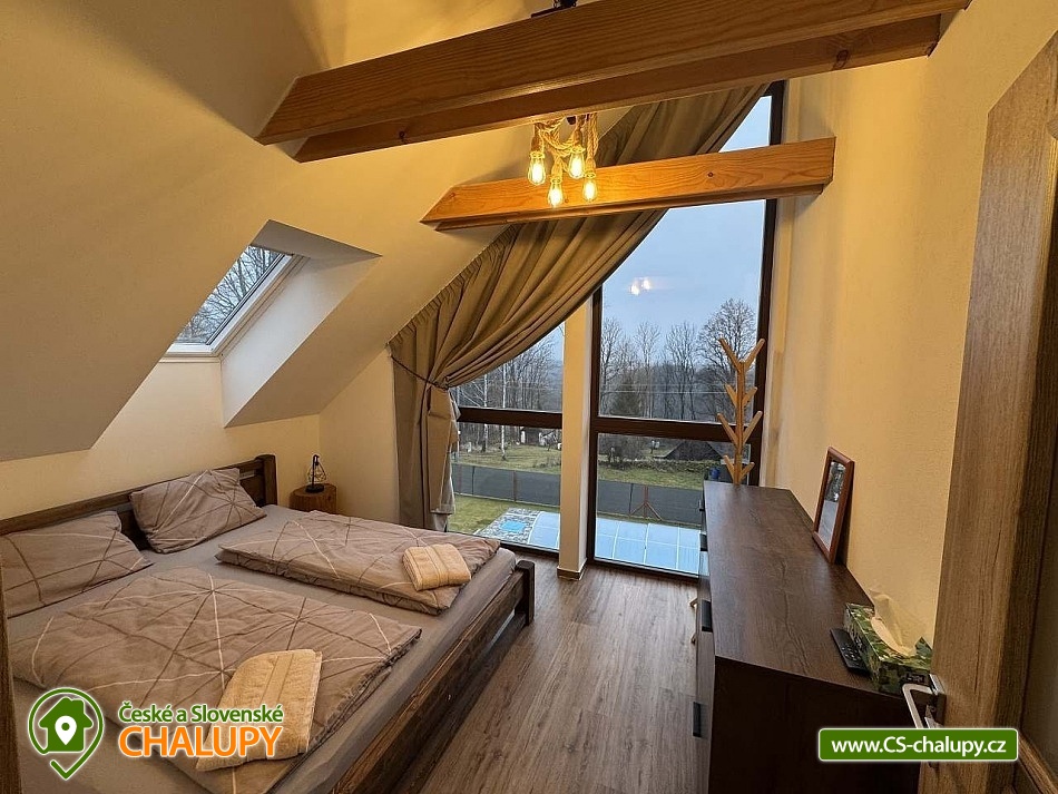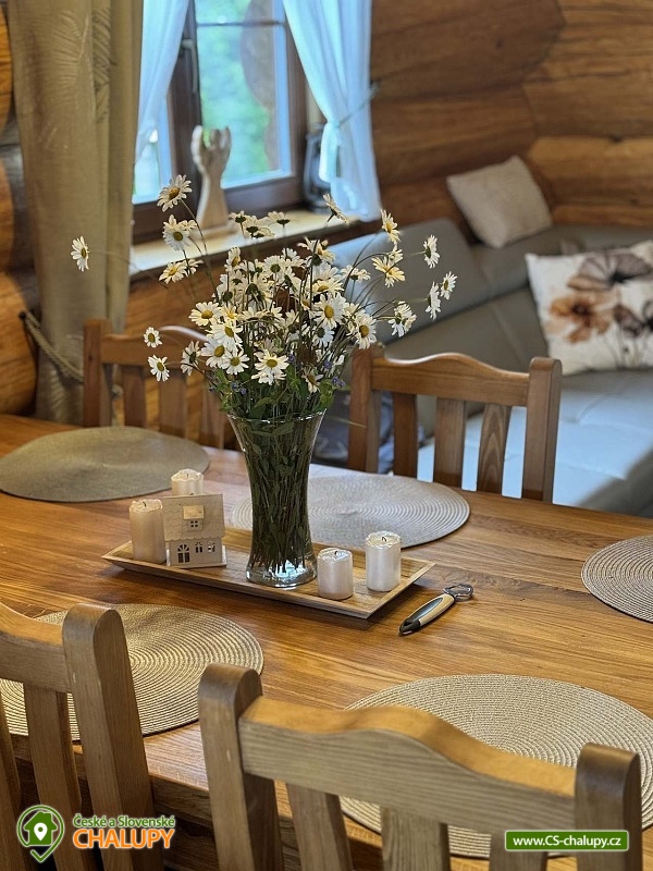 | Vybavení objektu - vnitřní: | společenská místnost, dětská postýlka, krb / krbová kamna, internet - wifi, vybavená kuchyně, rychlovarná konvice, varná deska, lednička, mrazák, myčka, kávovar, pračka, sušička prádla, koupelna s wc společné, koupelna se sprchovým koutem, samostatné wc, wellness, sauna, vířivka, TV, SAT, společenské hry, stolní tenis |