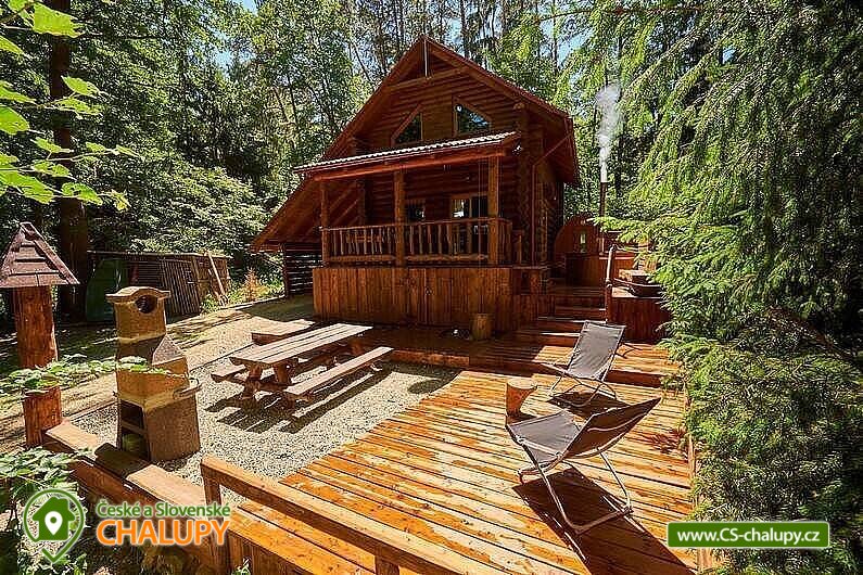 Srubová chata s wellness (vyhřívaný koupací sud a sauna) u Vranovské přehrady. Srub k pronajmutí poskytuje ubytování pro až 7 osob ve 3 ložnicích. Ložnice a pokoje: V podkroví je ložnice s manželskou postelí, v dalším pokoji jsou tři jednolůžkové postele(dětský pokoj), v třetím pokoji manželská postel a pracovní stolek. Budete mít neomezeně k dispozici ručně vyrobený vyhřívaný koupací sud s finskou saunou po které můžete hned skočit do ochlazovací káďě a pak se hned ohřát v koupacím sudu, který se vyhřeje až na 40 stupňů. V podkroví srubu je ložnice s kovanou manželskou postelí, v dalším pokoji jsou tři jednolůžkové postele, ve třetím pokoji najdete manželskou postel. V obývacím pokoji je postaven krb u kterého při praskajícím hřejícím ohni a třeba se sklenkou vína jistě strávíte nádherné večery. Krbem vytopíte celý srub, krb má rozvody vzduchu do vrchních místností, kde si můžete korigovat teplotu vzduchu. Kdyby jste nechtěli topit v krbu můžete si zatopit klimatizací která srub také vytopí a v parném létě zase ochladí, dále je v obývacím pokoji TV se satelitním příjmem k dispozici je také internet. V kuchyni je vestavěná trouba, sklokeramická varná deska, 2xlednice s mrazákem, mikrovlnná trouba, myčka. Sociální zařízení: Sociální zařízení: Soc. zařízení je vkusně a účelně vybaveno. Nachází se zde sprchový kout, umyvadlo s teplou i studenou vodou, WC. K dispozici gril venkovní posezení, houpačka pro děti, pískoviště. Výlety, atrakce, zábava: V blízkosti hrad Bítov, vranovský zámek, zřícenina Cornštejn, zámek Uherčice Vranovská pláž 10 km. možnost výletu lodí s ochutnávkou moravských vín a sýrů. Na pláži tobogán, půjčovna šlapadel, vodní atrakce. Cykloturistika houbaření u srubu. Těšíme se na Vás u nás.