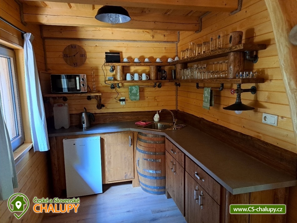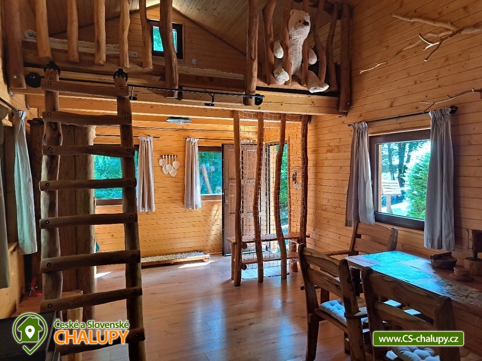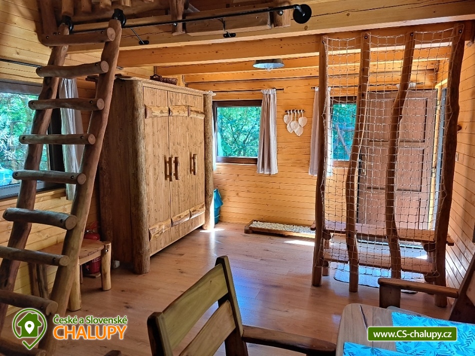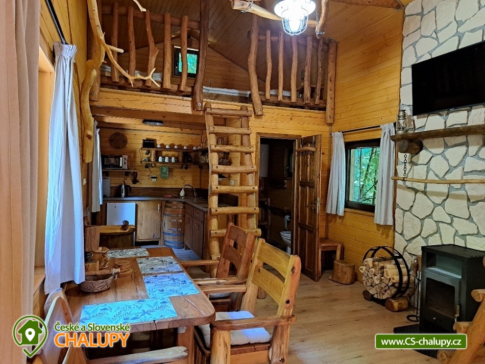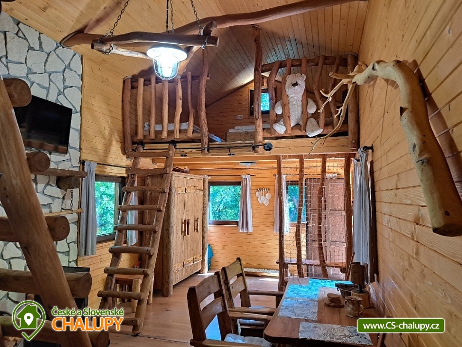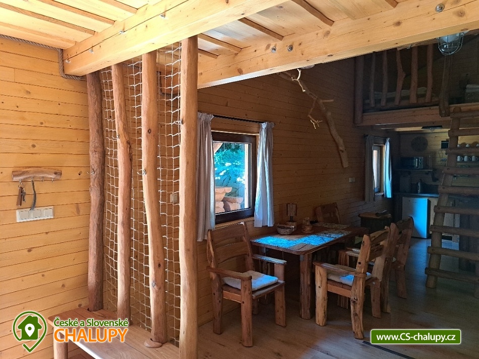 Srubová chata Vranovská přehrada - Stříbrná zátoka. Chata vonící dřevem v přírodním stylu s interiérem v kombinaci smrkového a akátového dřeva a s ručně vyráběným nábytkem. Prožijte Vaši rodinnou dovolenou s dětmi nebo přáteli na břehu přehrady obklopenou krásnou přírodou a možností odpočinku, relaxace a sportovního vyžití. U chaty je postavena srubová pergola s posezením a s velkým zahradním krbem, kde můžete trávit den ve stínu i příjemné večery. Stříbrná zátoka má po celé léto čistou vodu ke koupání a k rybolovu. Do zátoky pramení potok, kde je také studánka s pitnou vodou. Chata k pronájmu poskytuje ubytování pro až 6 osob ve 2 ložnicích. Spaní v chatě bylo navrženou tak, aby bylo vzdušné a poskytovalo i odpočinkovou zónu. Každá strana chaty má na mansardě manželskou postel a 1x lůžko pro jednu osobu. Kuchyň je plně vybavena nádobím, indukční plotýnkou, lednice s mrazákem celkem (90L), mikrovlnná trouba, sendvičovač, rychlovarná konvice. Dále k dispozici Televize, rádio a internetové připojení Wi-Fi. Koupelna je vybavena sprchovým boxem, umyvadlem, studenou a teplou vodou, kterou ohřívá el. boiler. Splachovací WC s originálním nábytkem a vybavením z akátového dřeva. V chladnějším počasí lze přitopit krbovými kamny. Příjezdová cesta je po polní a lesní cestě s příjezdem až k chatě, která slouží pouze pro vyložení nebo naložení věcí k rekreaci. Poté je nutné auto přeparkovat na parkoviště vzdálené od chaty cca 100m. V případě nepříznivého počasí (vytrvalého deště) je příjezd k chatě zakázán z důvodu uvíznutí nebo zablokování cesty místním chatařům. U chaty jsou dvě parkovací místa. V okolí Vranovské přehrady se nachází spousta turistických cílů jako je hlavní písčitá pláž se všemi atrakcemi. Výlety do okolí: Zámek Vranov nad Dyjí, Hrad Bítov s malou ZOO a pivovarem, Zřícenina hradu Cornštejn s rytířskými turnaji a ohňostrojem, Muzeum motocyklů Lesná, Národní park Podyjí, Vranovská pláž s množstvím restaurací a sportovního vyžití. Hardeggská vyhlídka do údolí Dyje s návštěvou hradu Hardegg, Vinné sklepy po obou stranách česko - rakouské hranice a Lodní doprava s možností využití speciální plavby s ochutnávkou vín a sýrů. Těšíme se na Vás u nás.
