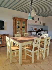 Jihočeská chalupa Třeboňsko - chalupa Ponědraž se nachází v jižních Čechách, v malebné vesničce Ponědraž na břehu stejnojmenného rybníka. Chalupa - Statek u Benešů leží v CHKO Třeboňsko a nabízí ubytování až pro 16 osob - Pronajímá se pouze jako celek 1 skupině klientů. Je určena pro rodinné dovolené nebo pro pobyt skupiny přátel. Ubytování je rozděleno na tři apartmány. POPIS: Apartmán 1 (3+1) nabízí ubytování pro 7 osob. Na předsíň navazuje plně vybavená kuchyň s plynovým sporákem, ledničkou, mrazákem, myčkou, varnou konvicí a kávovarem. Obytná místnost s kachlovými kamny nabízí prostor pro lenošení. Velká čtyřlůžková ložnice s manželskou postelí a přistýlkou celkem pro 4 osoby a menší ložnice pro 3 osoby. Sociální zařízení zahrnuje koupelnu se sprchovým koutem a WC. Apartmán 2 (2+kk) nabízí ubytování pro 6 osob. Obývací pokoj s plně vybavenou kuchyní, elektrickým sporákem, ledničkou, myčkou, varnou konvicí, mikrovlnnou troubou a dvěma přistýlkami. Ložnice s manželskou postelí a dvěma oddělenými postelemi. Předsíň, koupelna se sprchovým koutem a WC. Apartmán 3 (1+kk) nabízí komfortní a romantické ubytování pro 2 osoby. Velká manželská postel, volně stojící vana, plně vybavený kuchyňský kout (lednička, varná deska a rychlovarná konvice). Oddělené WC. Po domluvě možnost umístit jednu přistýlku. Vytápění celého objektu je kachlovými kamny, přímotopy a podlahovým topením. K dispozici TV a Wi-Fi připojení. Parkování možné před objektem nebo přímo v uzavřeném dvoře. Možnost využití zásuvky k dobíjení elektromobilů. Venku je k dispozici posezení, ohniště, gril, stůl na stolní tenis, bylinková zahrádka, kanoe k zapůjčení a vnitřní posezení ve stodole. V okolí chalupy možnost turistiky, cykloturistiky, koupání, houbaření a rybaření. Navštívit můžete zámky Červená Lhota, Hluboká nad Vltavou, Jindřichův Hradec, Třeboňský zámek a mnoho dalších památek. Další tipy na výlety: naučná stezka Velký Lomnický, digitální skanzen Ludmila, akvárium Vratislavský dům, rozhledna Svákov, Hrádek u Purkarce, hornické muzeum Rudolfov. Možnosti koupání: pískovny, rybník Rožmberk, wellness centrum Aqua Viva Třeboň, koupaliště Hluboká nad Vltavou. Těšíme se na Vás u nás.