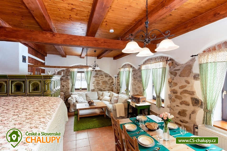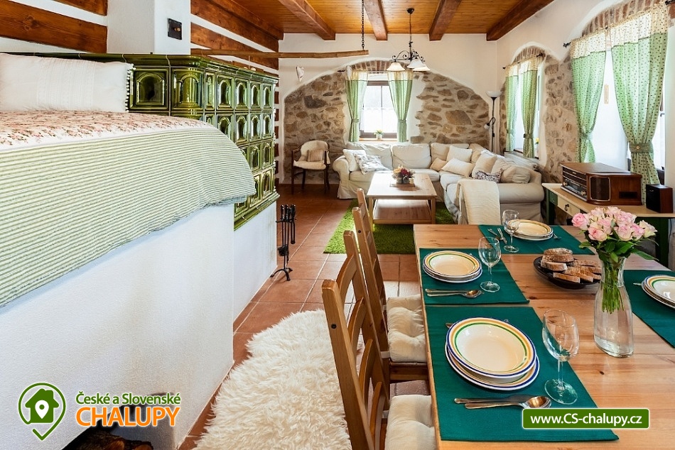 „Ubytování v romantické šumavské chalupě s kachlovou pecí a saunou“