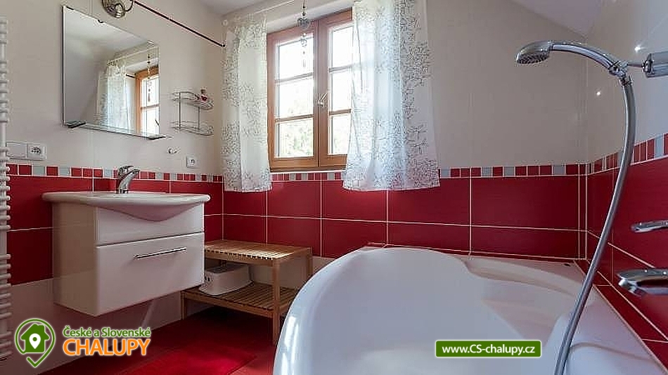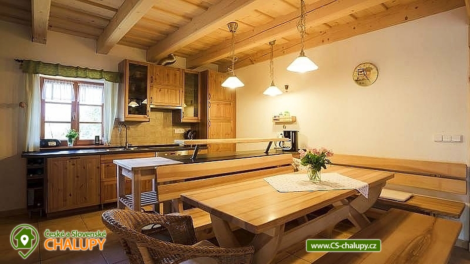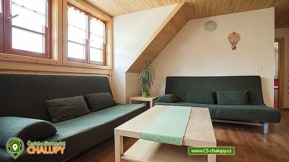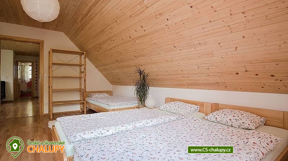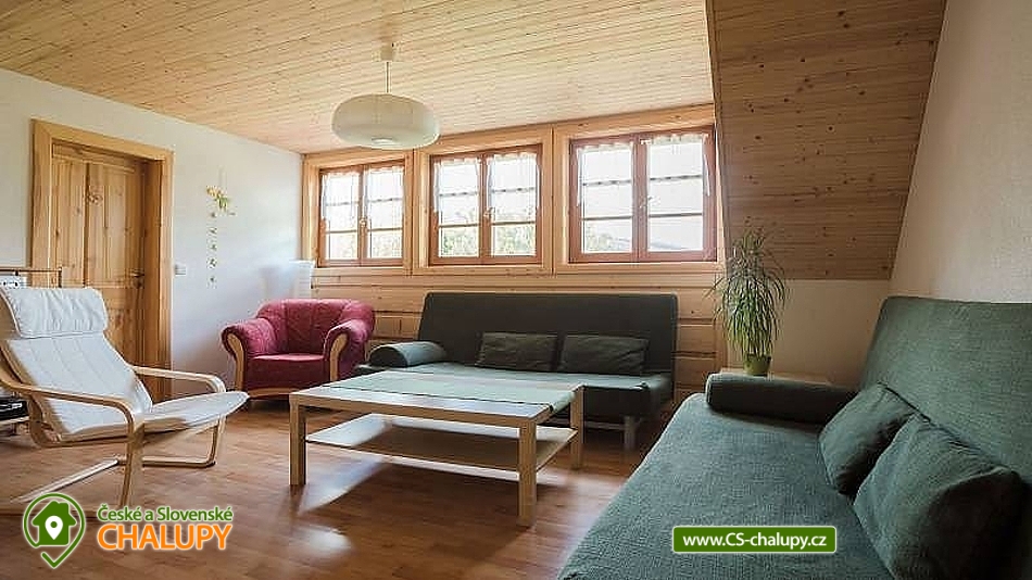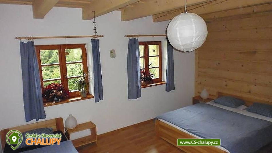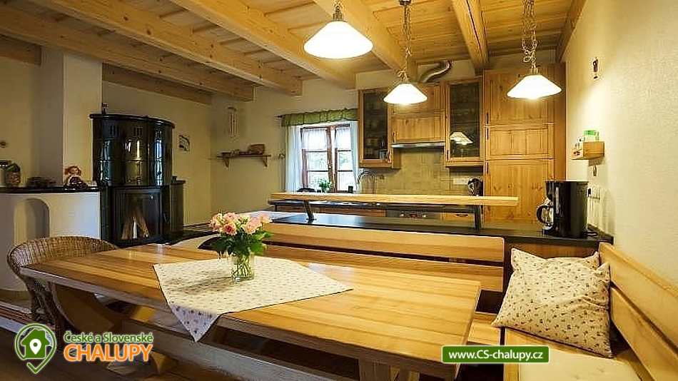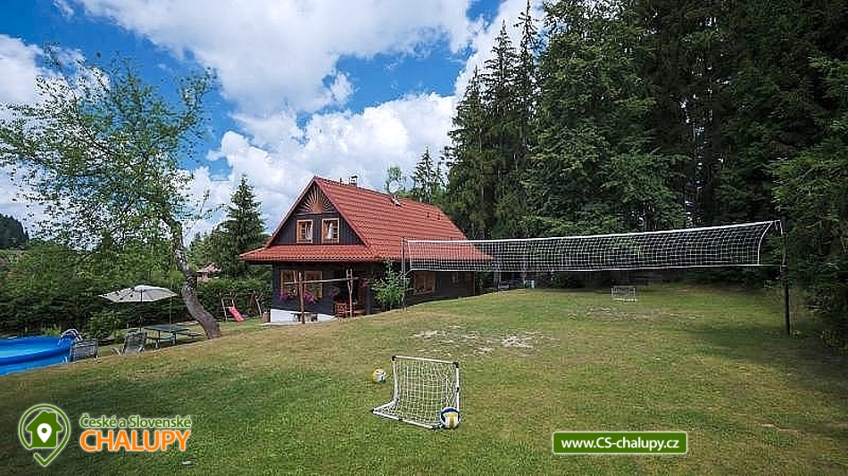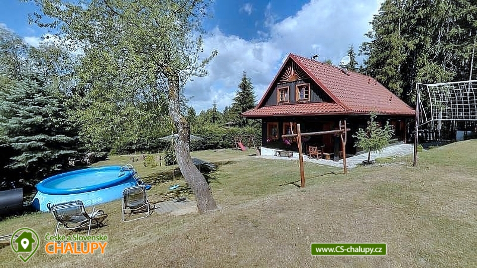 Valašská roubenka s letním bazénem u cyklostezky Bečva - ubytování v krásné krajině Moravskoslezských Beskyd. V chalupě je 5 ložnic s možností ubytování pro až 15 hostů. V přízemí jsou dvě ložnice pro 2 a 4 osoby, samostatné WC, koupelna se sprchovým koutem a další WC. V patře je obývací pokoj s posezením u televize (2 přistýlky na rozkládací pohovce), 3 ložnice pro 2, 2 a 3 osoby, samostatné WC a koupelna s vanou. Každý pokoj je vybaven dřevěným policovým nábytkem a lůžky z masivu. V chalupě je k dispozici v přízemí plně vybavená kuchyň s jídelnou (indukční deska, trouba, myčka nádobí, lednice s mrazákem, mikrovlnka, varná konvice, kávovar, toustovač, šlehač s mixerem, kompletní nádobí pro více osob). V kuchyni je příjemné posezení u kachlového krbu. Pokoje jsou vybaveny bezplatným Wifi připojením na internet. V obývacím pokoji je satelitní TV s přehrávačem DivX filmů z USB, DVD přehrávač. V jednom z pokojů je prostorný trezor pro bezpečné uchování cenných věcí. V přízemí je odvětrávaný prostor pro vysušení lyžáků. V garáži je dost místa pro uschování jízdních kol nebo lyží. Během topné sezóny je celé přízemí, koupelny a obývací pokoj v patře vytápěny podlahovým topením. Pokoje v patře jsou vybaveny radiátory. V chladných dnech v létě vytopí pohodlně celou chalupu krbová kamna v kuchyni. Samozřejmostí je bezdrátové připojení k internetu. Před chalupou se rozprostírá prostorná zahrada s venkovním posezením, houpačkou, ohništěm, travnatým hřištěm, dětským hřištěm, lehátky a letním bazénem. Řidiči ocení možnost parkování na pozemku u chalupy. Chalupa je ideální pro letní i zimní dovolenou. V pěším dosahu (300 m) je sjezdovka Rališka se sedačkovou lanovkou a několik dalších zimních areálů: Ski Sachovka, Bílá, Pustevny a Velké Karlovice. Pro letní dovolenou je v pěším dosahu přehrada Horní Bečva s možností koupání, restaurace, bowling, tenisové kurty (300 m), jízdárna (700 m), wellness hotely s přístupem veřejnosti. Chalupa je nedaleko turistických tras a nové cyklostezky "Bečva", která spojuje Horní Bečvu, Rožnov pod Radhoštěm, Valašské Meziříčí, Vsetín a Velké Karlovice. Těšíme se na Vás u nás.